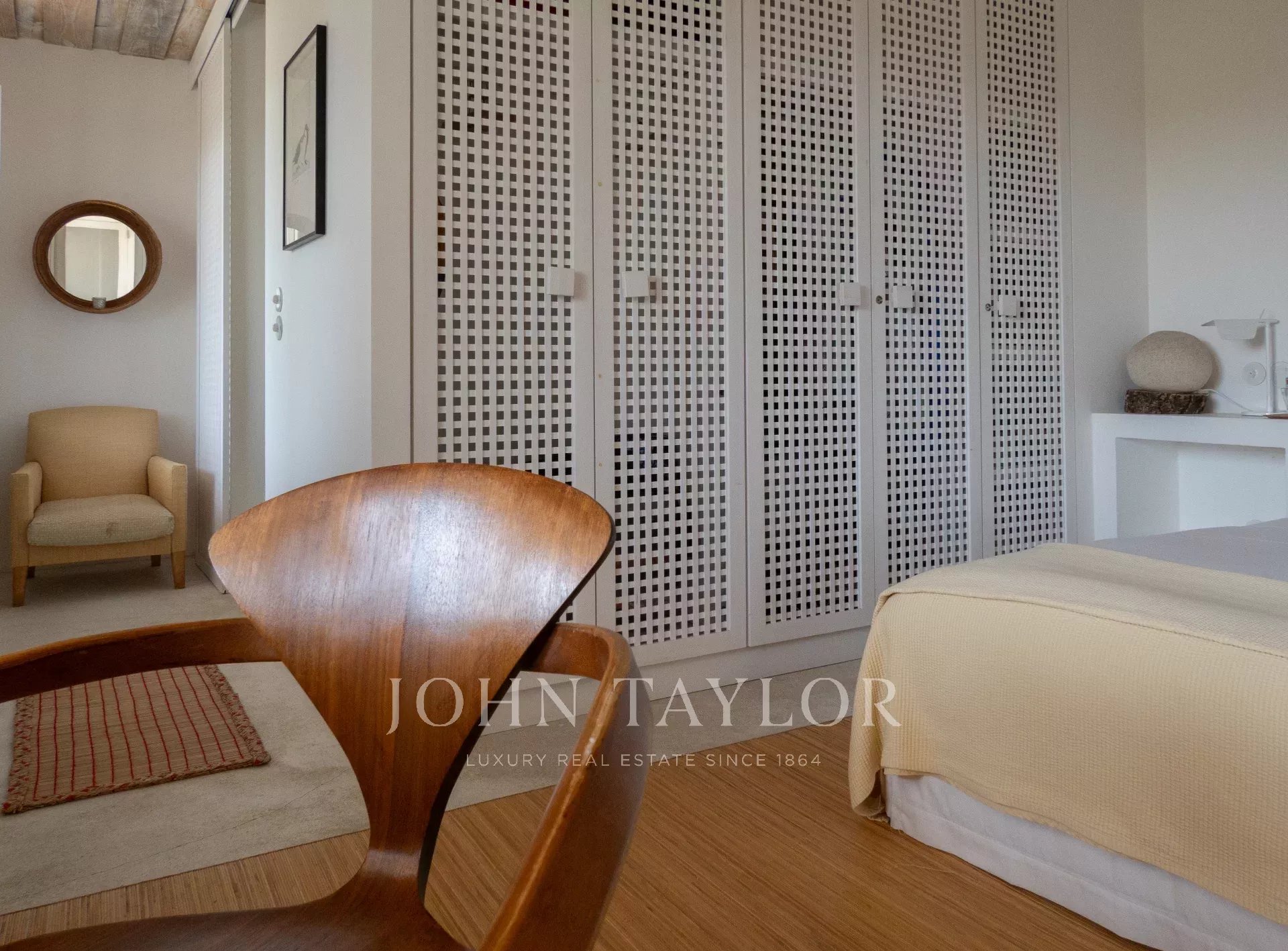 In the meticulously designed garden, you’ll find a heated swimming pool, a bird pond, two private dens (one ideal for yoga and meditation), two parking spaces, a closed garage, and a technical-storage area.