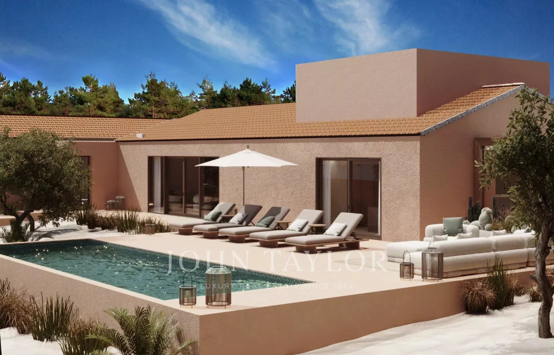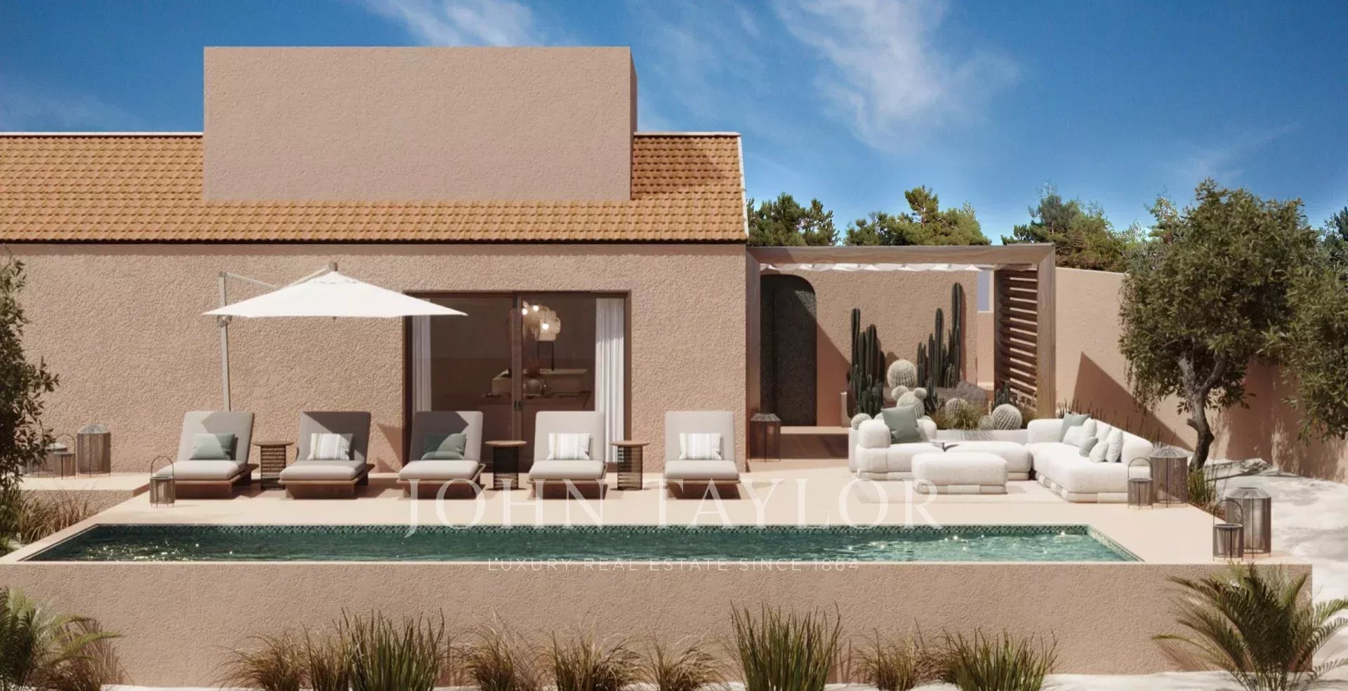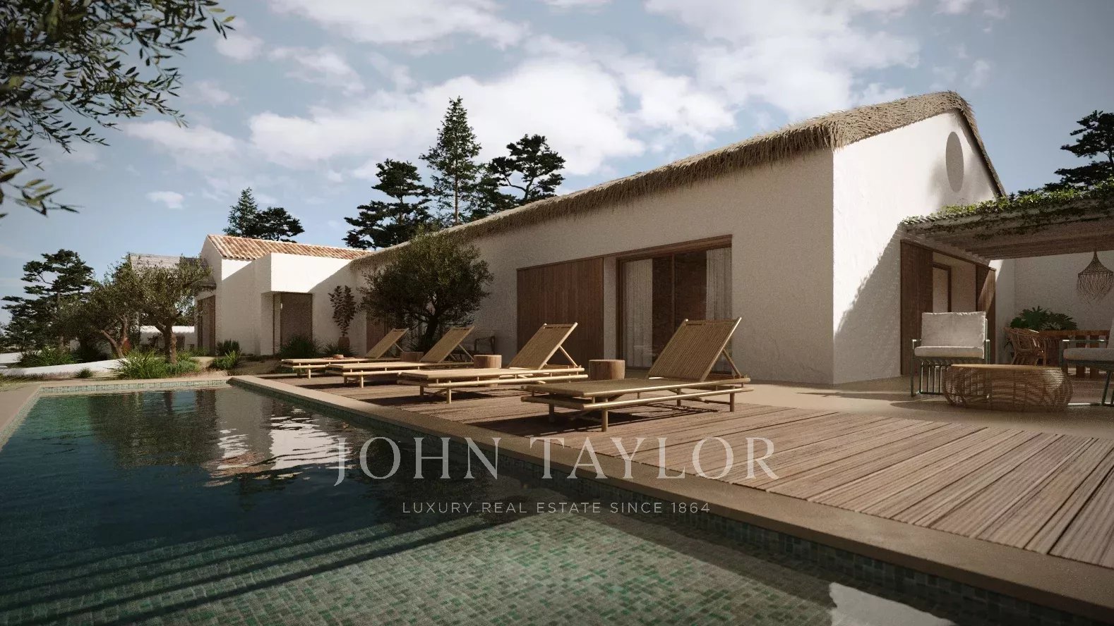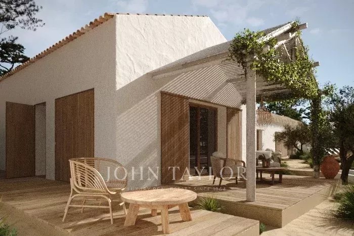 With 310 m² of living space, the property includes four generous suites with high ceilings, and a bright open-plan kitchen, dining and living area in the relaxed, elegant Comporta style. A fireplace brings a cosy touch, and the rooftop terrace is perfect for enjoying the sea breeze.