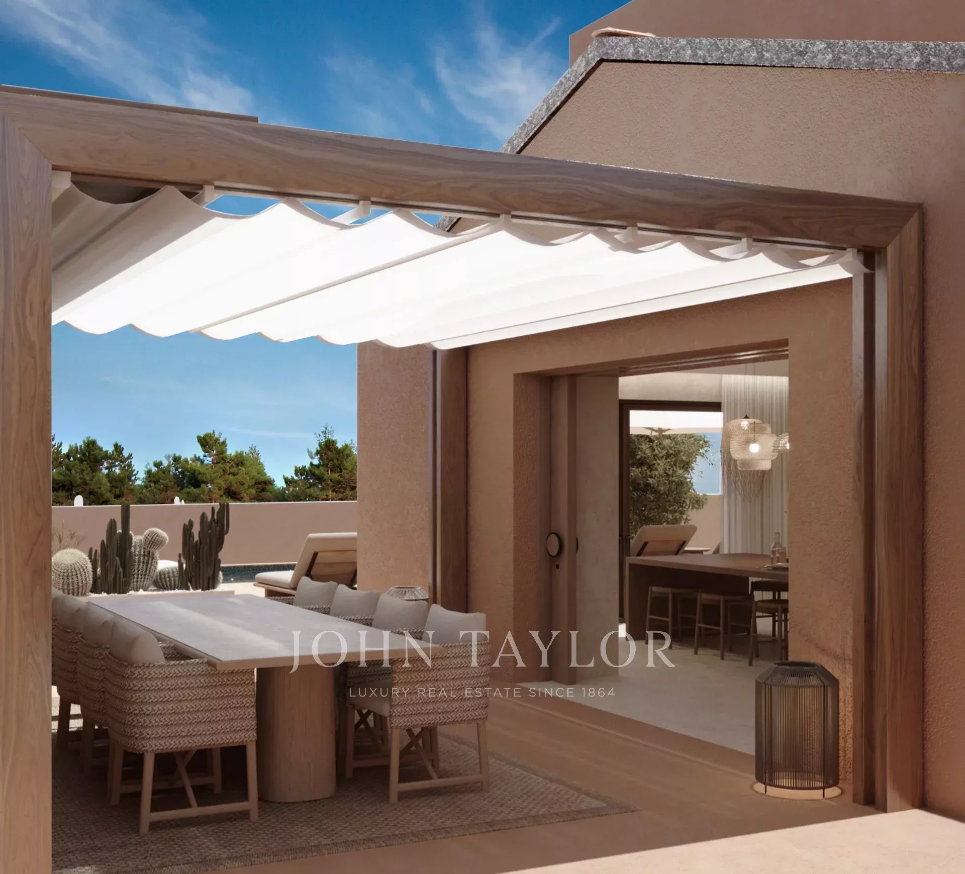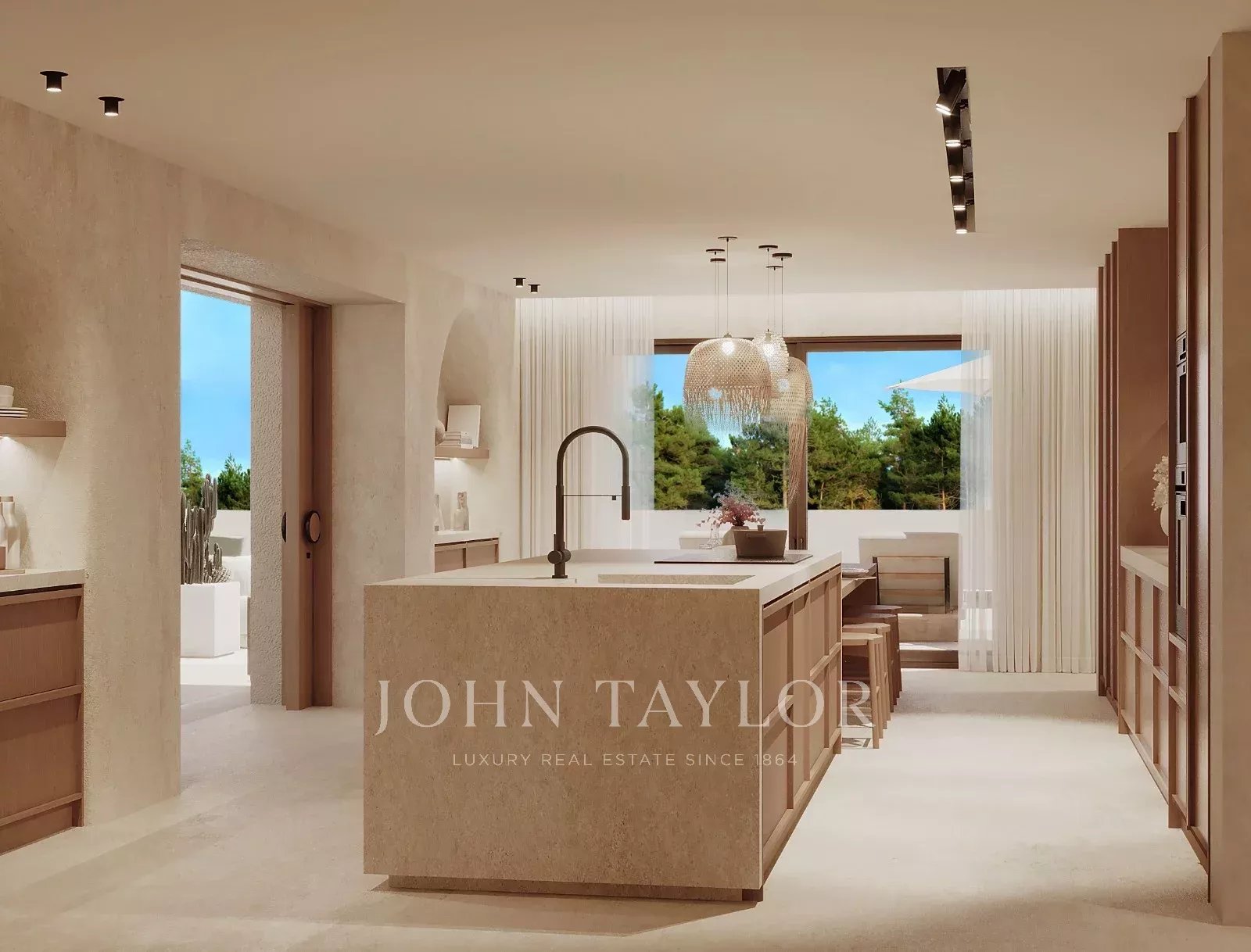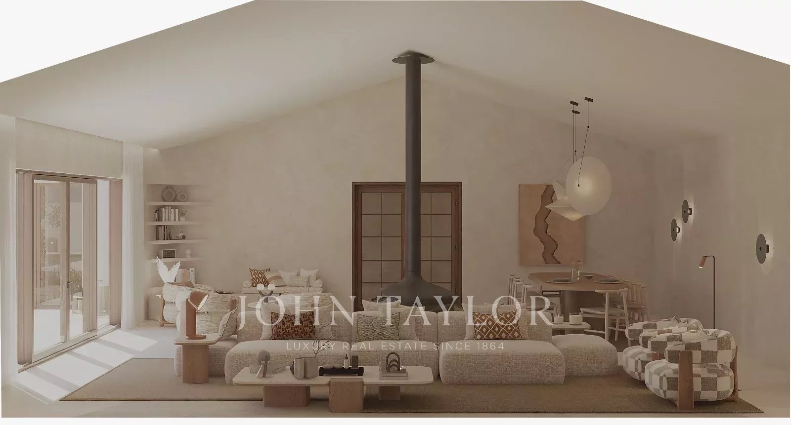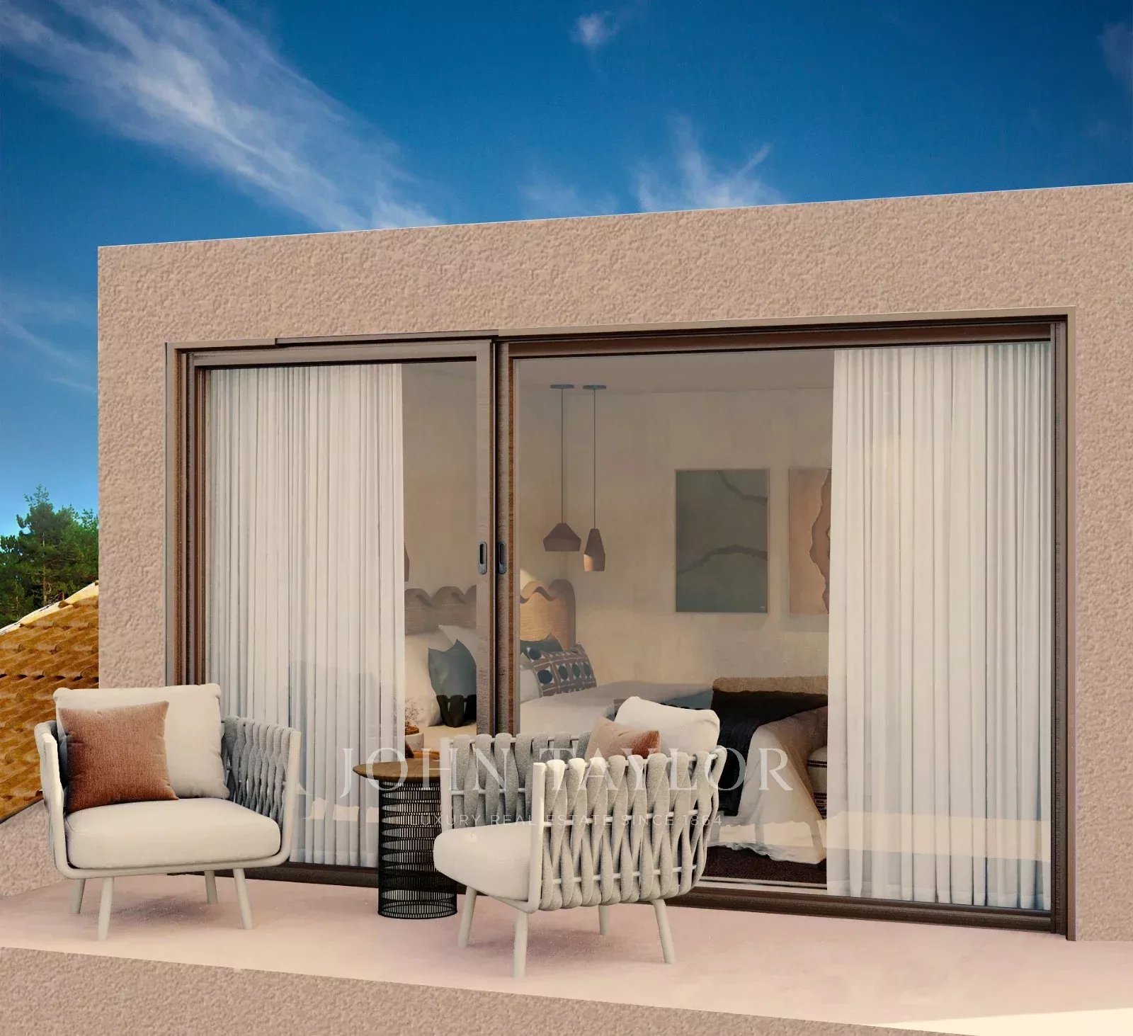 With 310 m² of living space, the property includes four generous suites with high ceilings, and a bright open-plan kitchen, dining and living area in the relaxed, elegant Comporta style. A fireplace brings a cosy touch, and the rooftop terrace is perfect for enjoying the sea breeze.