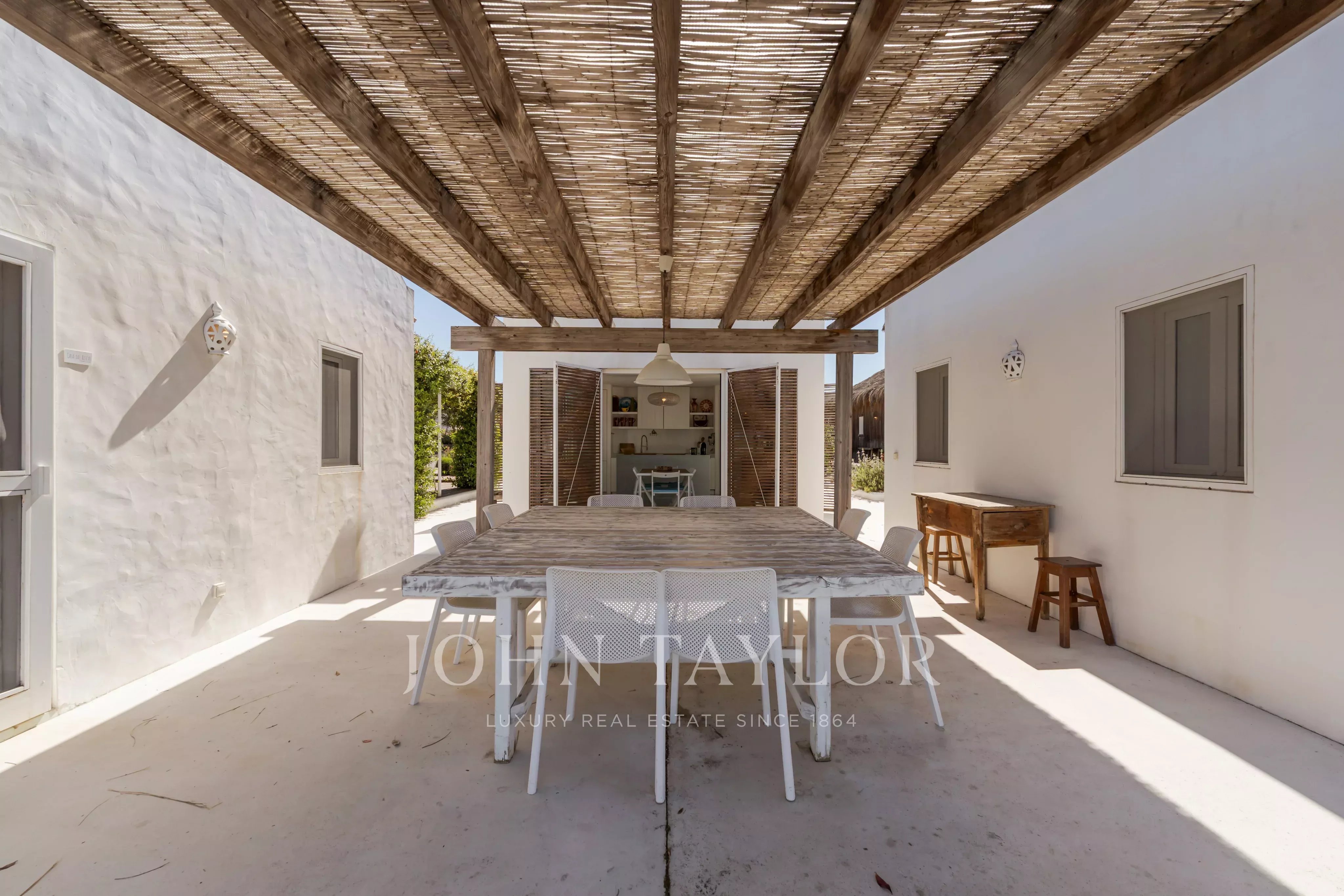 The fourth structure is dedicated to a support kitchen, complemented by both indoor and outdoor dining areas, designed for long, relaxed gatherings in true Comporta style.