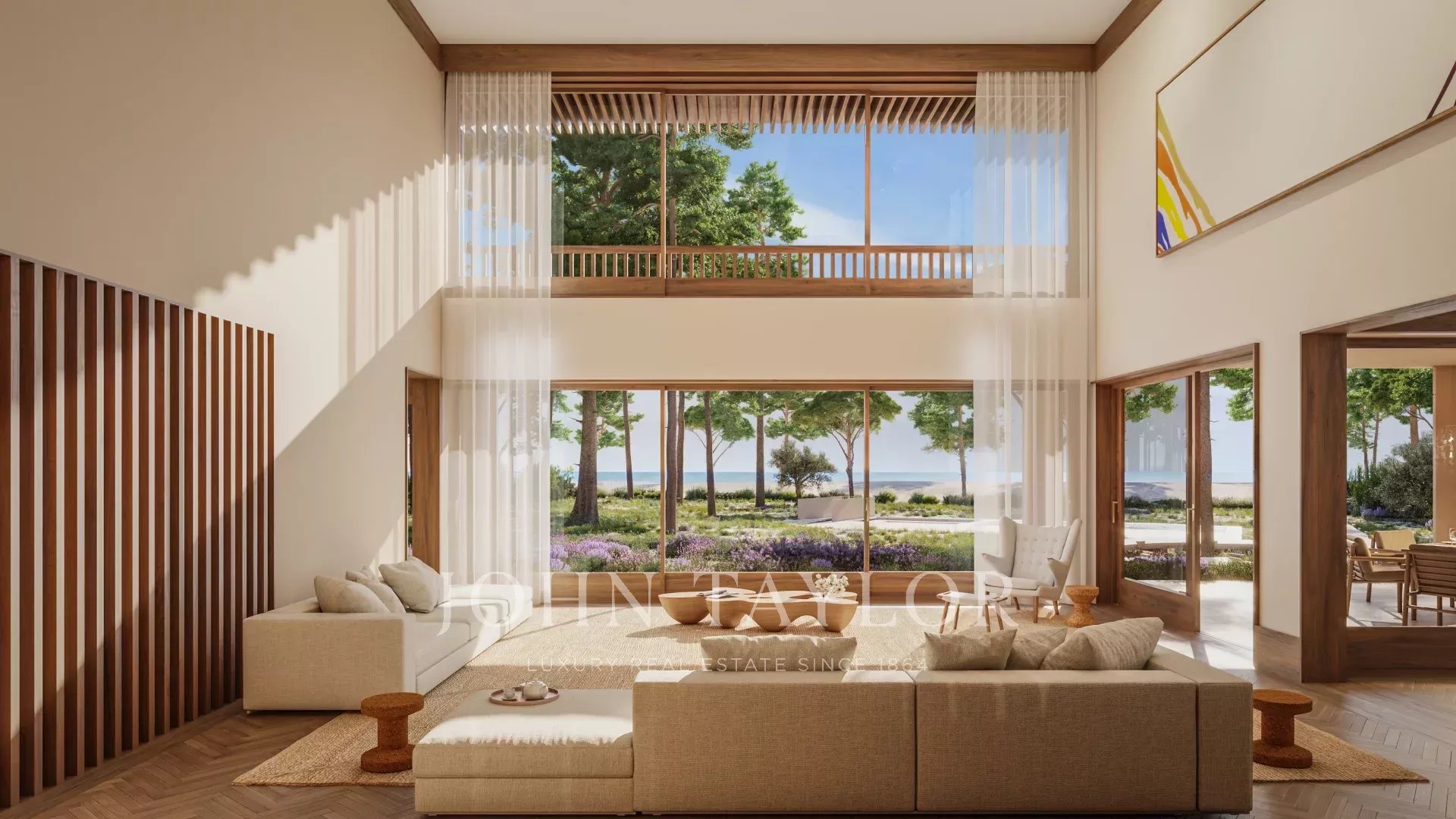 Situated on the Troia peninsula, the villa is set on a spacious 3.809 sqm plot with exclusive beach access and a construction area of 923 sqm. Located just steps from the shoreline, it combines luxury and elegance, offering top-tier amenities and professional management.