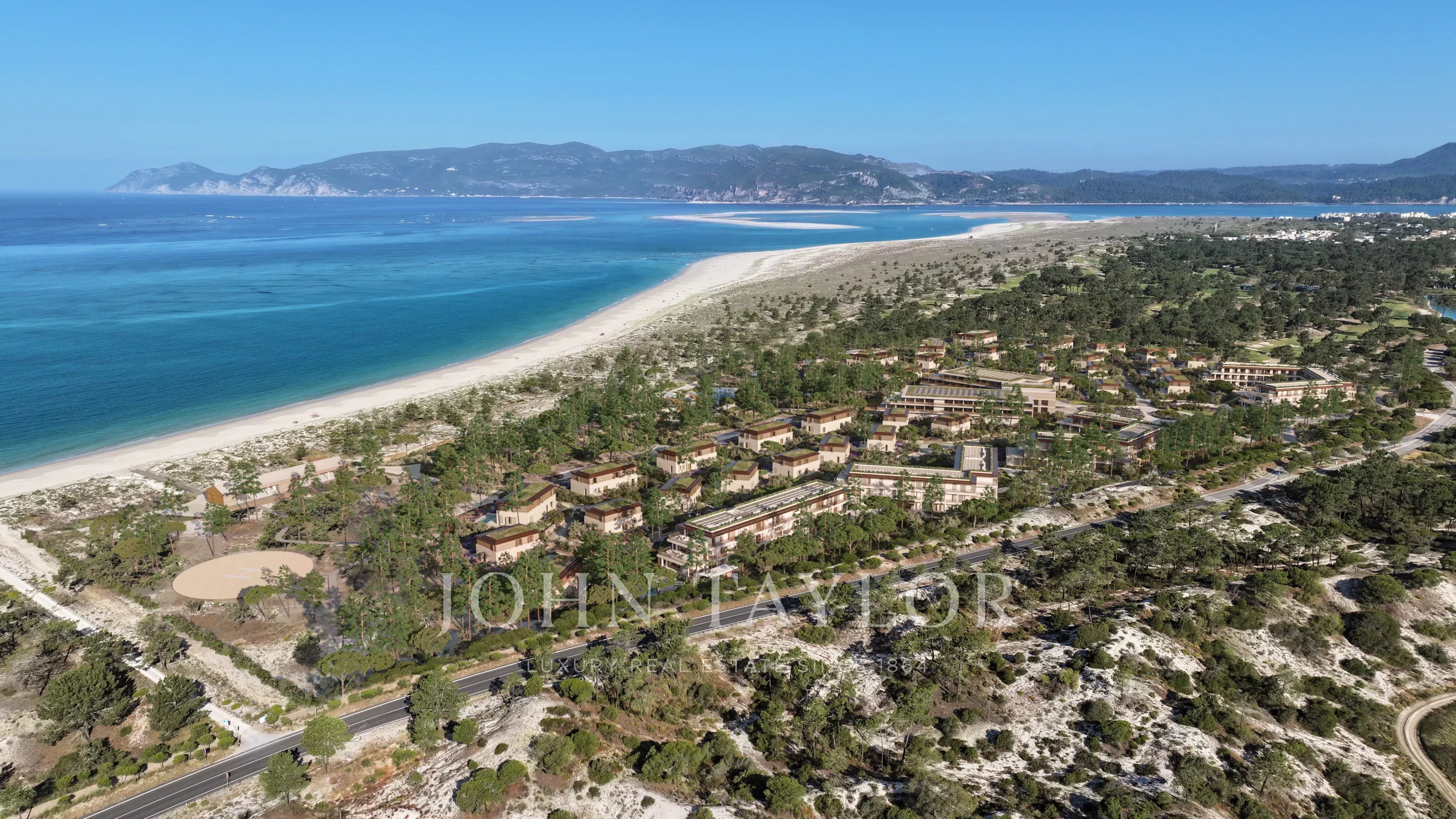 The resort is currently under development and will feature a luxurious 5-star hotel, 37 beachfront villas, and 71 stylish apartments, all designed to the highest standards. Amenities include 24-hour reception, underground parking, padel and tennis courts, a spa, saltwater pools, a beach club, a kids’ club, a gym, and a heliport. It’s also just 5 minutes from the renowned Troia Golf Club.