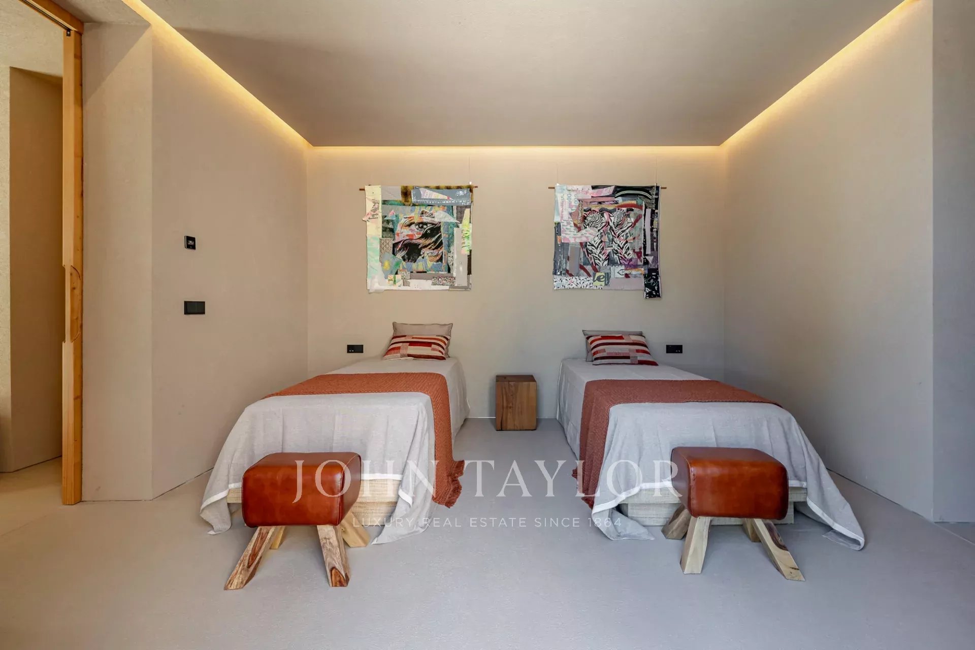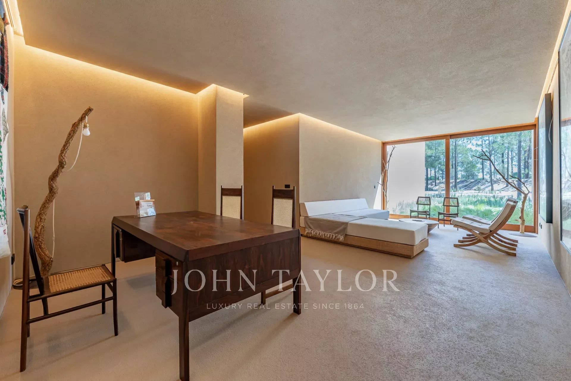 The property features four spacious en-suite bedrooms, each with its own private wooden deck, and two living rooms with stunning views. One overlooking the 96 sqm swimming pool and the other facing peaceful pine forests and the natural beauty of Comporta. The villa’s design embraces indoor-outdoor living, with a large, fully equipped kitchen, pantry, and ample storage.