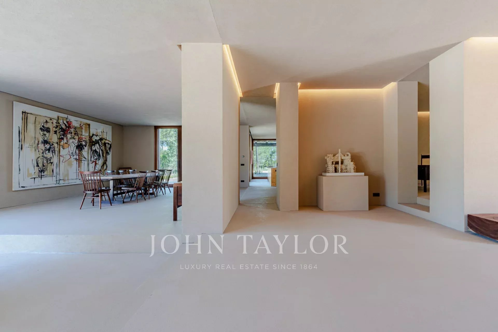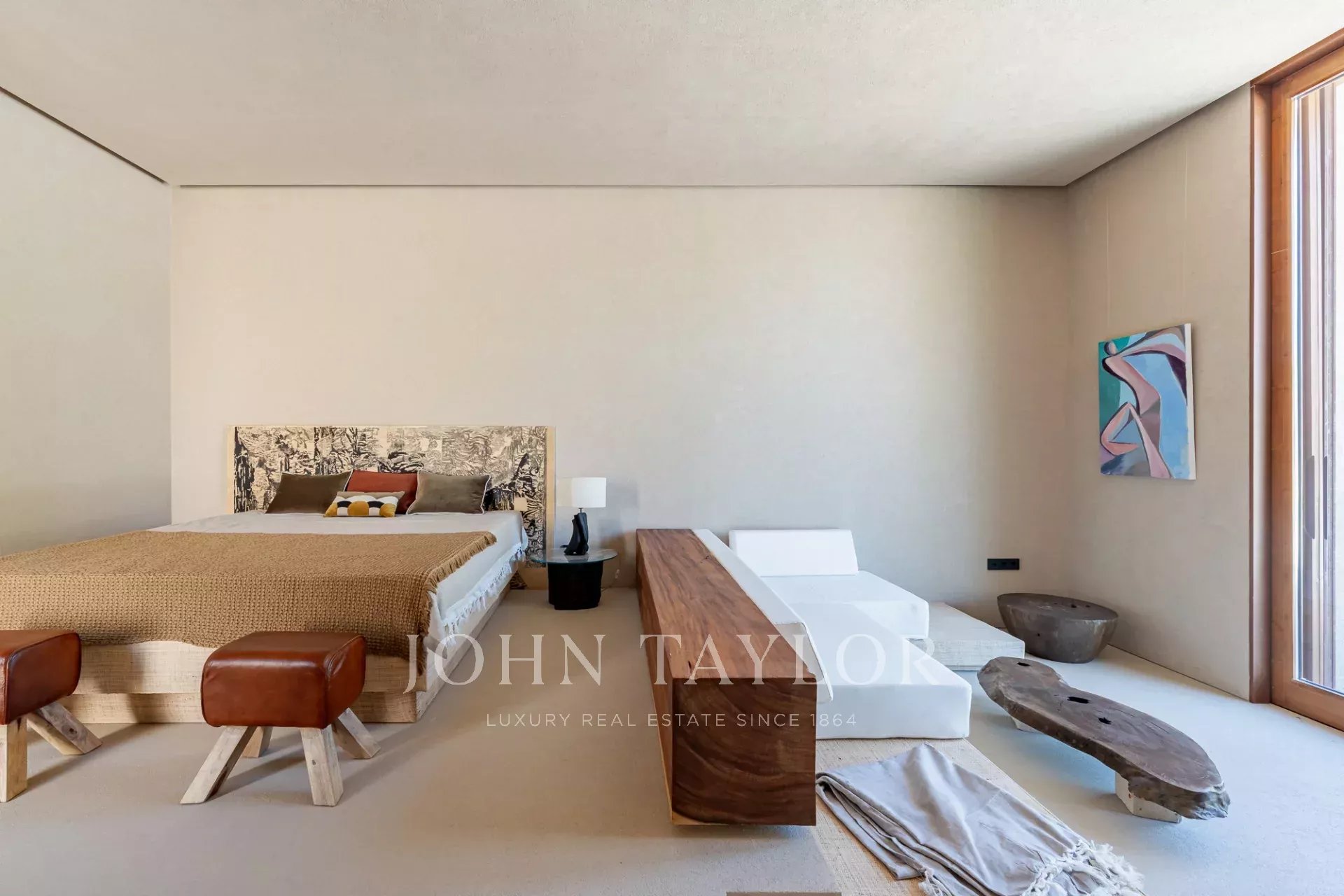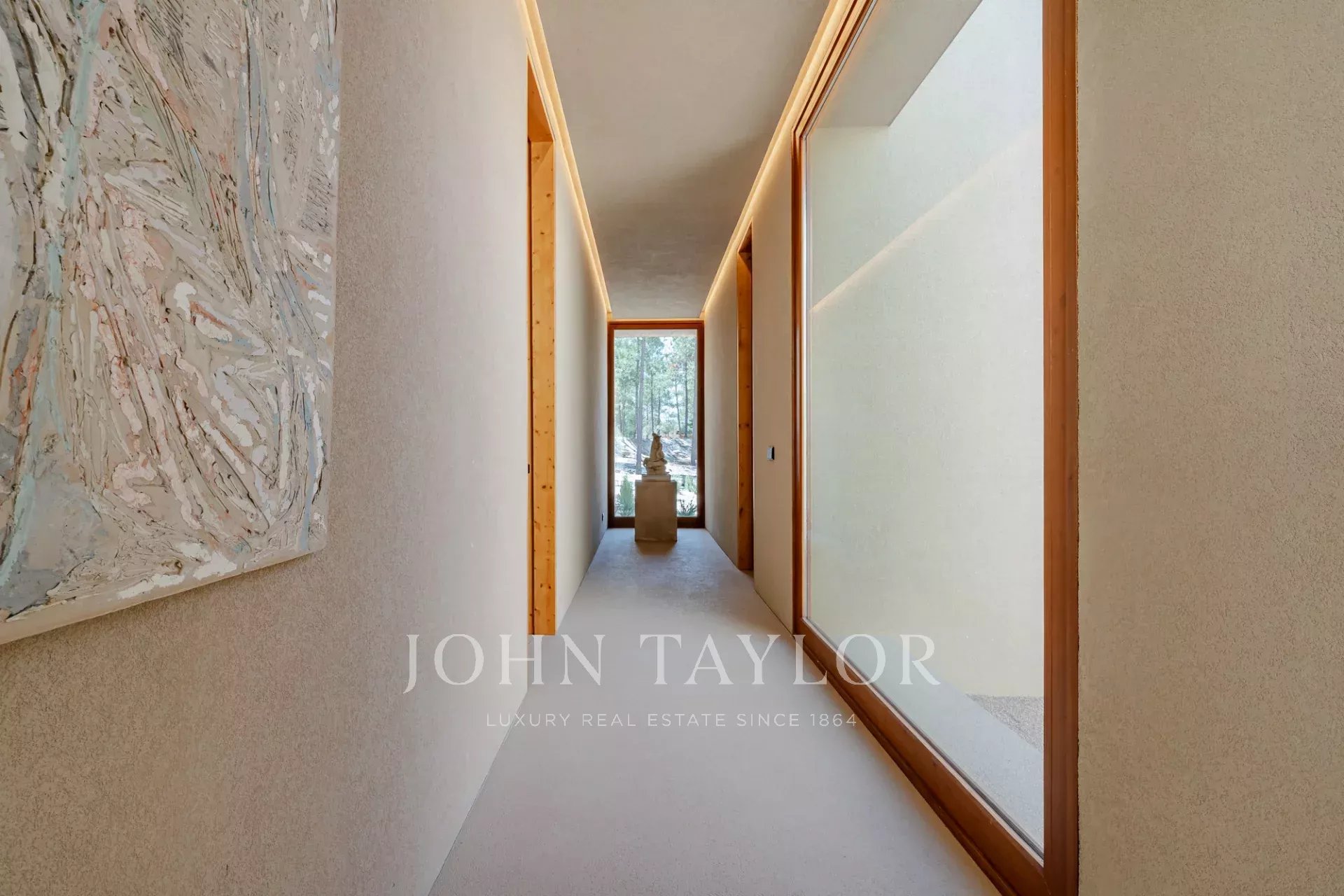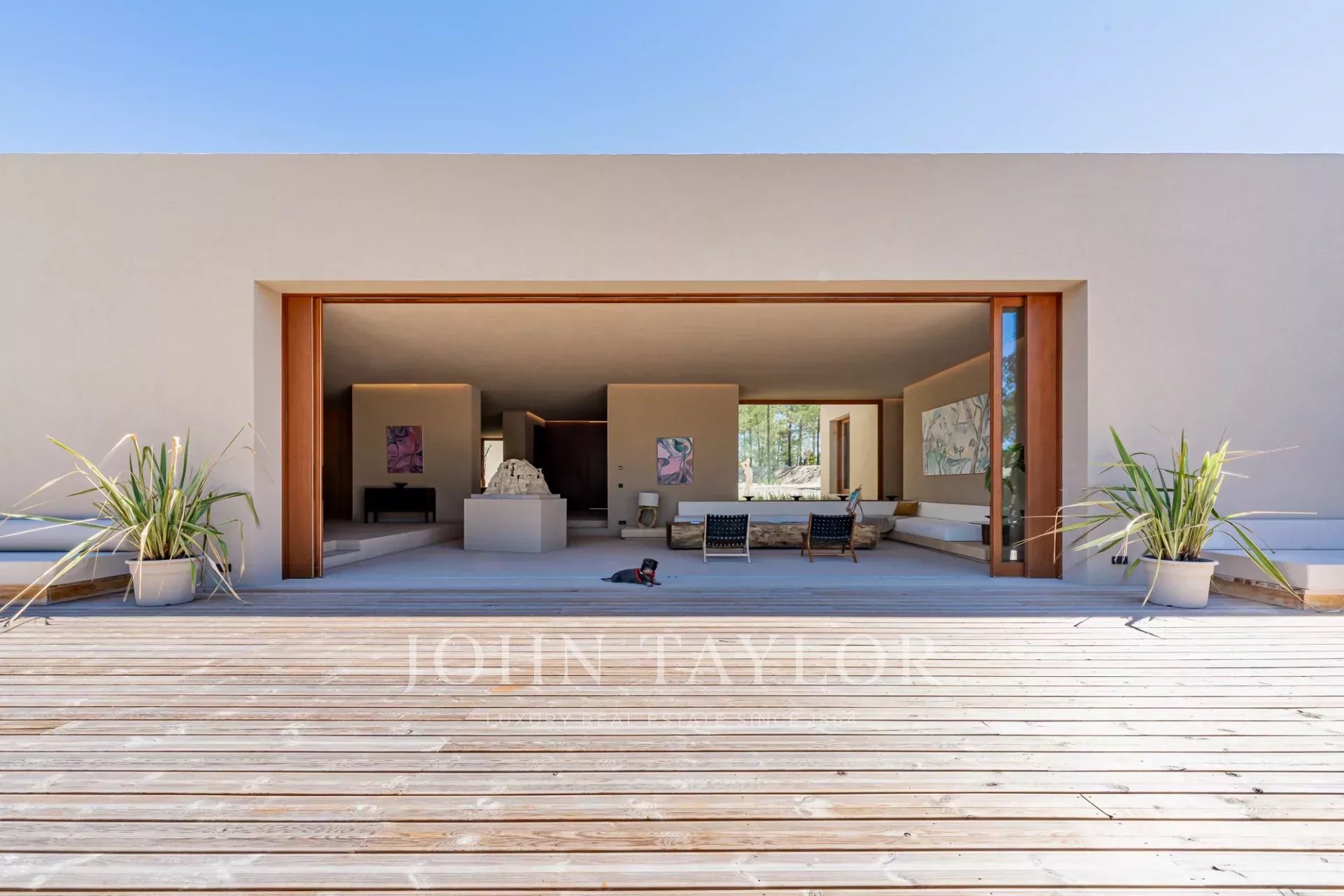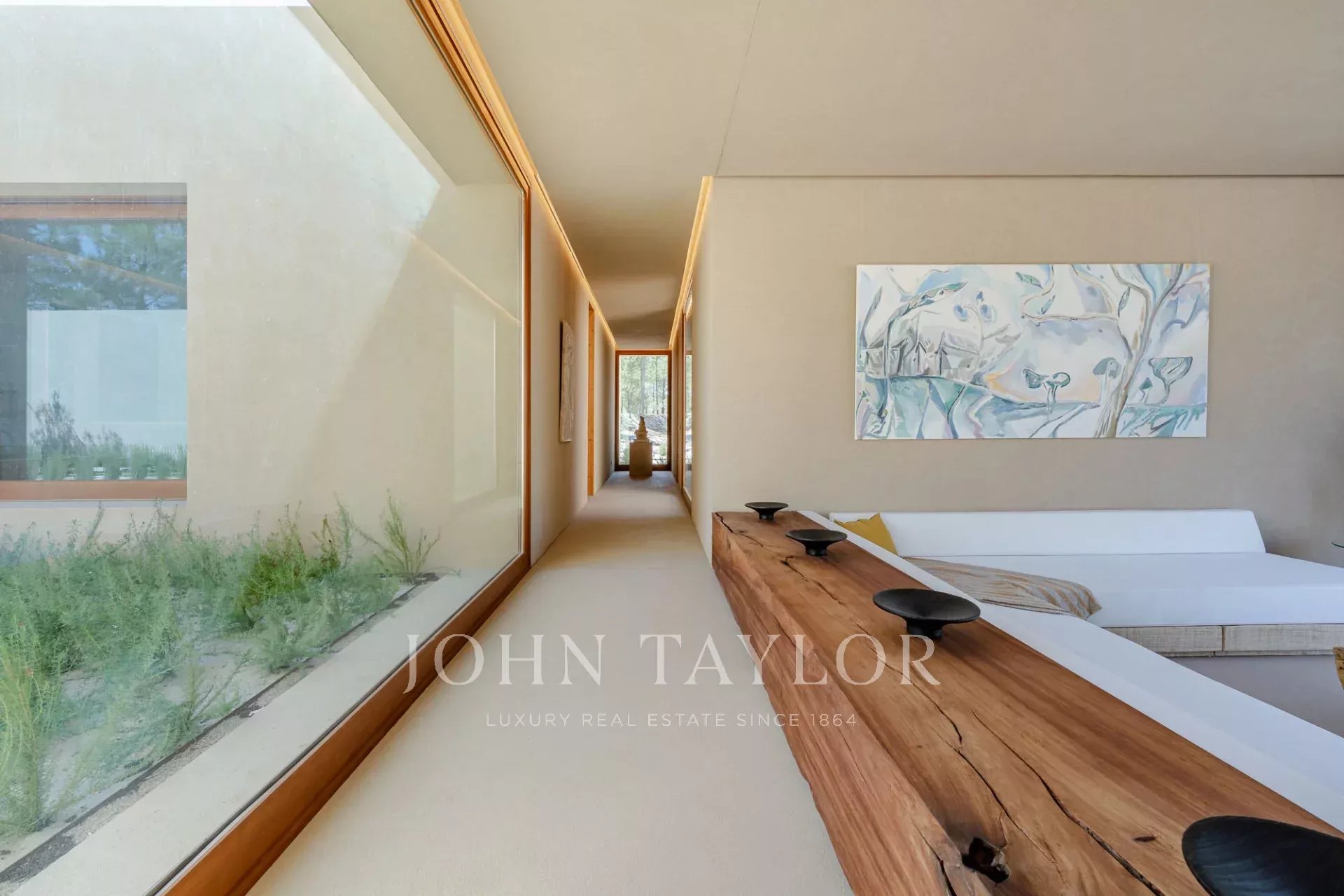 The property features four spacious en-suite bedrooms, each with its own private wooden deck, and two living rooms with stunning views overlooking the 96 sqm swimming pool and the other facing peaceful pine forests and the natural beauty of Comporta. The villa’s design embraces indoor-outdoor living, with a large, fully equipped kitchen, pantry, and ample storage.