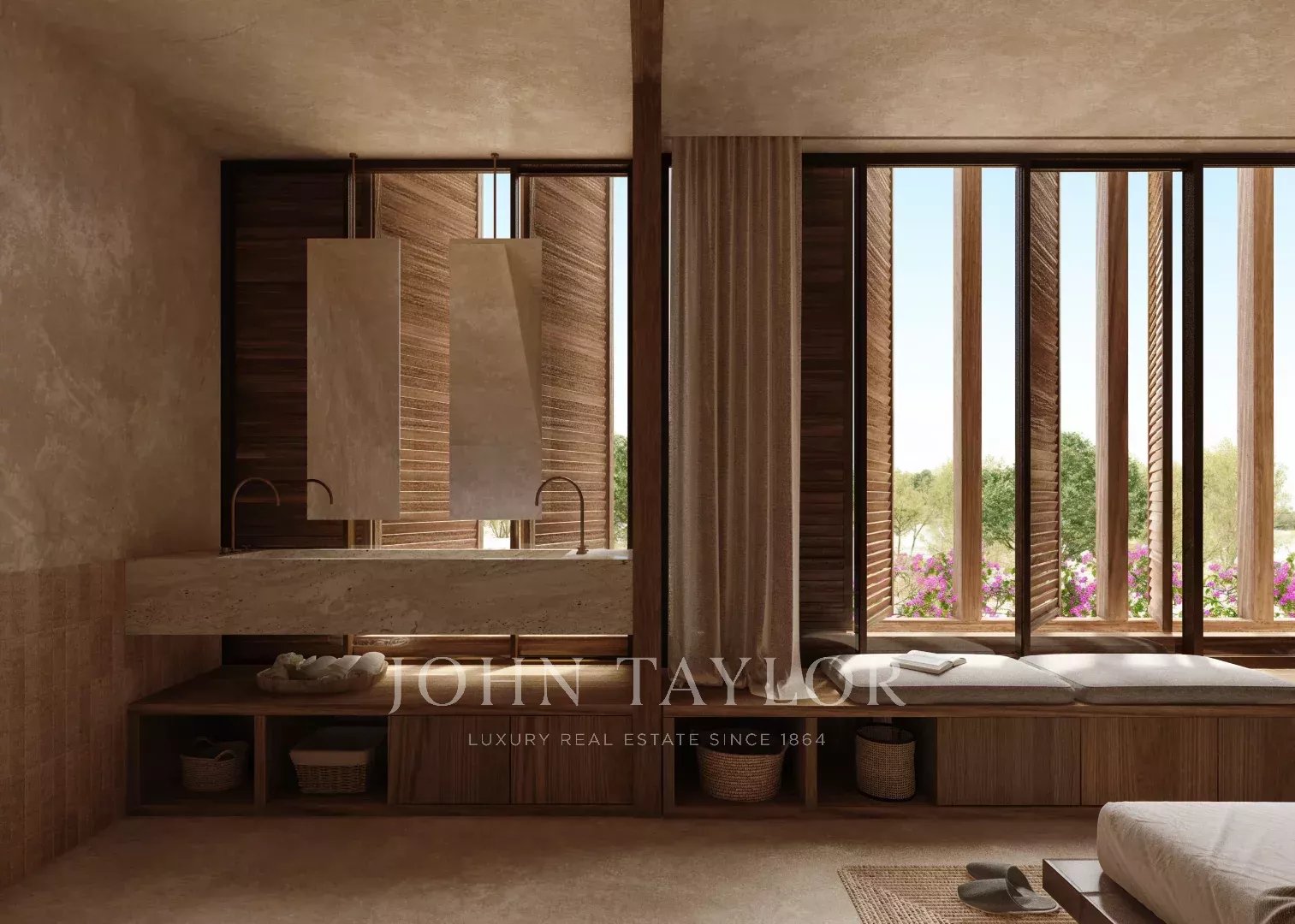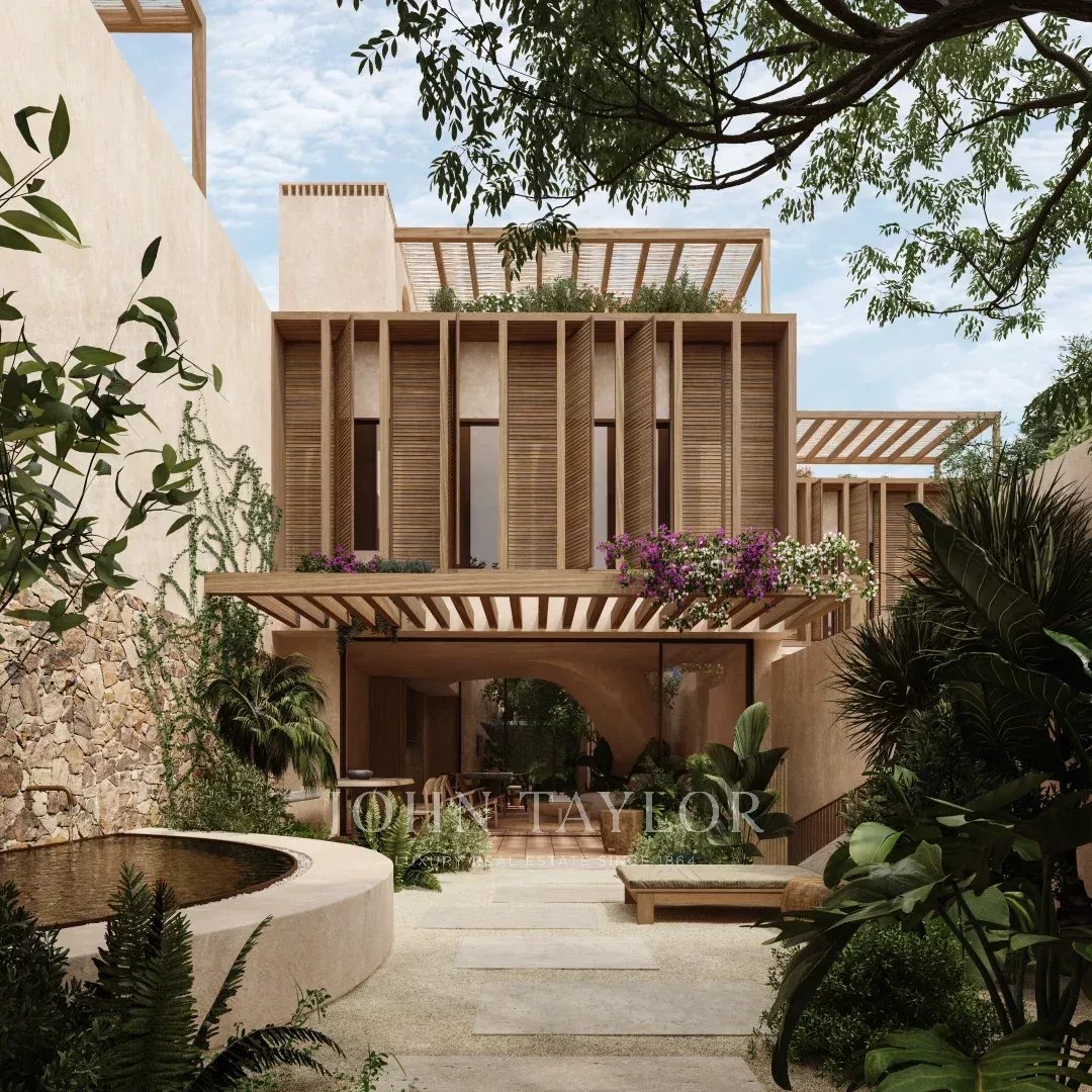 The architecture of the development is discreet and refined, designed to blend naturally into the surrounding landscape. Natural materials such as wood, stone, and clay are used throughout, creating warm, elegant interiors with a strong connection to the outdoors.