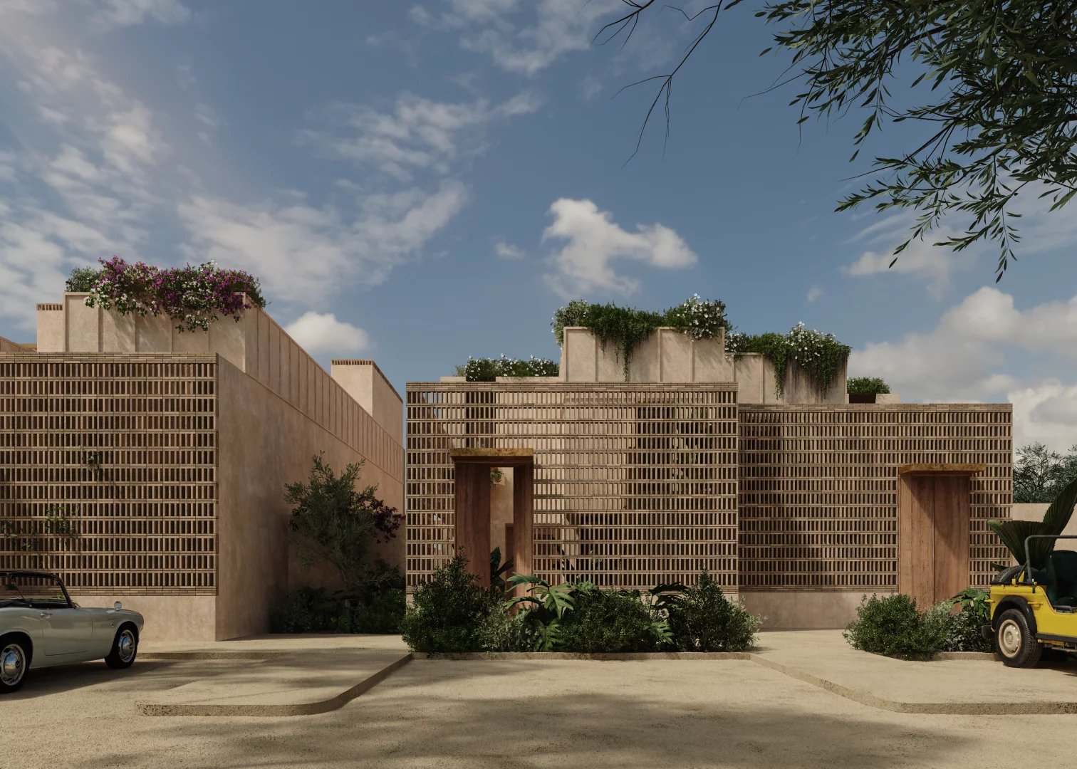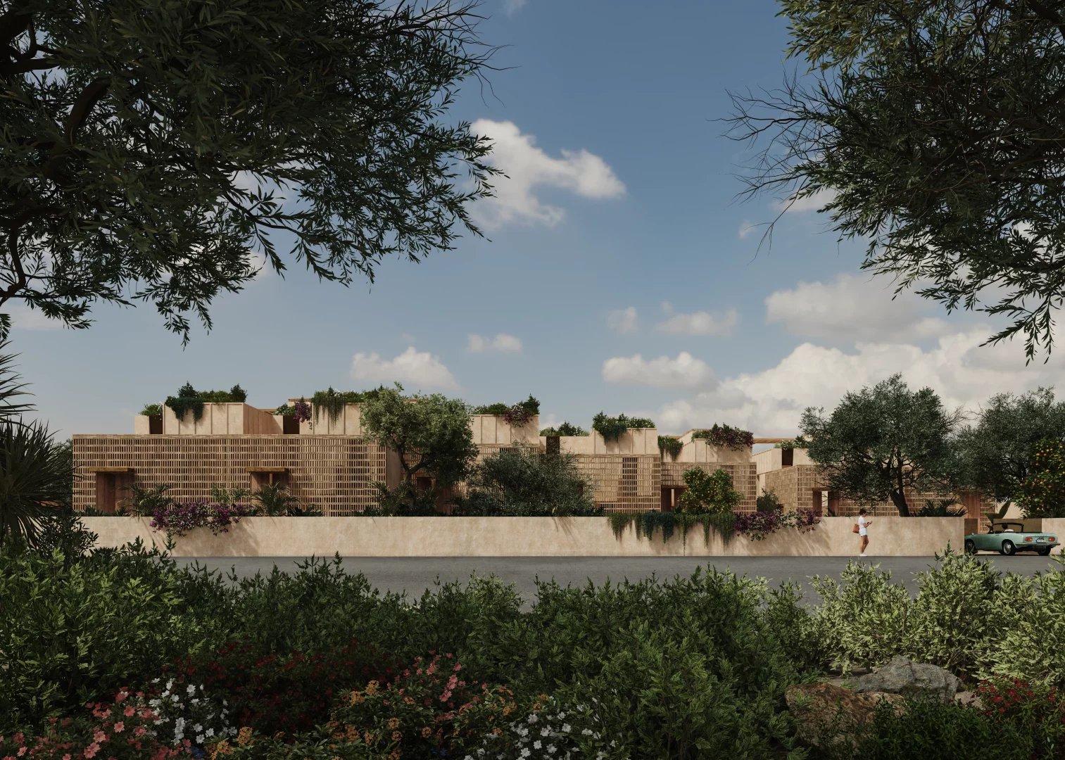 The architecture of the development is discreet and refined, designed to blend naturally into the surrounding landscape. Natural materials such as wood, stone, and clay are used throughout, creating warm, elegant interiors with a strong connection to the outdoors.