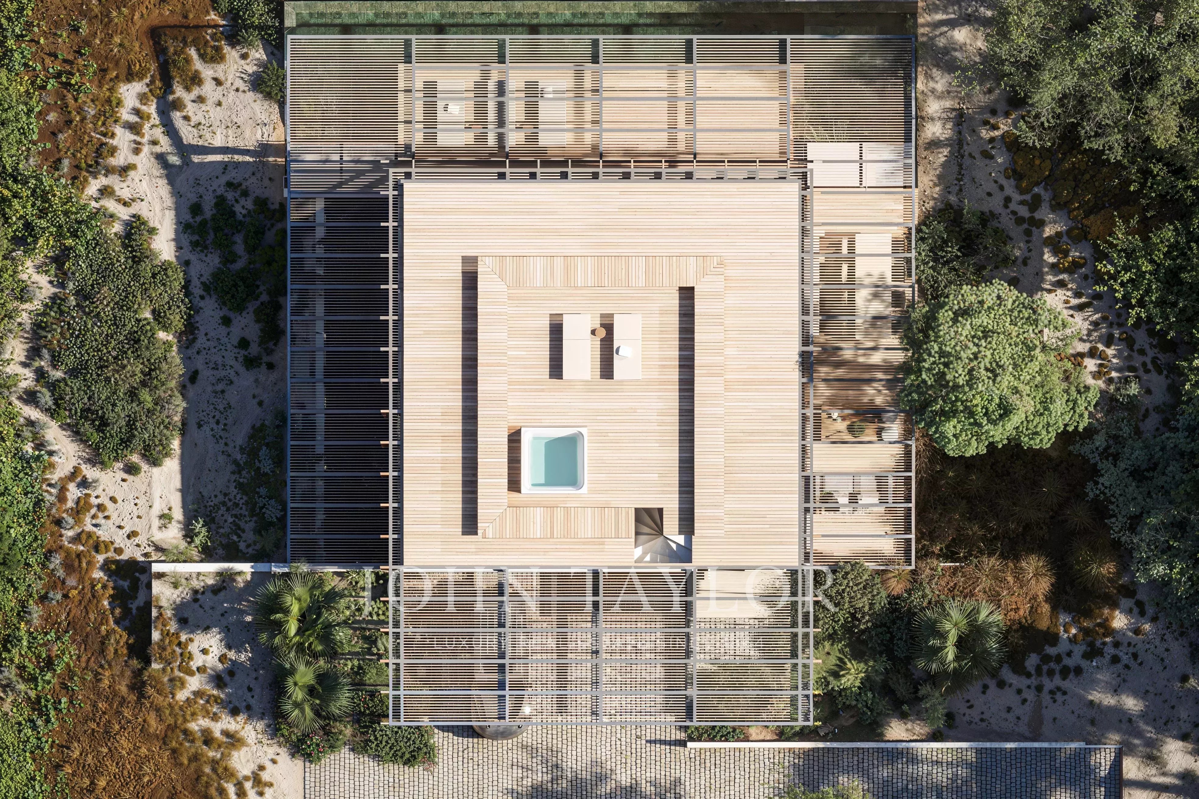 A panoramic 39 m² rooftop terrace with jacuzzi crowns the property, offering an elevated space for contemplation and uninterrupted views over the golf course and natural surroundings.