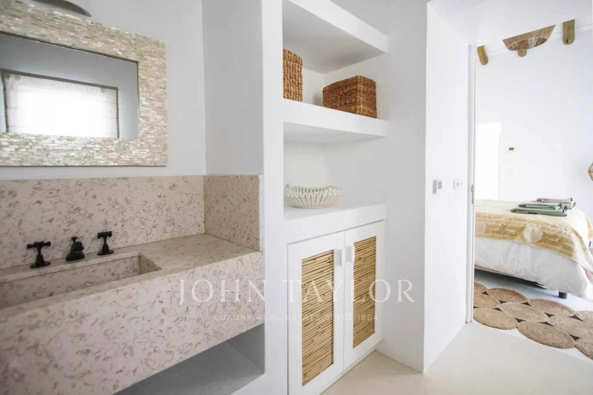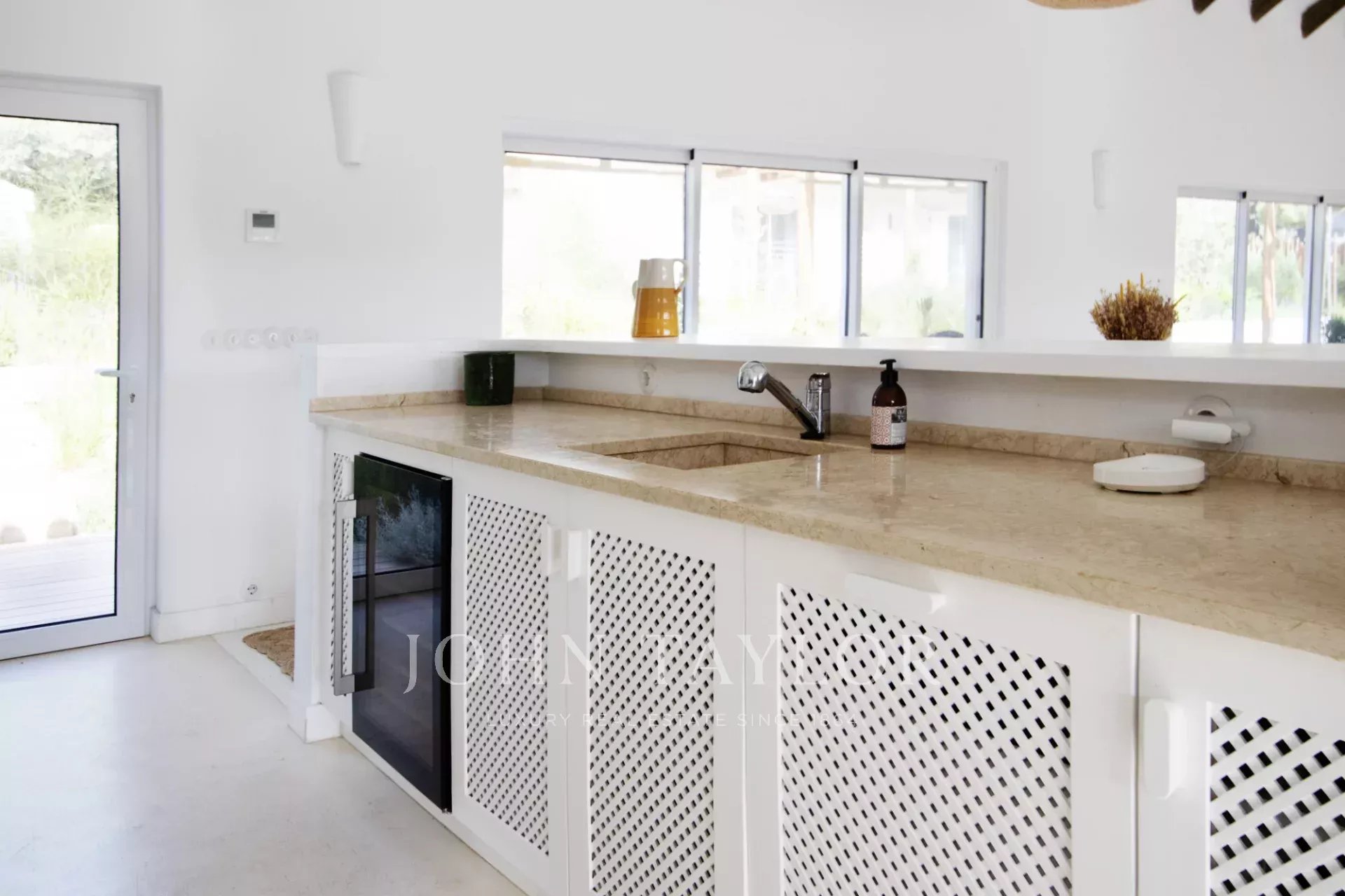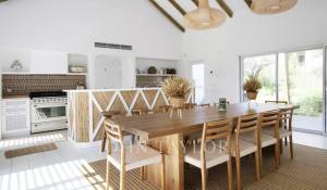 Upon entering this magnificent Villa, you will be greeted by a spacious kitchen and living room in open space, decorated in the traditional style of Comporta, its large windows allow the entry of natural light, thus making a more welcoming environment.