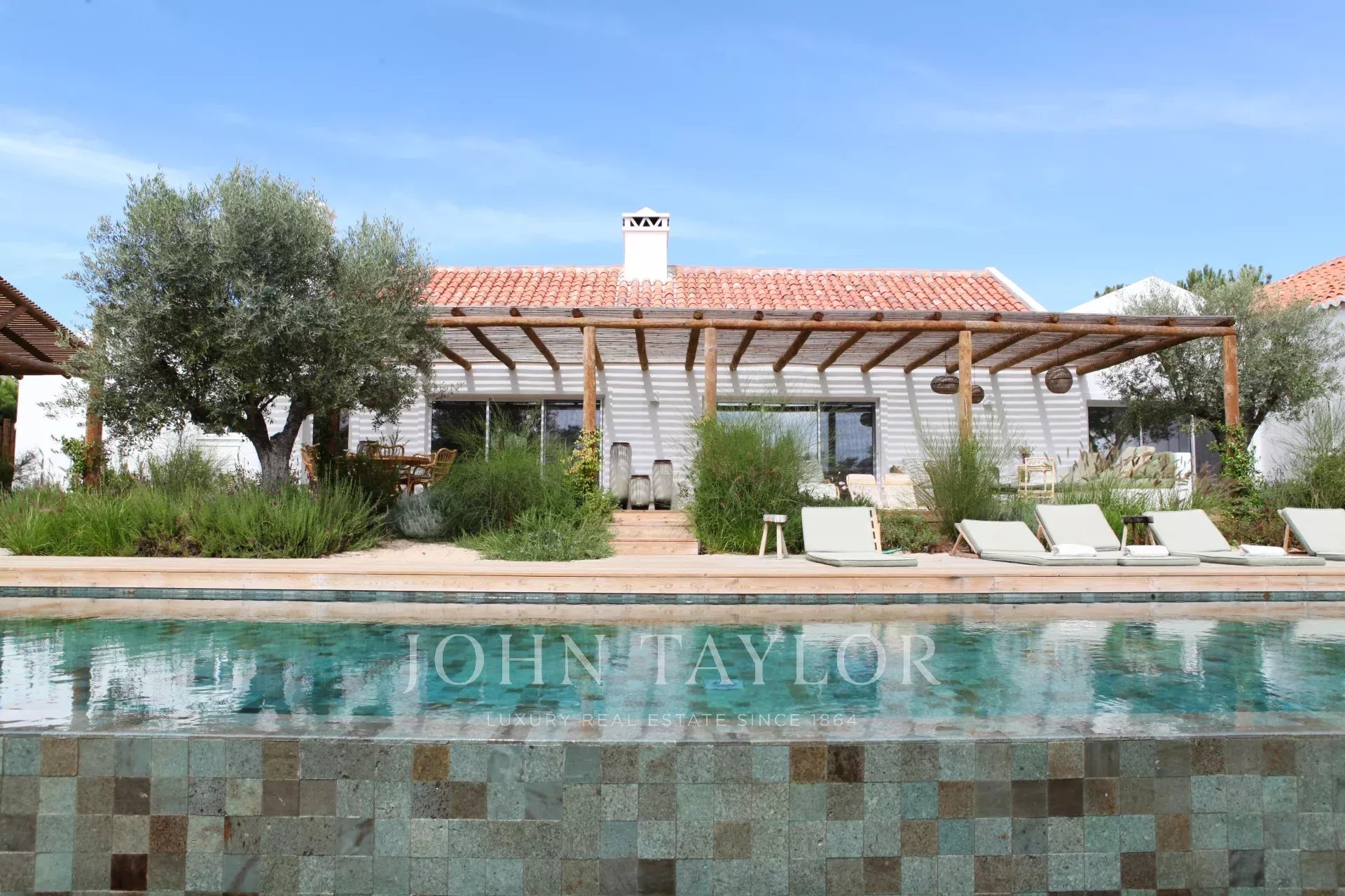 The Villa is made up of 3 volumes linked together by a walkway, with white facades and a red terracotta and thatched roof, with several terraces perfect for enjoying the tranquility of Comporta or for spending time with your family and friends.