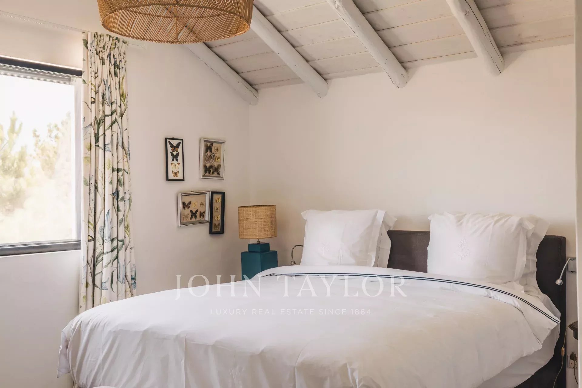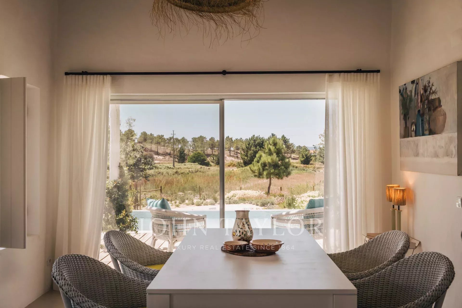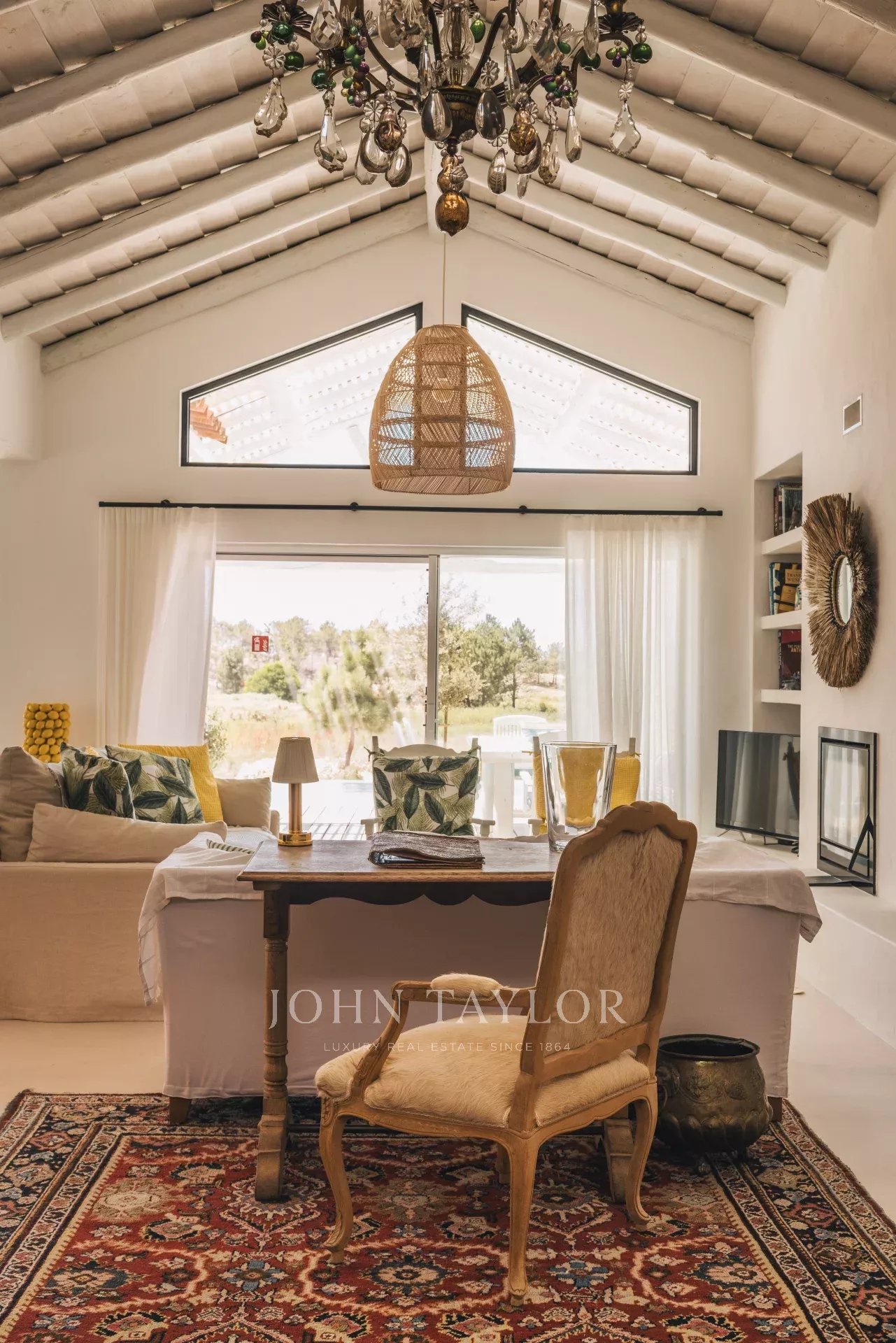 Charming villa with the style of traditional architecture from the Comporta region, with stunning views of the pine forest, consisting of 4 bedrooms en suite, living room, dining room and open kitchen. Outside there are several porches with areas to relax and enjoy the surrounding nature, a dining area next to the pool with privacy and an unobstructed view of the pine forest.