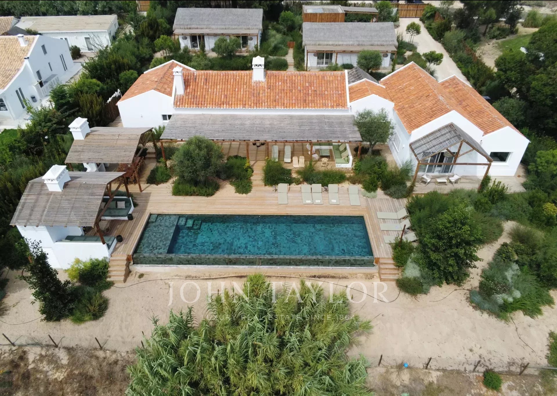 In one of the most exclusive areas of Comporta, you will find the magnificent Villa Ayina with 6 suites, a large living room and an excellent outdoor space with a swimming pool, total privacy and views over the pine forest.