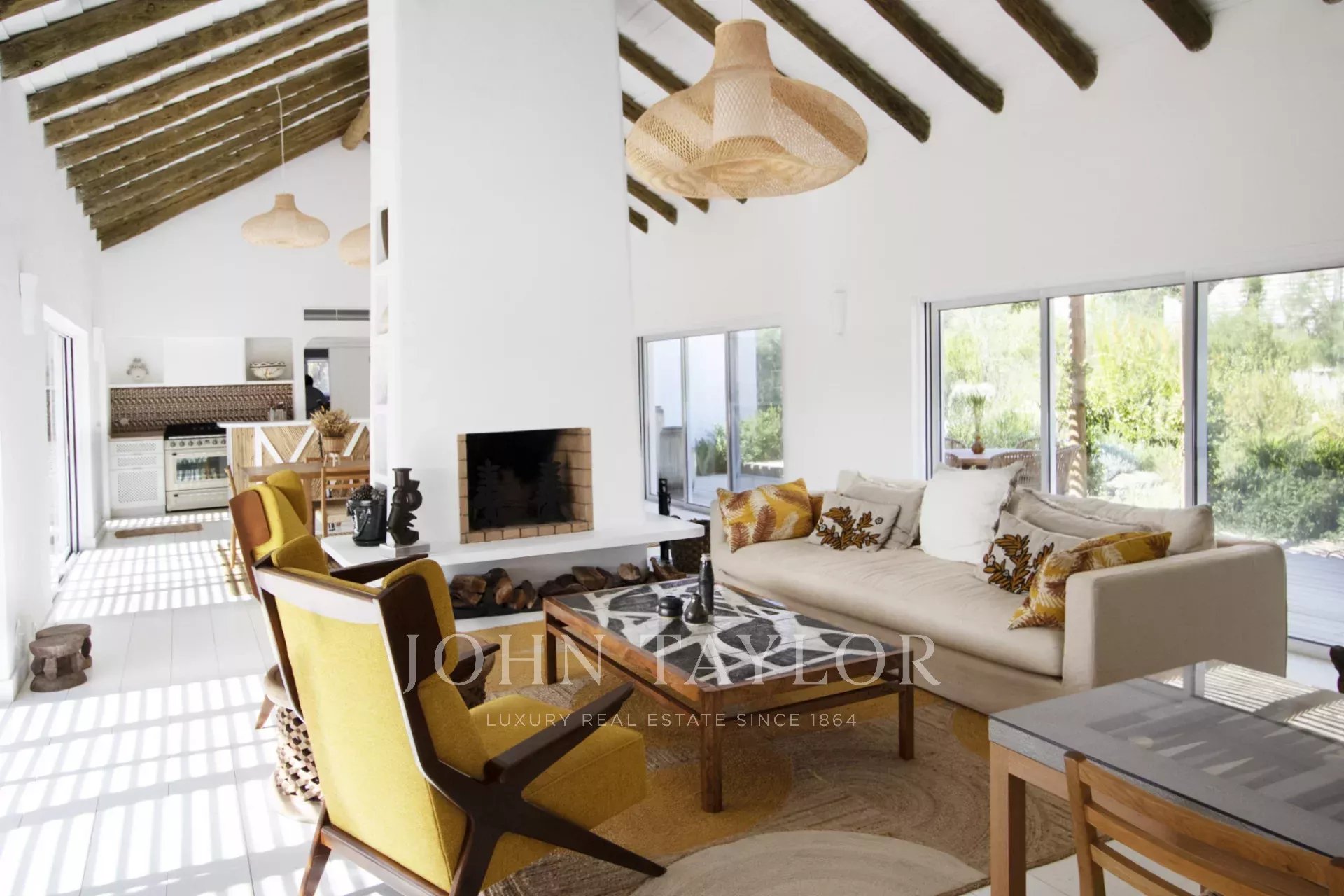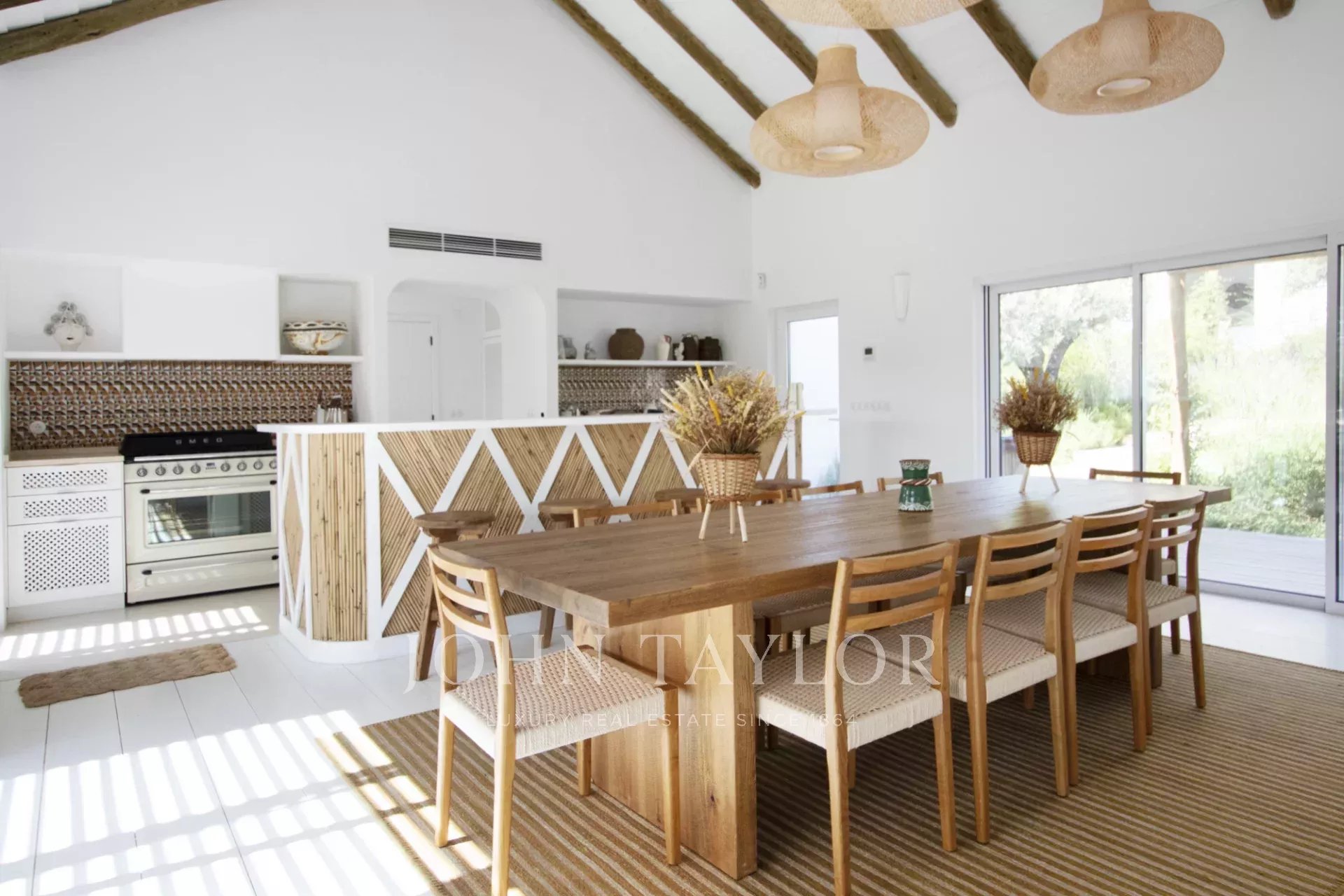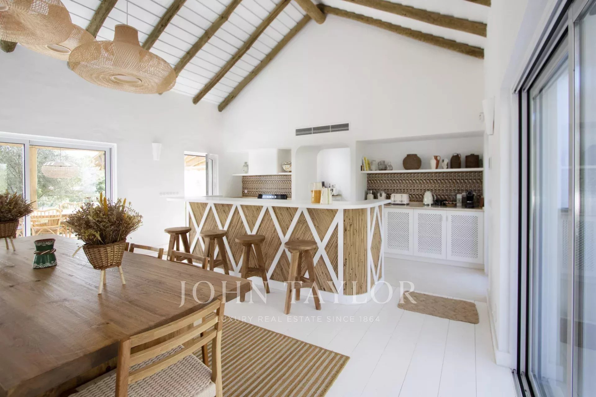 Upon entering this magnificent Villa, you will be greeted by a spacious kitchen and living room in open space, decorated in the traditional style of Comporta, its large windows allow the entry of natural light, thus making a more welcoming environment.