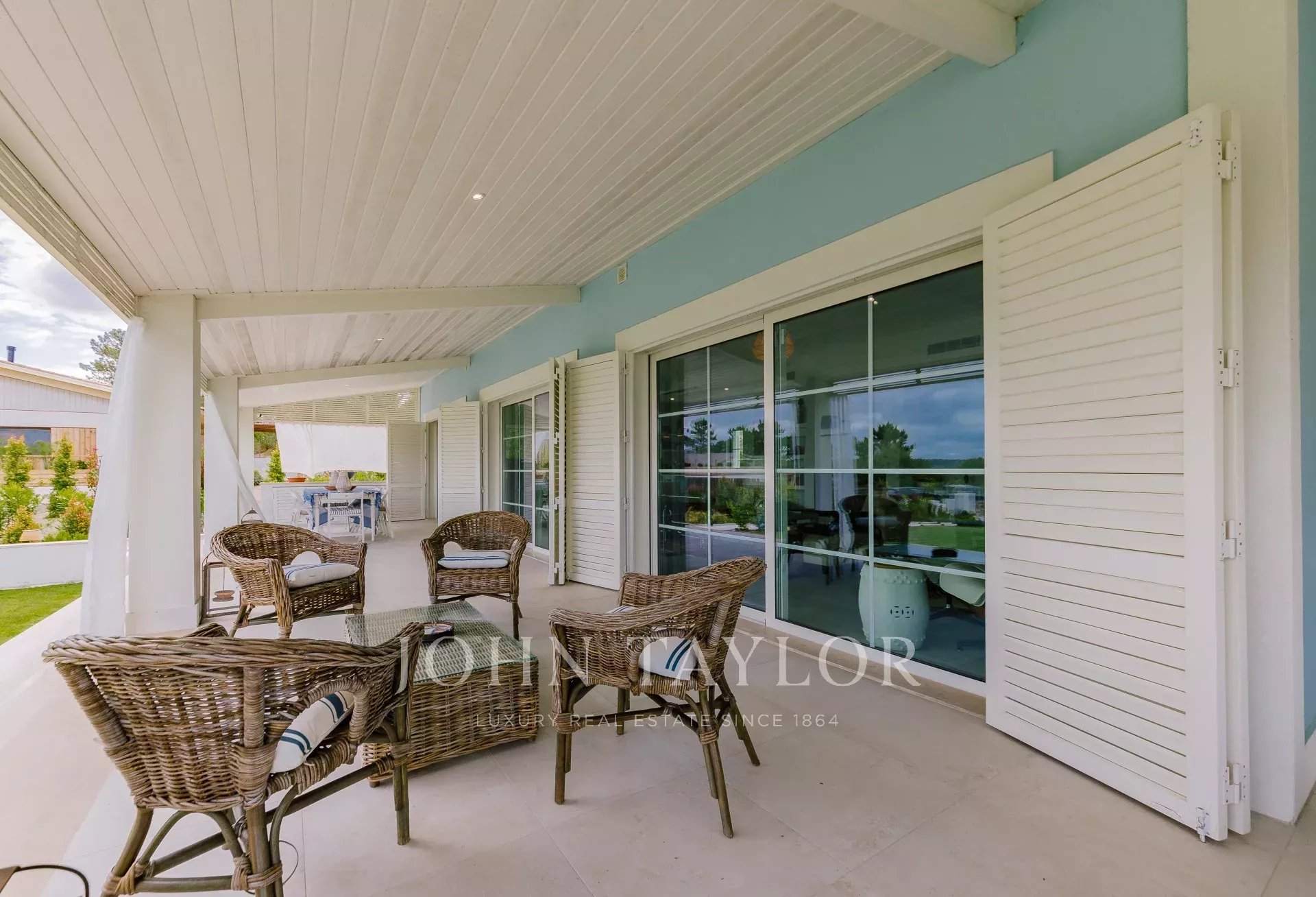 You can also enjoy the shade of the porch with a table for meals or the solarium with sunbeds by the pool.