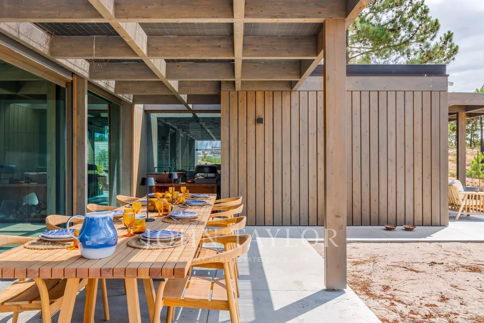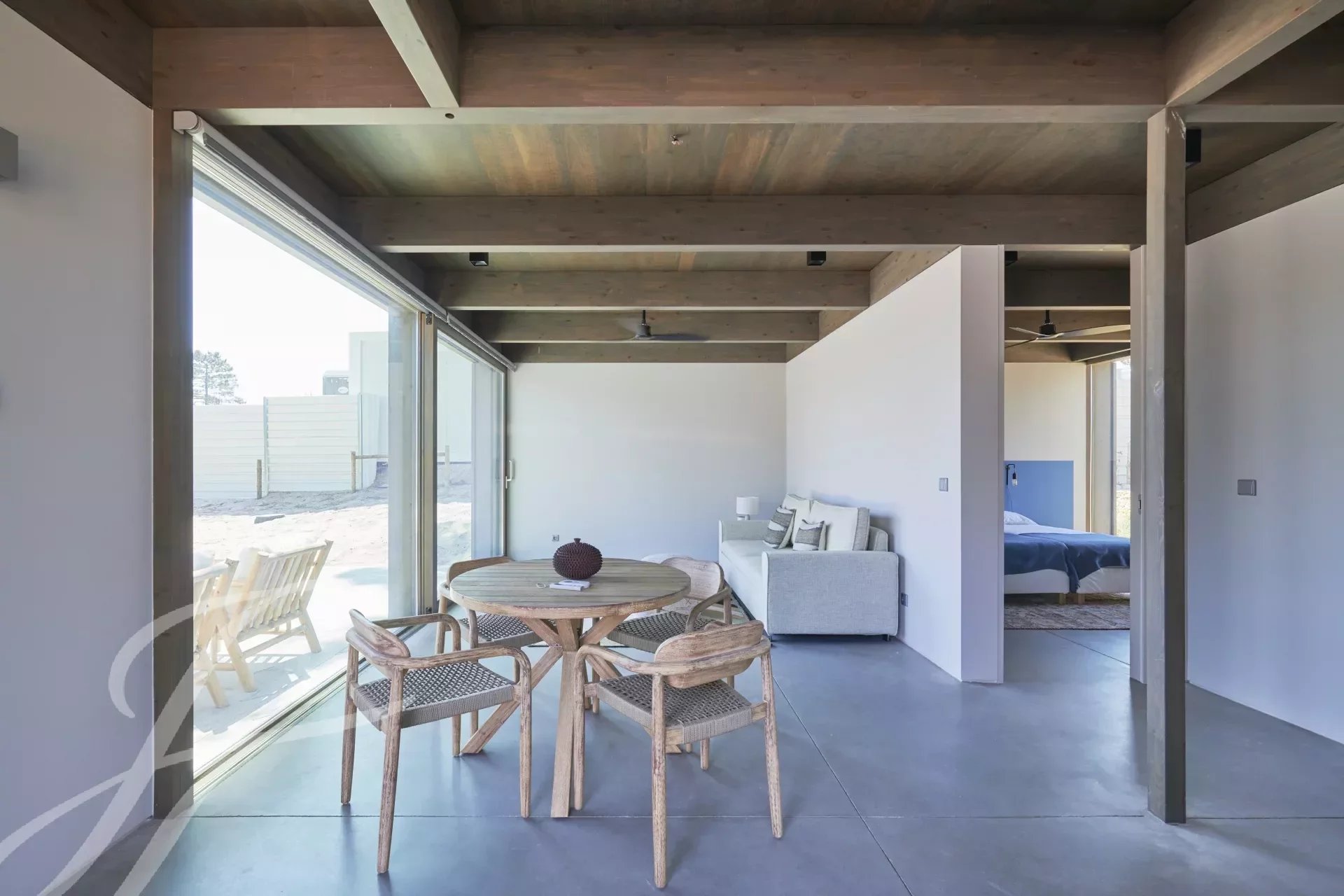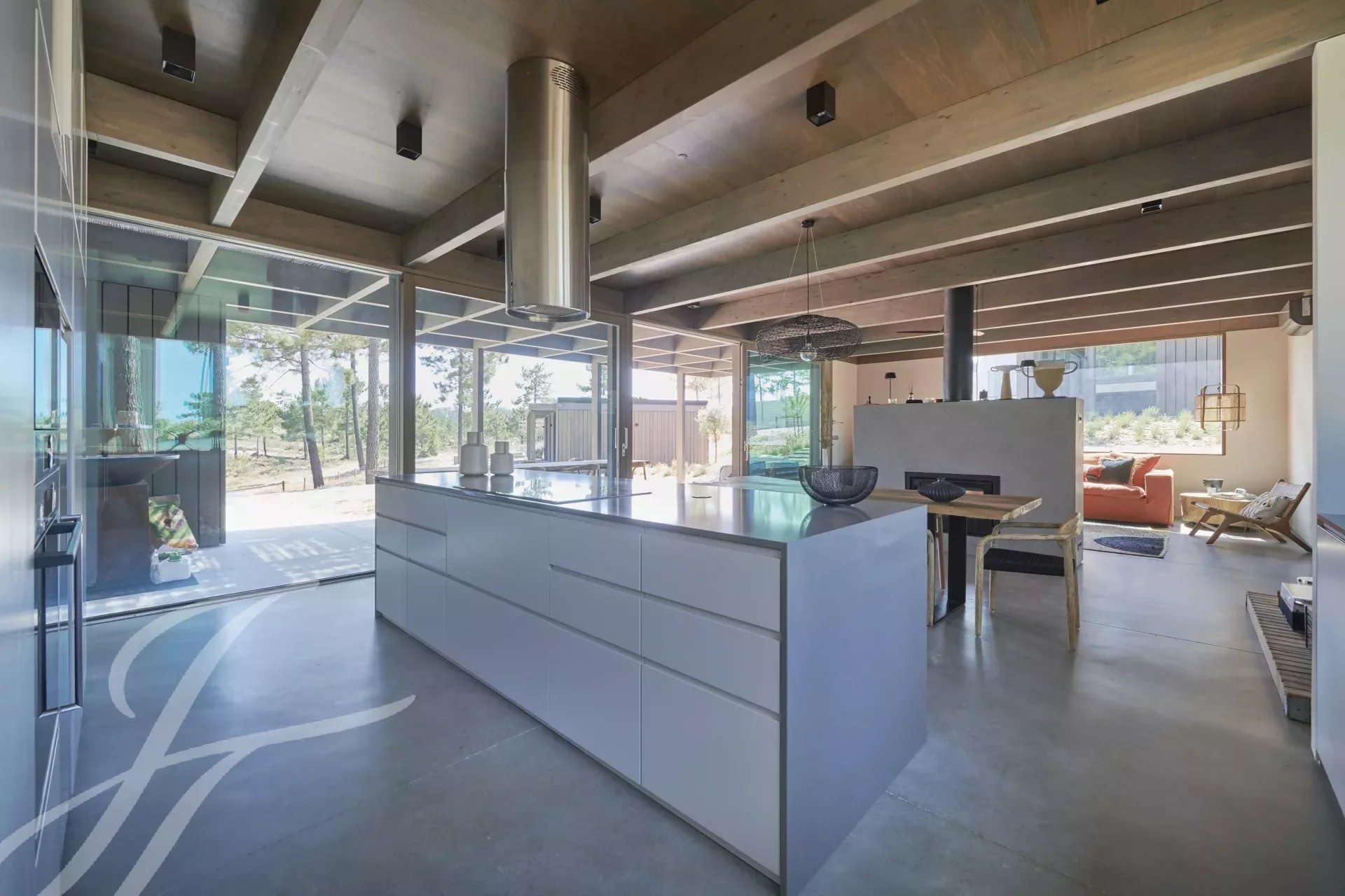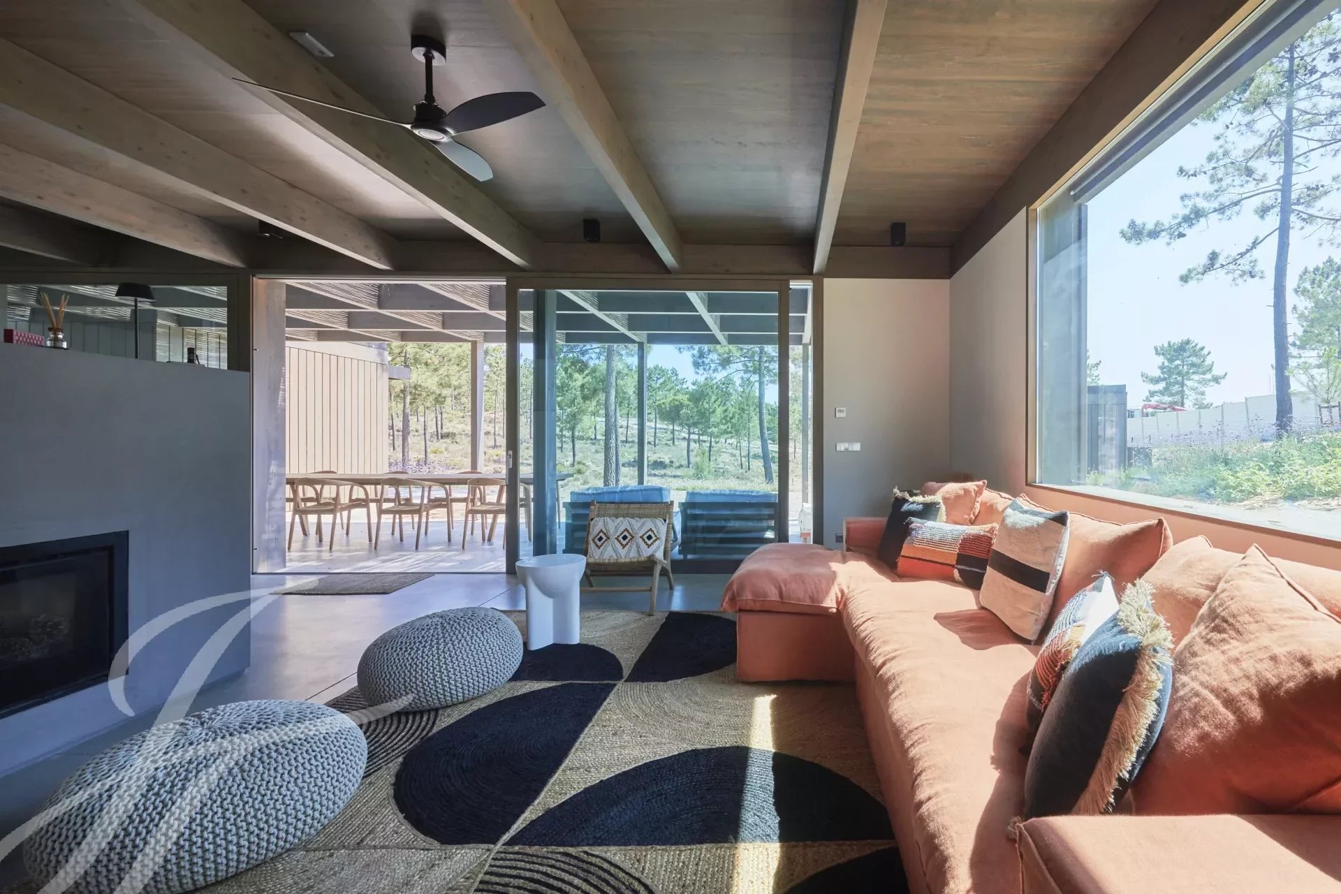 The villa has an excellent swimming pool with a south-facing deck where you can enjoy the view of the pine forest and the Comporta sun. Continuing from the pool you can walk to the fire pit where you can enjoy the surrounding nature in a relaxed and sophisticated atmosphere.