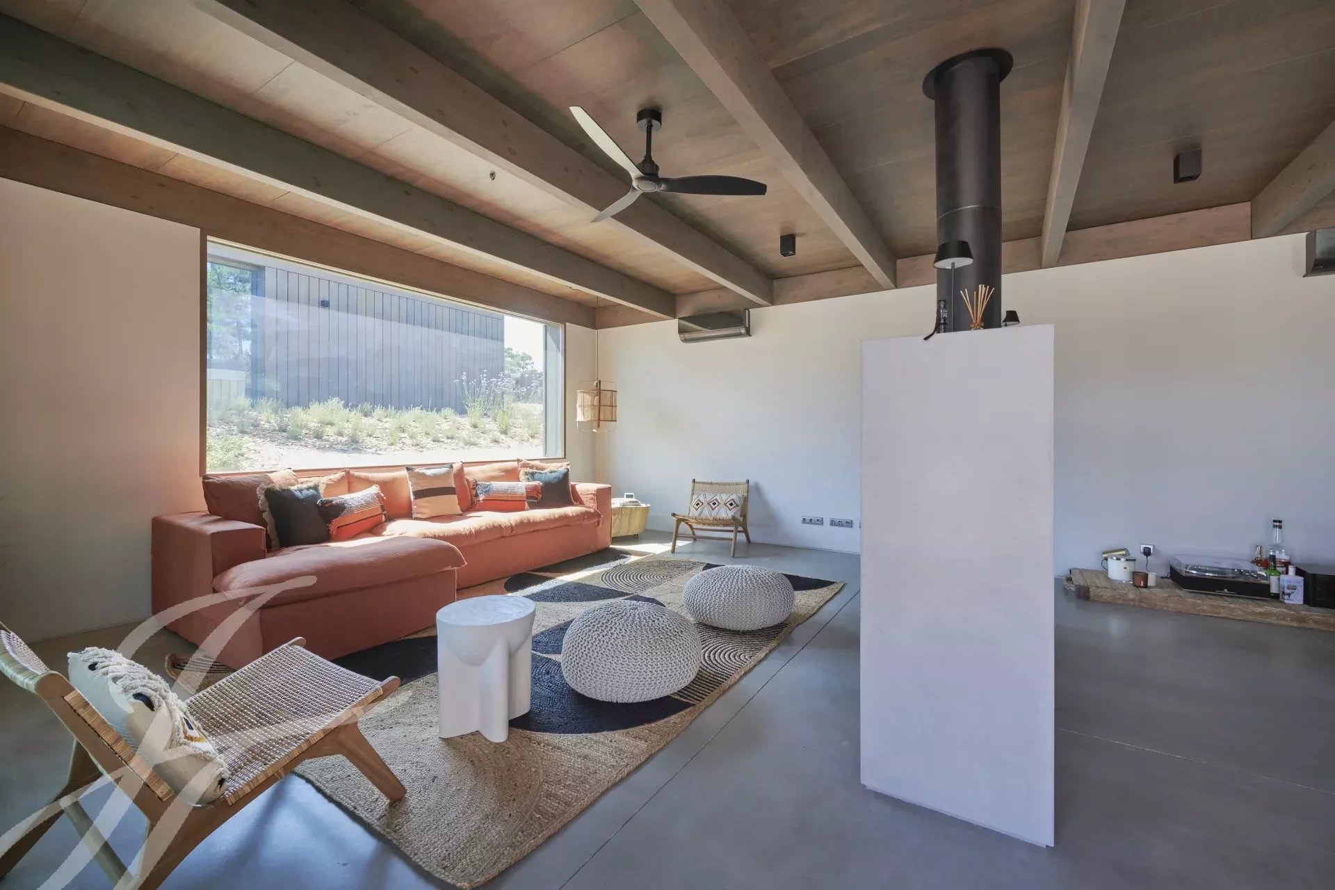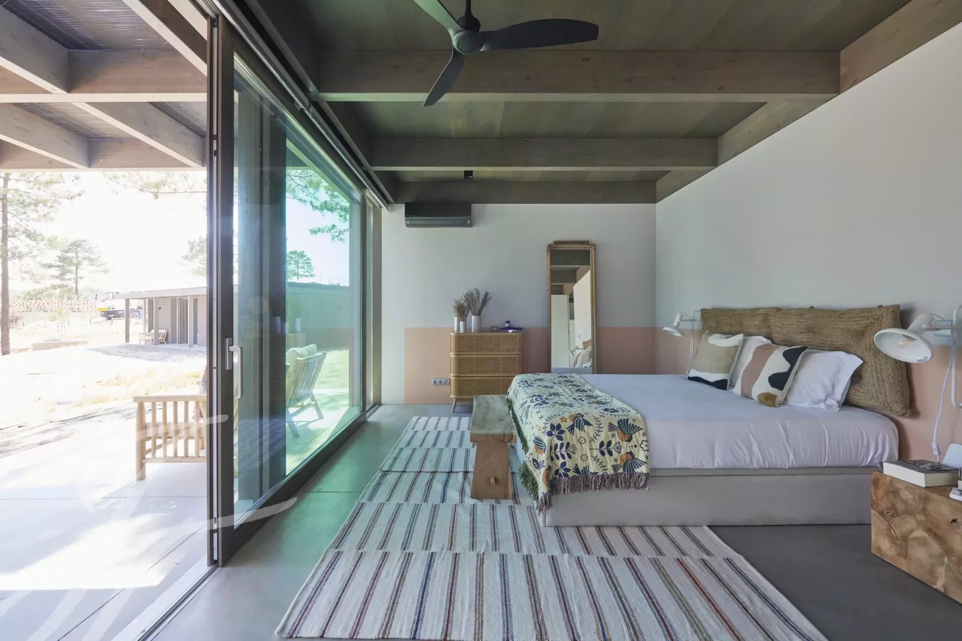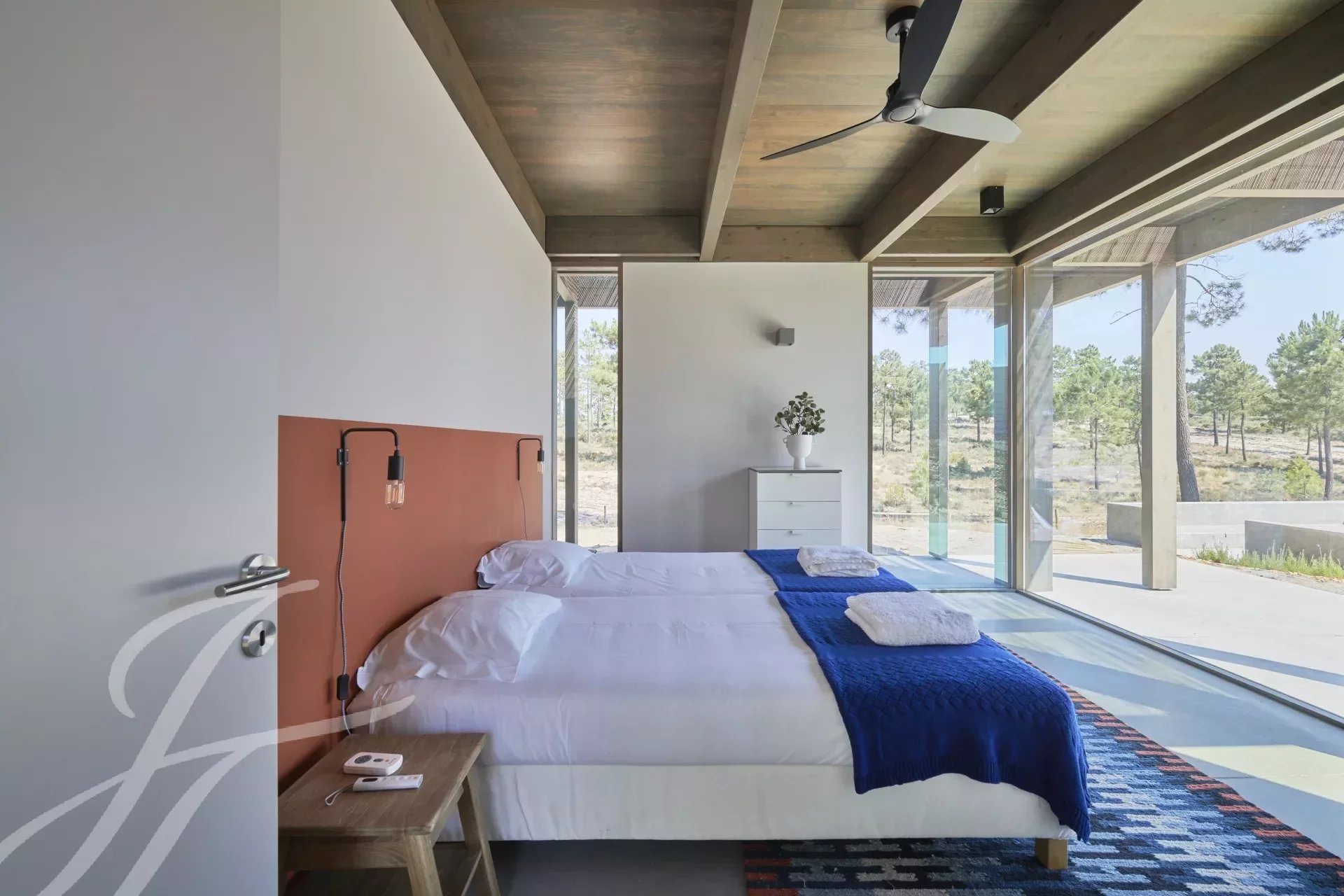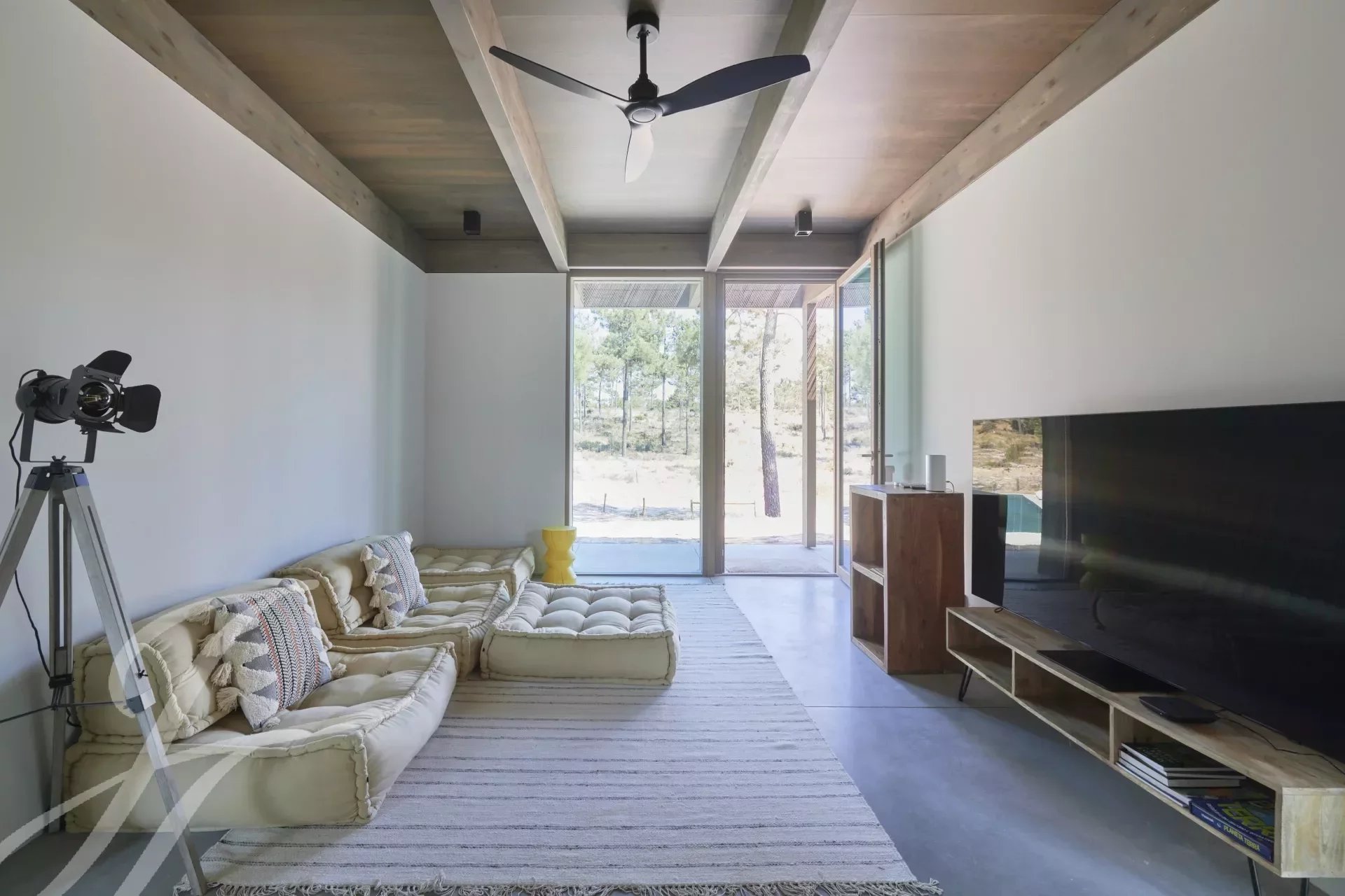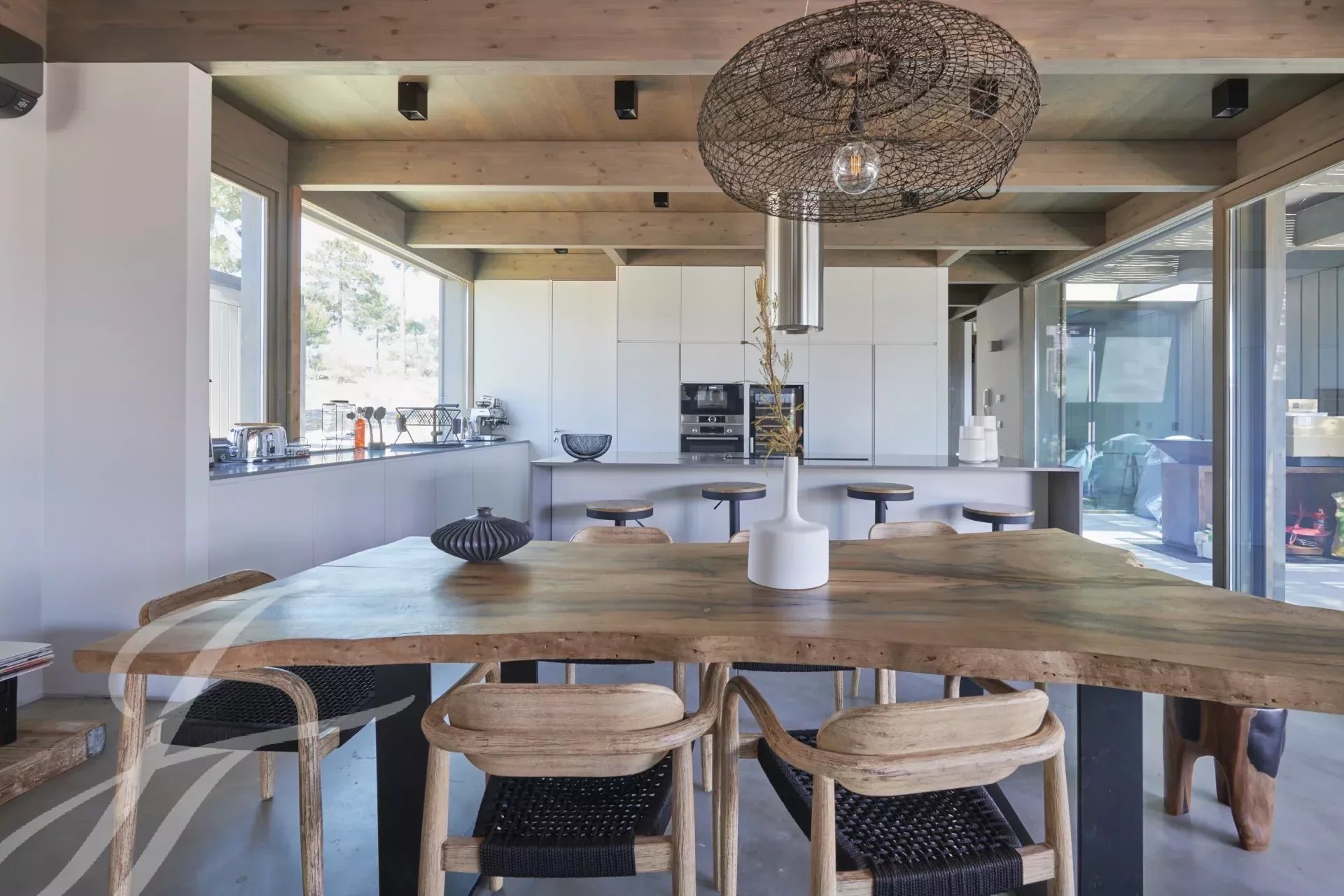 The villa has an excellent swimming pool with a south-facing deck where you can enjoy the view of the pine forest and the Comporta sun. Continuing from the pool you can walk to the fire pit where you can enjoy the surrounding nature in a relaxed and sophisticated atmosphere.