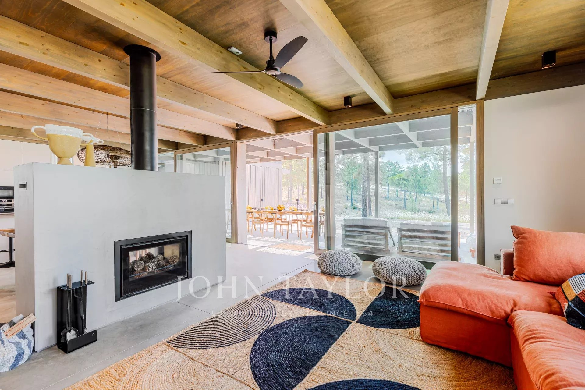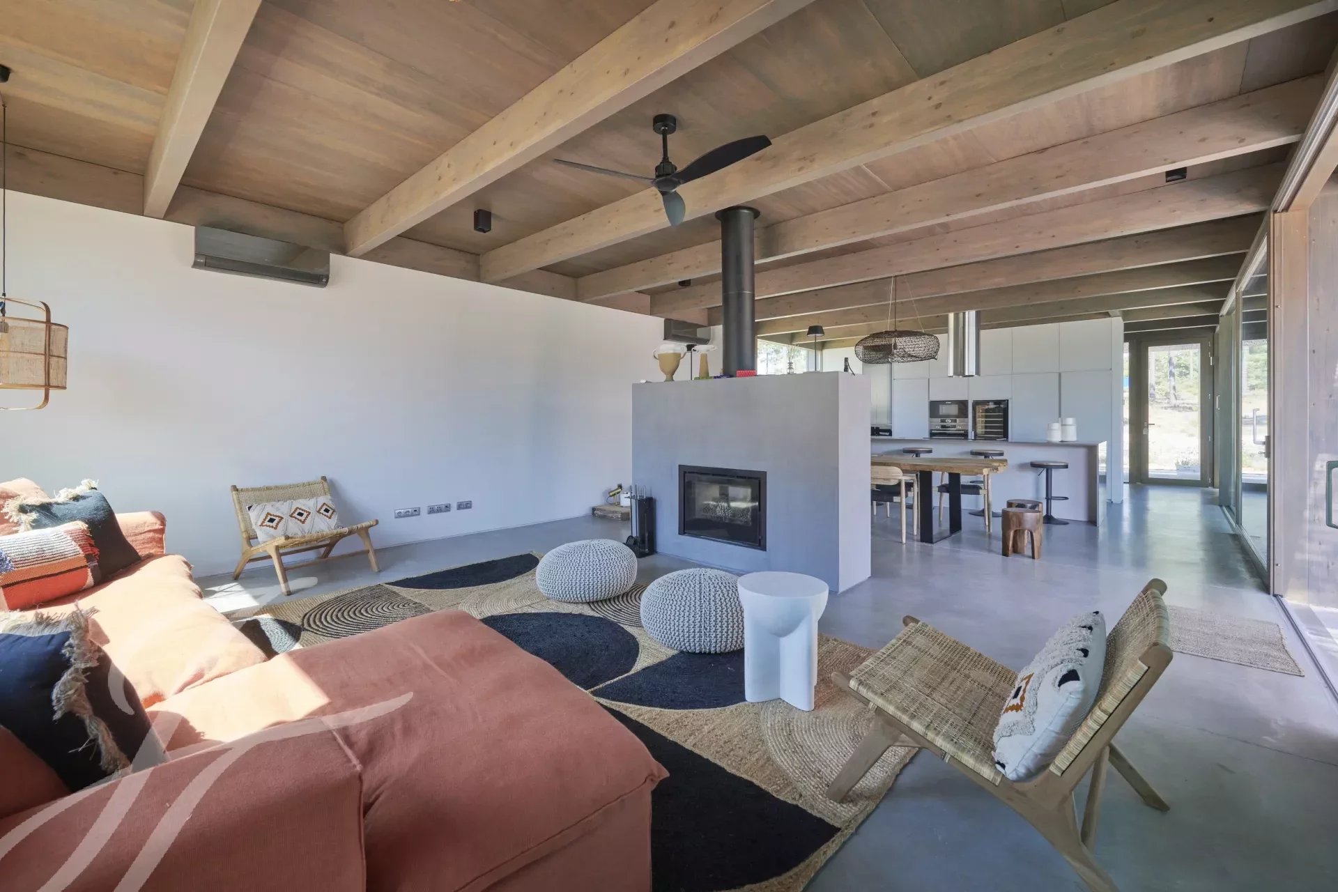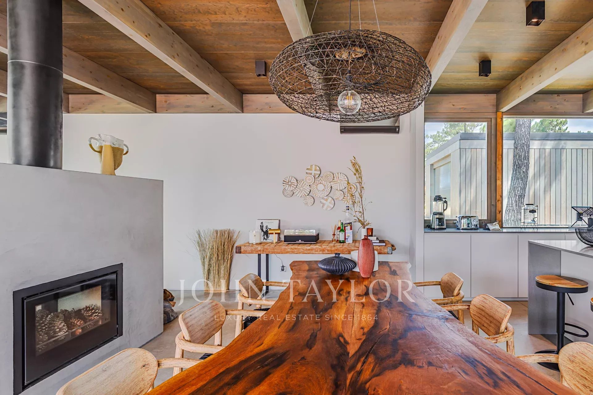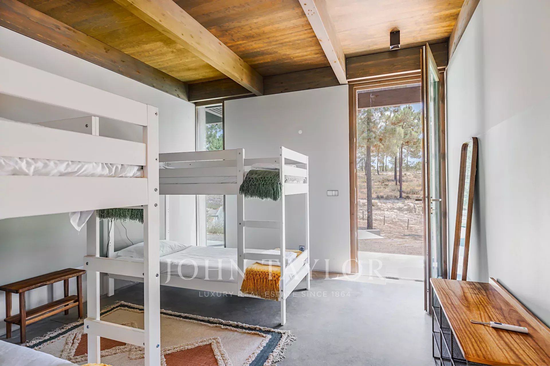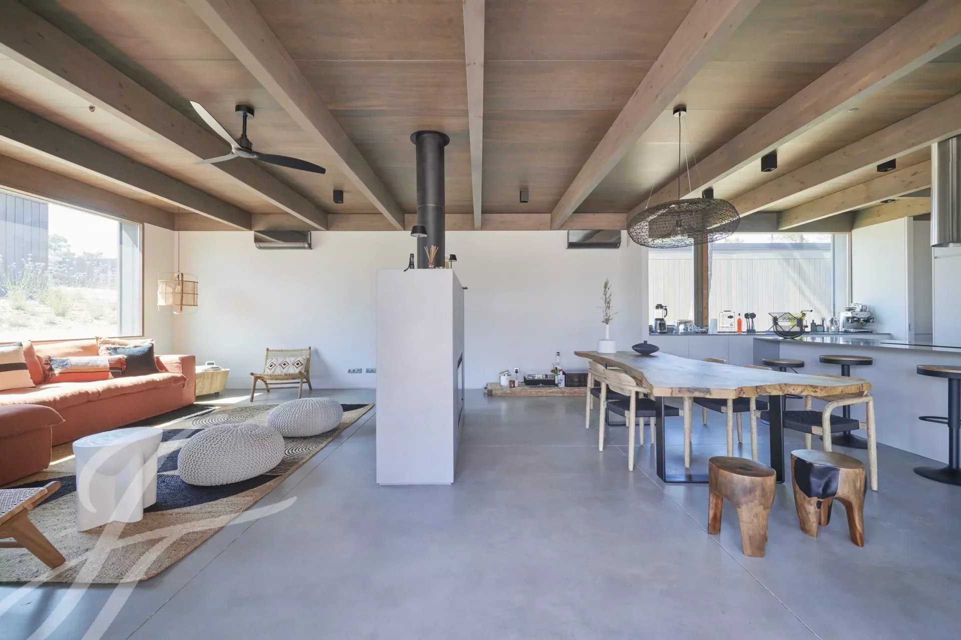 The villa has an excellent swimming pool with a south-facing deck where you can enjoy the view of the pine forest and the Comporta sun. Continuing from the pool you can walk to the fire pit where you can enjoy the surrounding nature in a relaxed and sophisticated atmosphere.