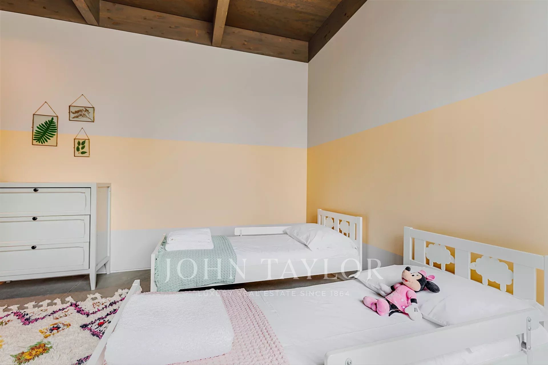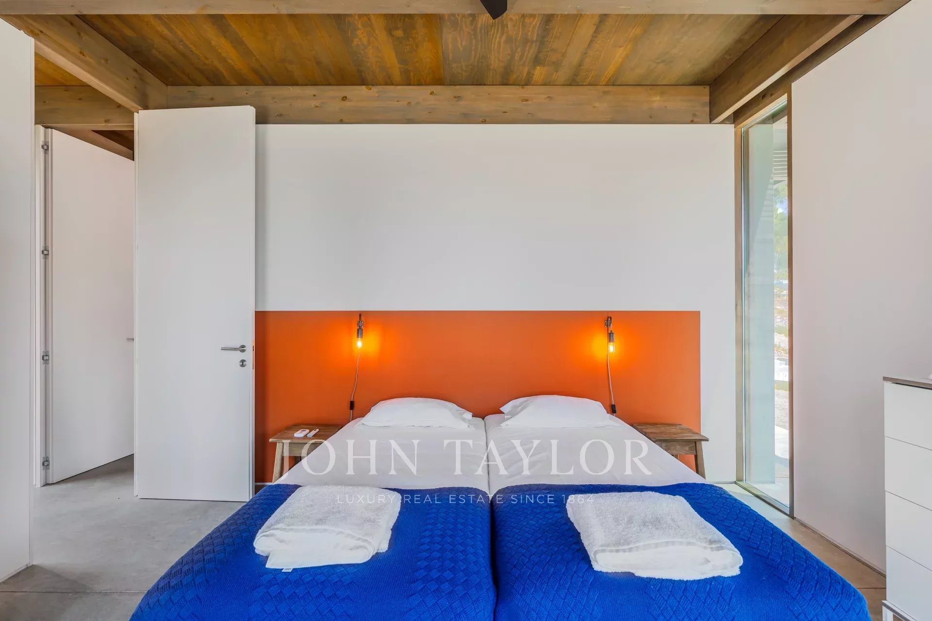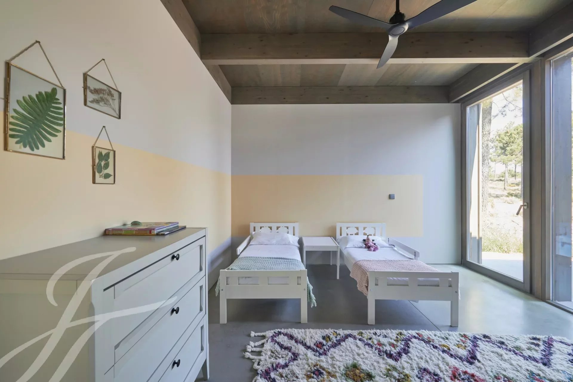 The main house V2 has a large living/dining room with an open kitchen, a suite and a children's bedroom, supported by a bathroom. In house V1 you'll find a living room with an integrated kitchen, a double bedroom and a bathroom. The guest house has a bedroom with a double bed and a bedroom with 4 bunk beds with the support of a bathroom.