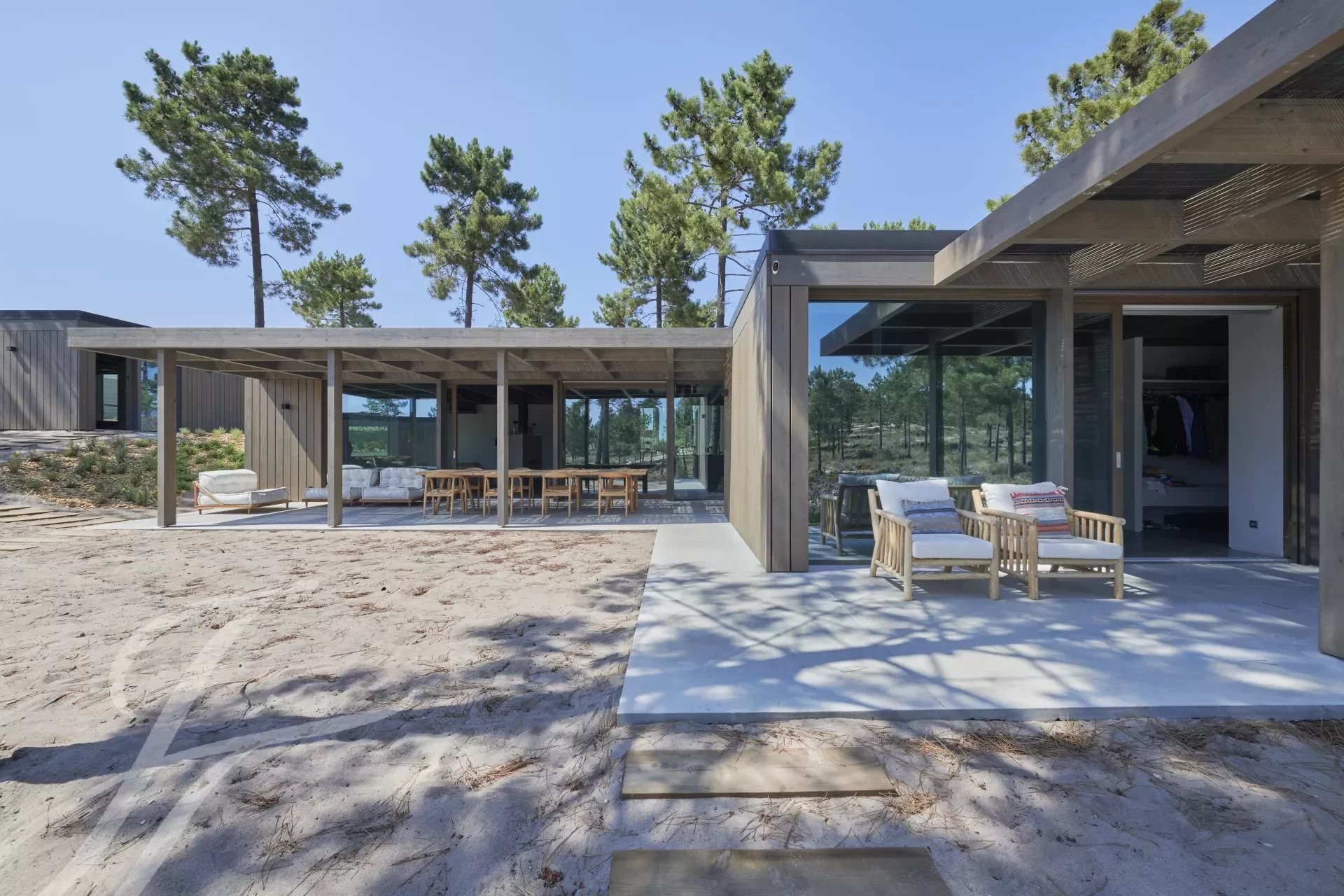 Inserted in the luxury condominium "Comporta Retreat", is the Comporta Serenity Villa, consisting of 3 houses, designed to provide all the comfort in a luxurious environment and at the same time relaxed in the middle of nature, perfect for an extended family or a group of friends with children.