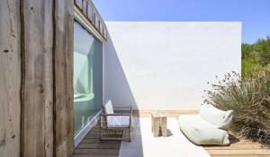 Surrounded by a landscape of pine forest and white sand dunes, just a few minutes from the iconic Pego Beach, Casa Ammos seamlessly blends contemporary design and elements of the local style, providing both comfort and sophistication,
