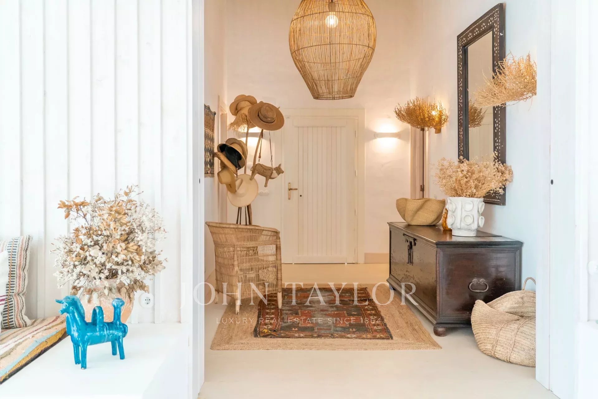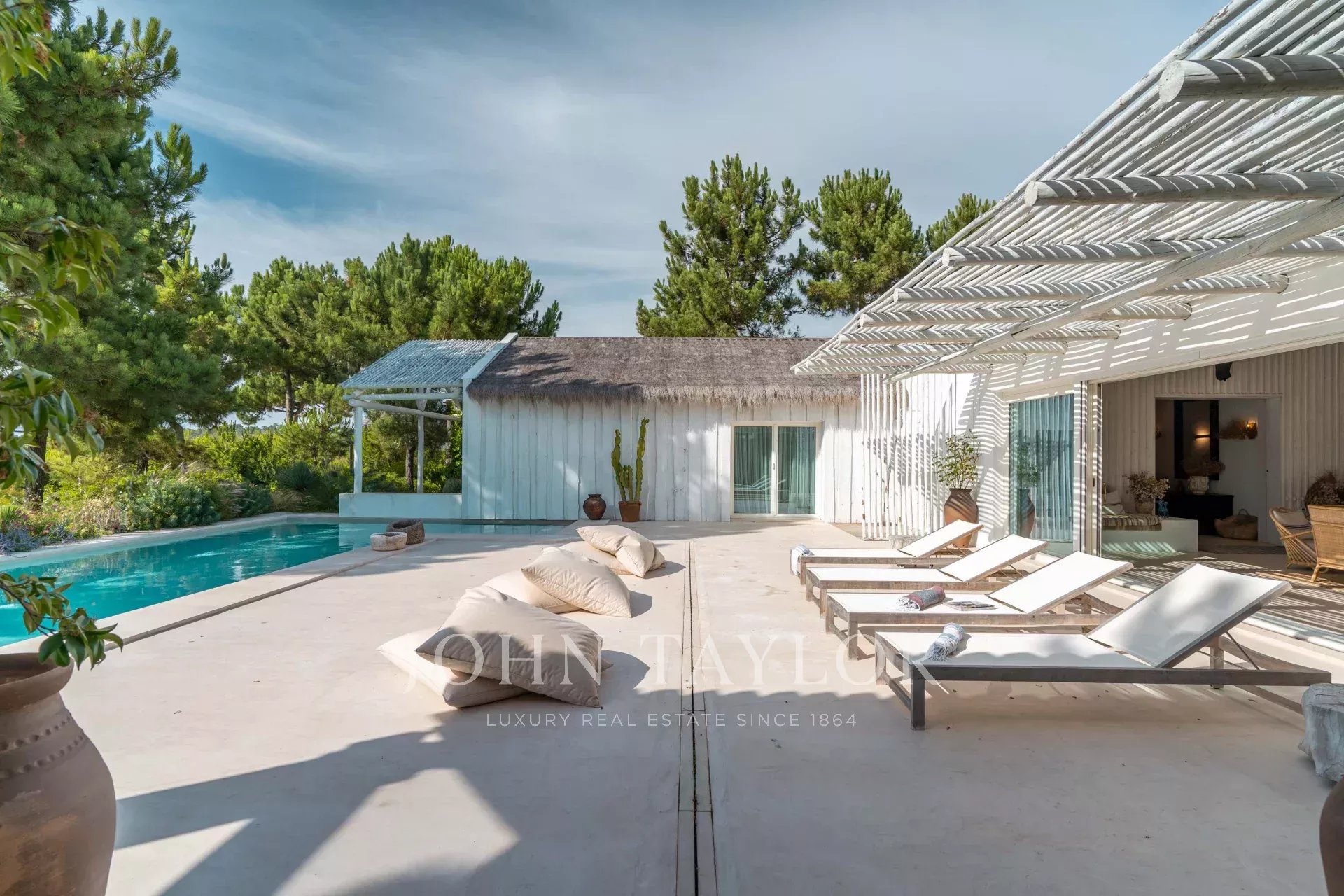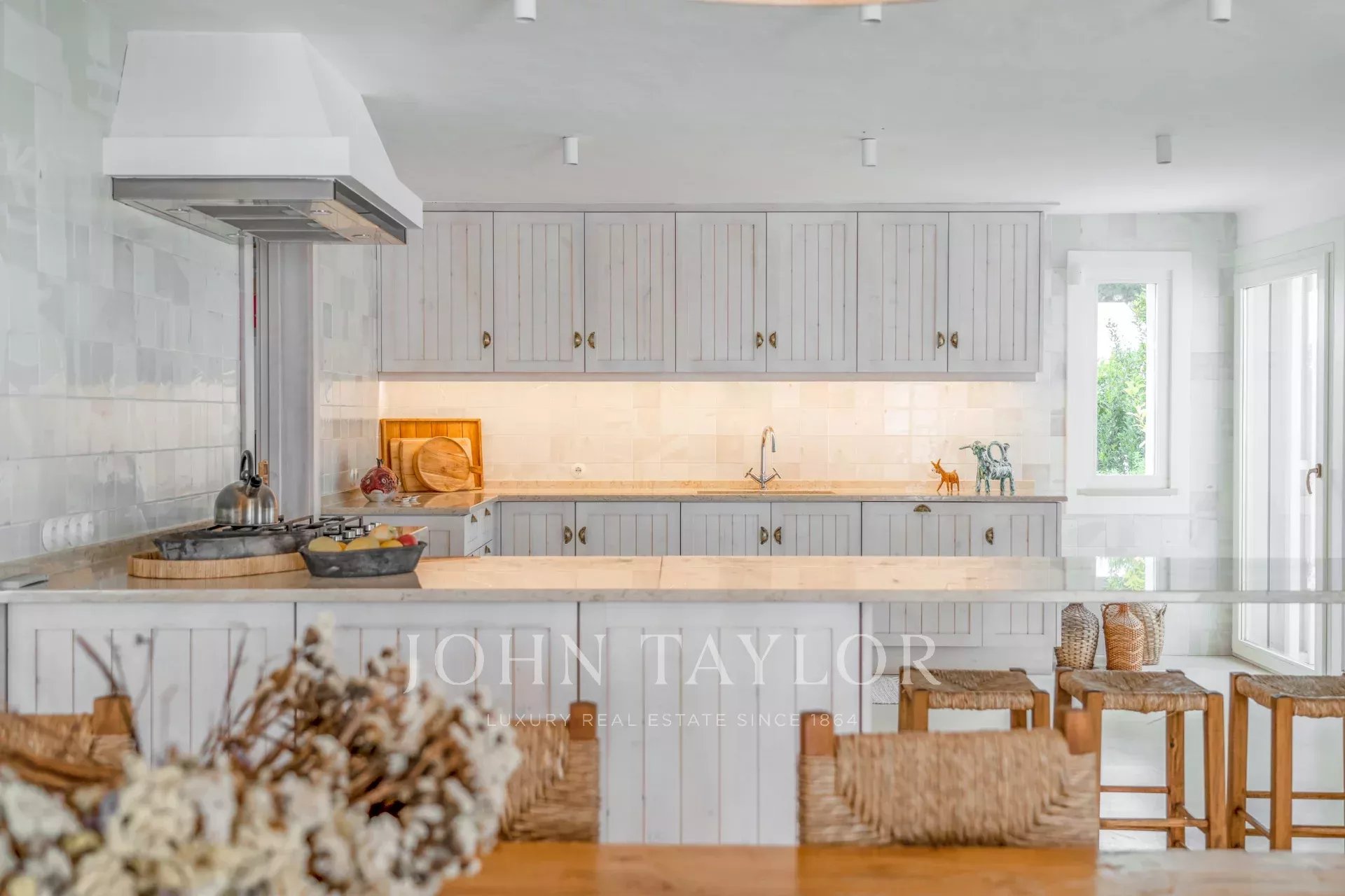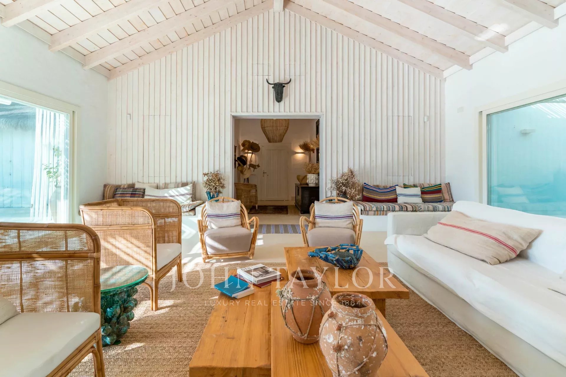 The interior spaces extend naturally to the outside, in a welcoming and relaxed atmosphere. The fully equipped kitchen opens onto the porch and outdoor dining area, ideal for long summer dinners.