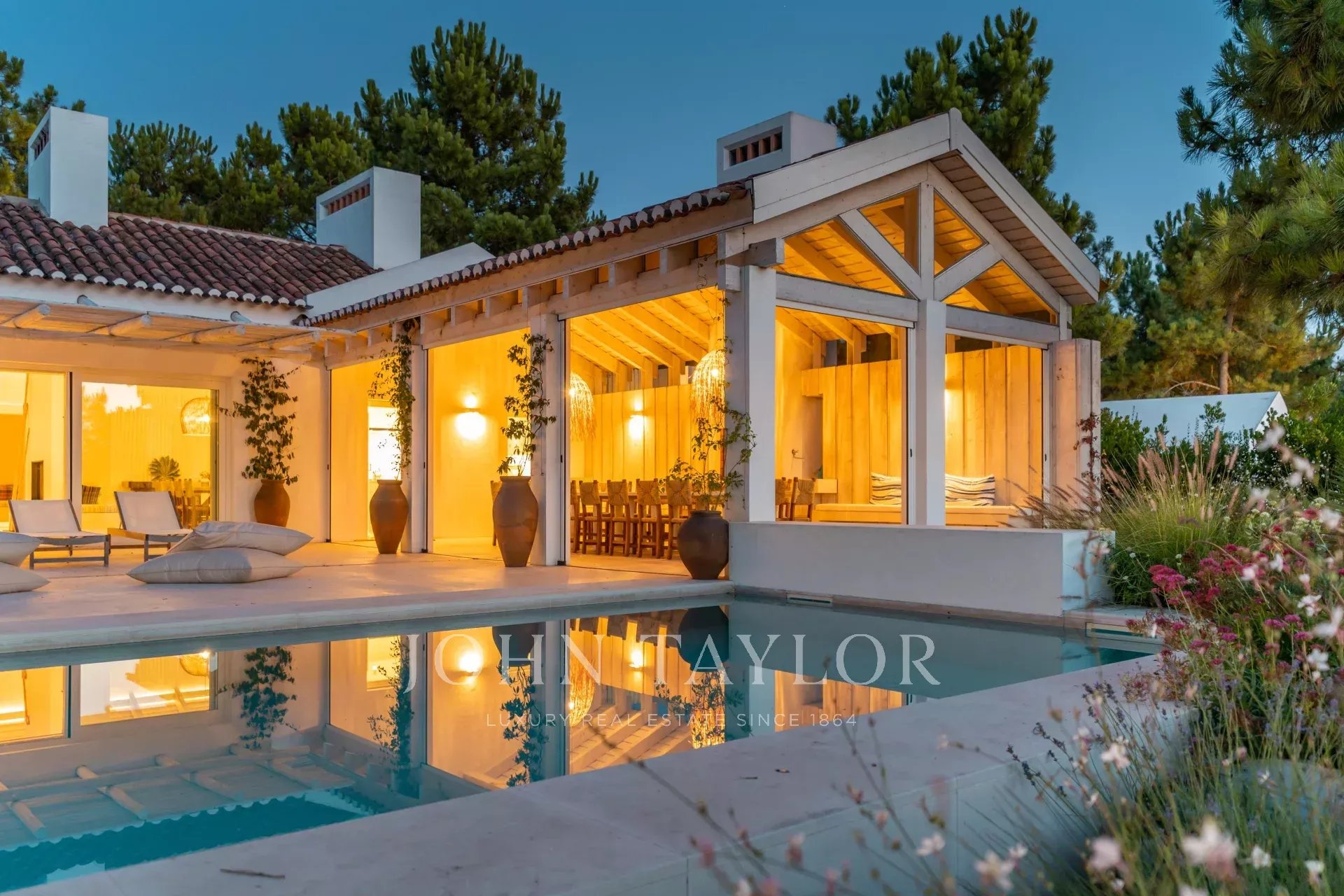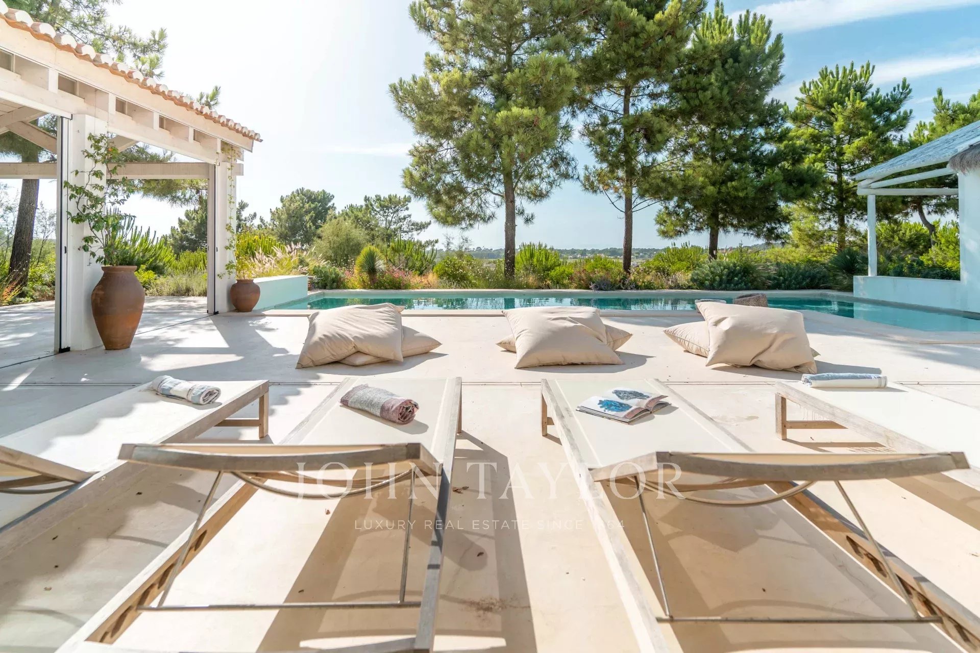 The enclosed garden ensures complete privacy and blends harmoniously with the landscape. The swimming pool and terrace with lounge area invite you to enjoy the tranquillity of the late afternoon.