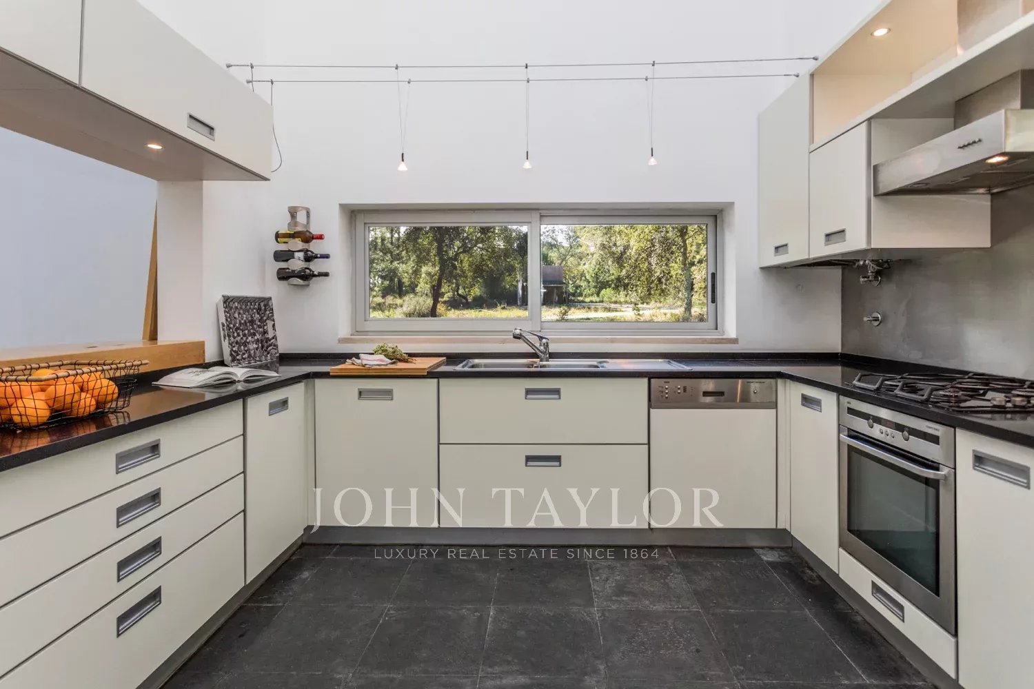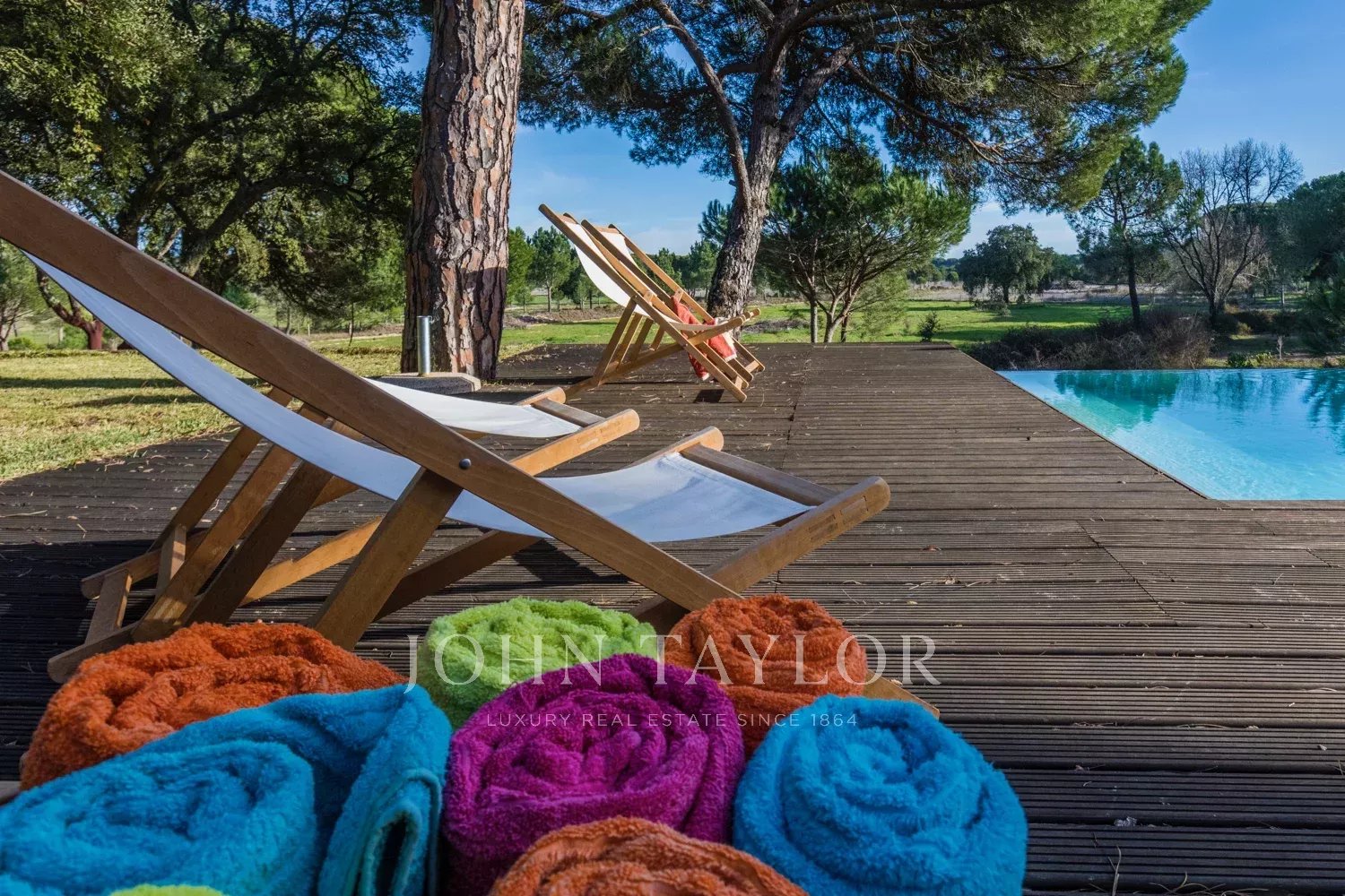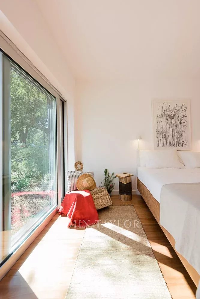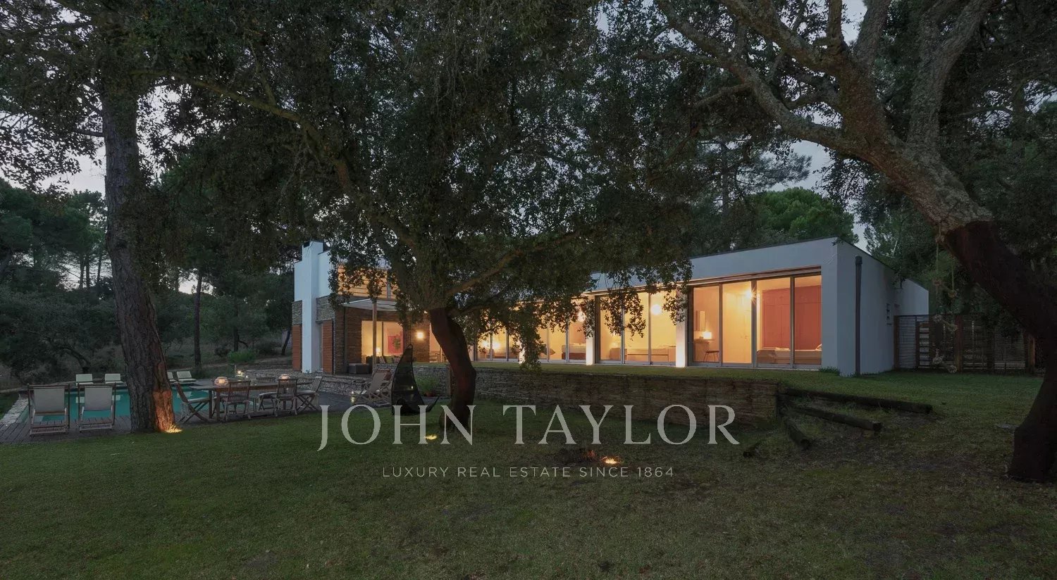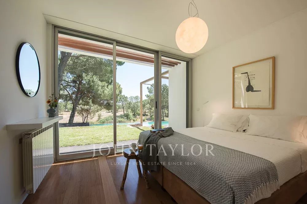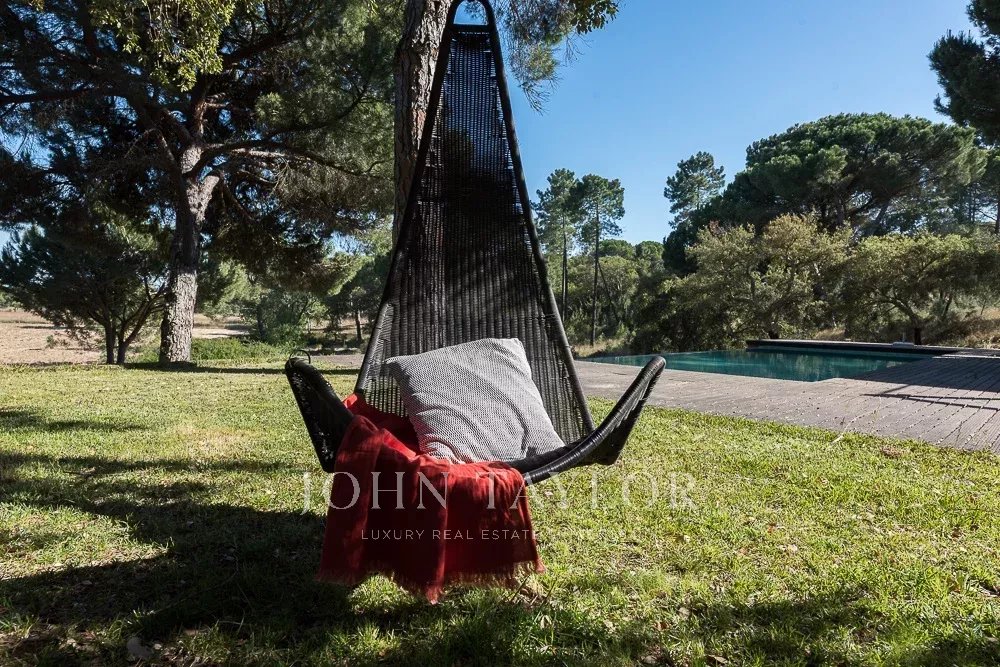 Its interior is cozy, with neutral tones and contemporary furnishings that enhance the feeling of tranquility, consisting of five bedrooms, two double bedrooms en suite, one double bedroom and two single bedrooms, with a fully equipped kitchen, integrated living room and dining room. Outside there is a pleasant deck with a large table perfect for enjoying a pleasant family meal, a swimming pool and various green spaces where you can enjoy contact with nature, surrounded by cork oaks and pine trees.