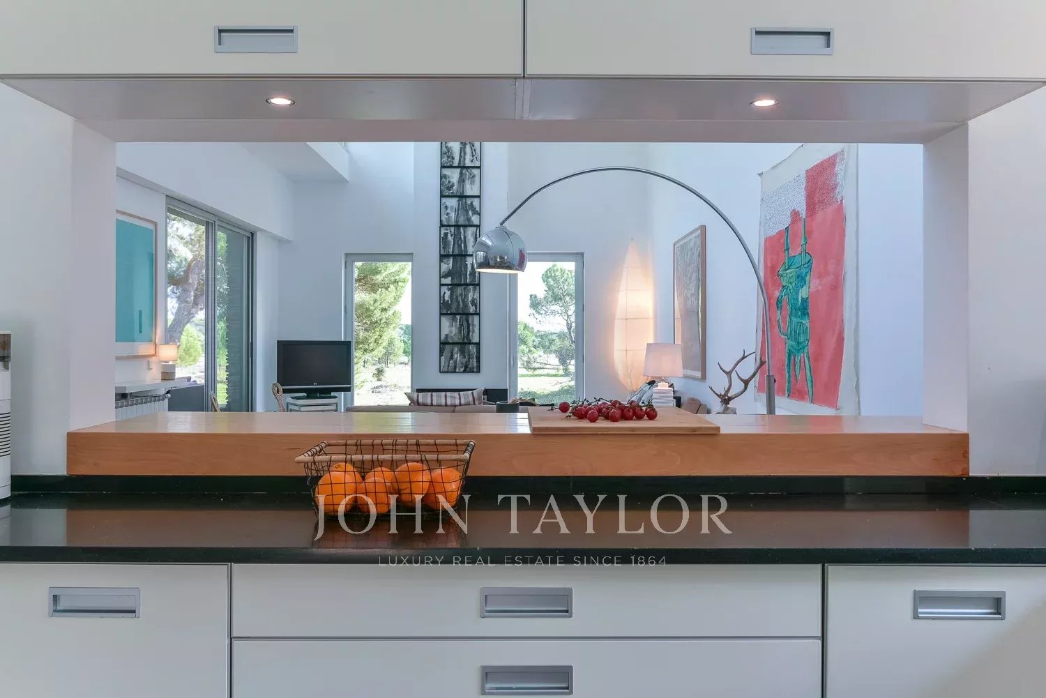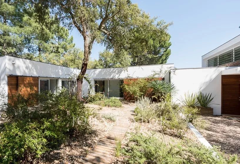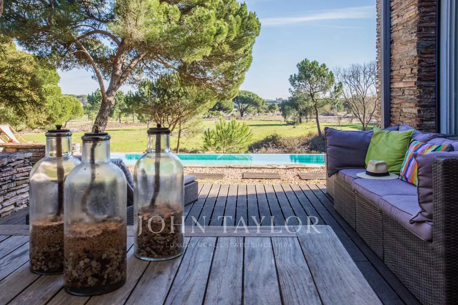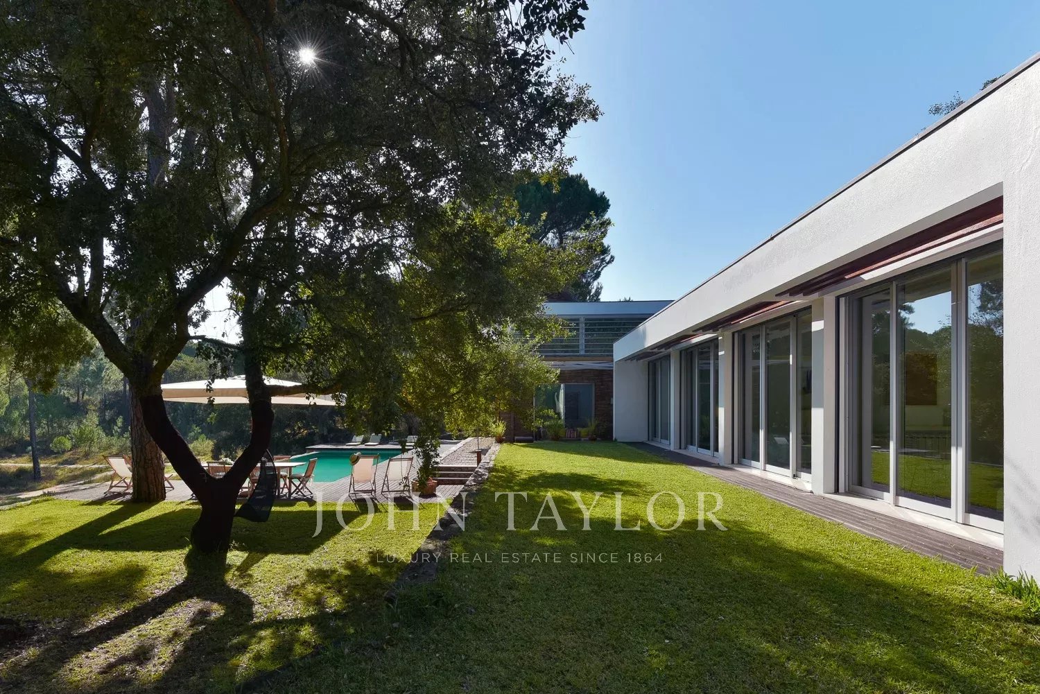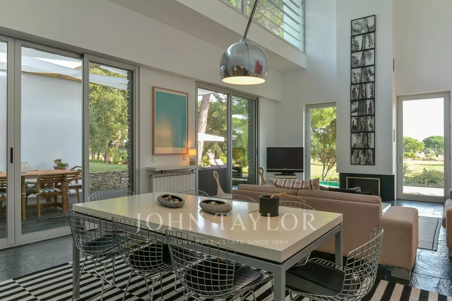 Its interior is cozy, with neutral tones and contemporary furnishings that enhance the feeling of tranquility, consisting of five bedrooms, two double bedrooms en suite, one double bedroom and two single bedrooms, with a fully equipped kitchen, integrated living room and dining room. Outside there is a pleasant deck with a large table perfect for enjoying a pleasant family meal, a swimming pool and various green spaces where you can enjoy contact with nature, surrounded by cork oaks and pine trees.