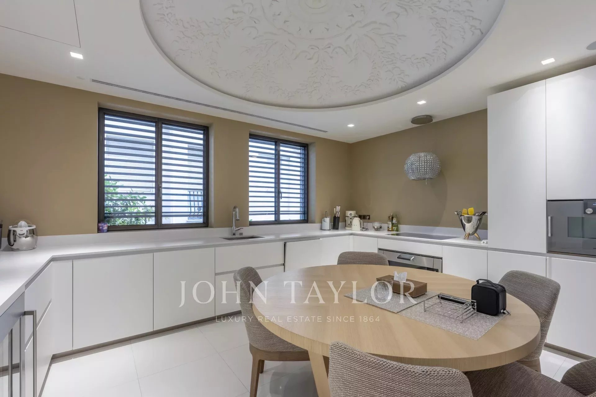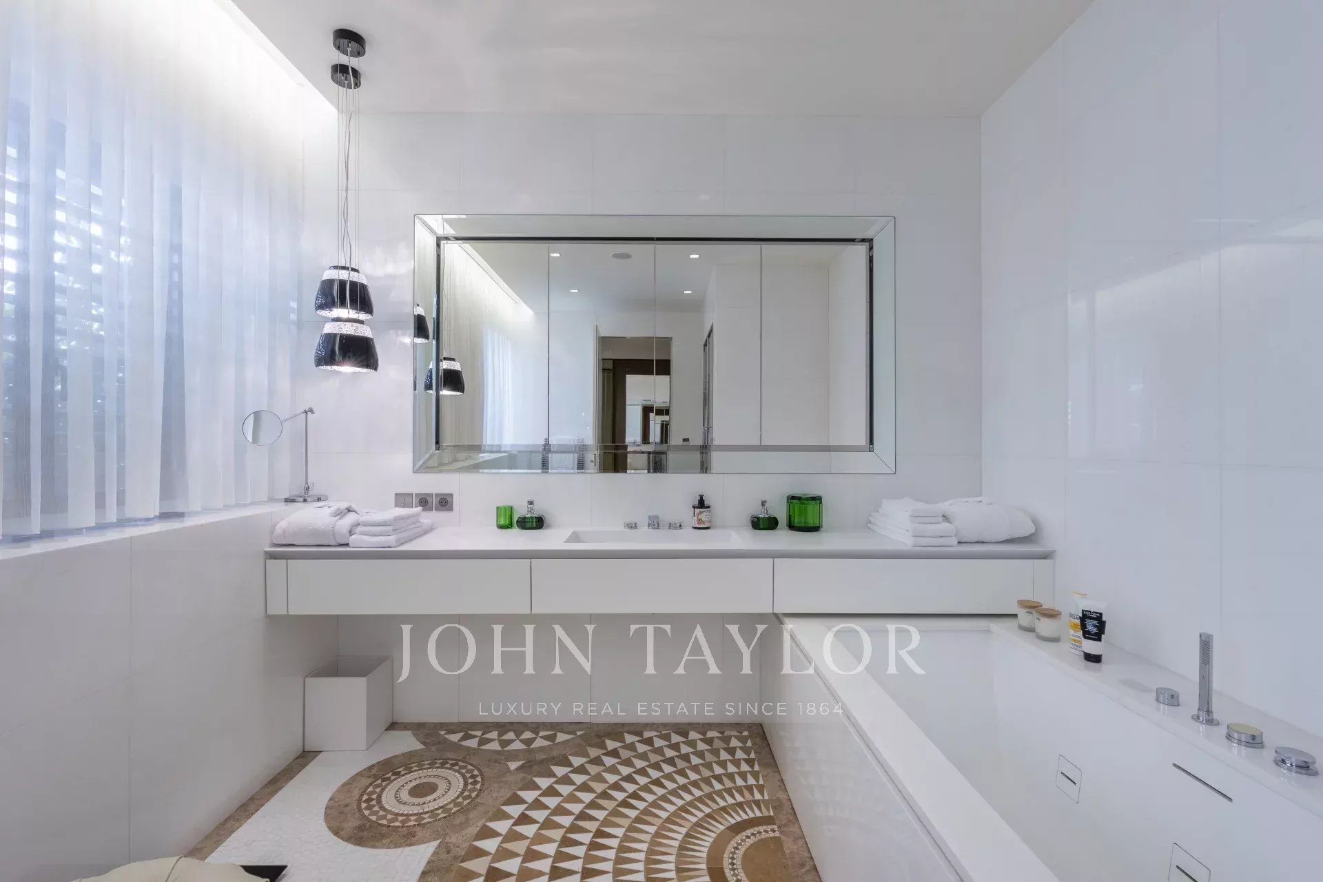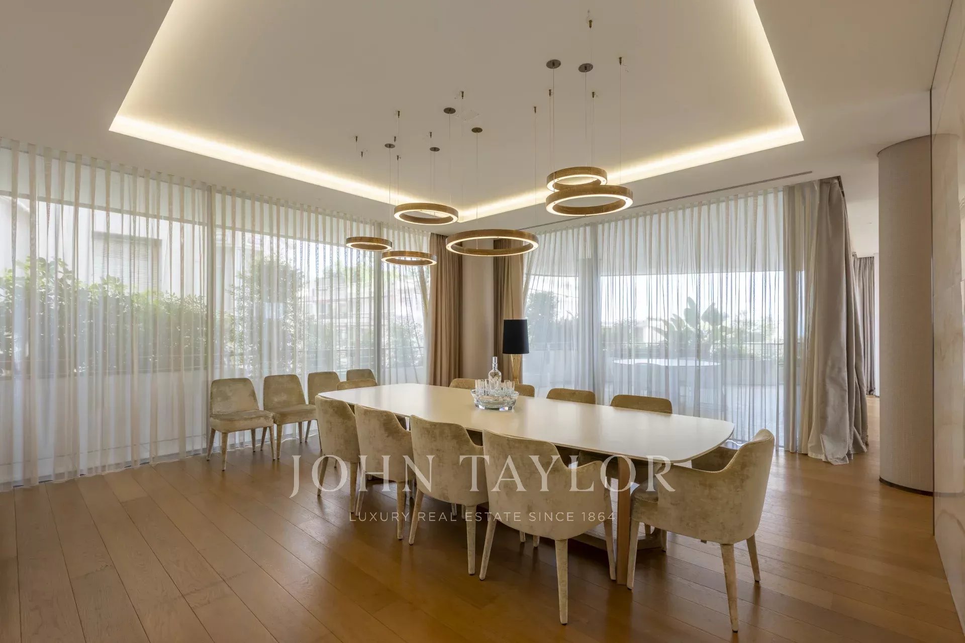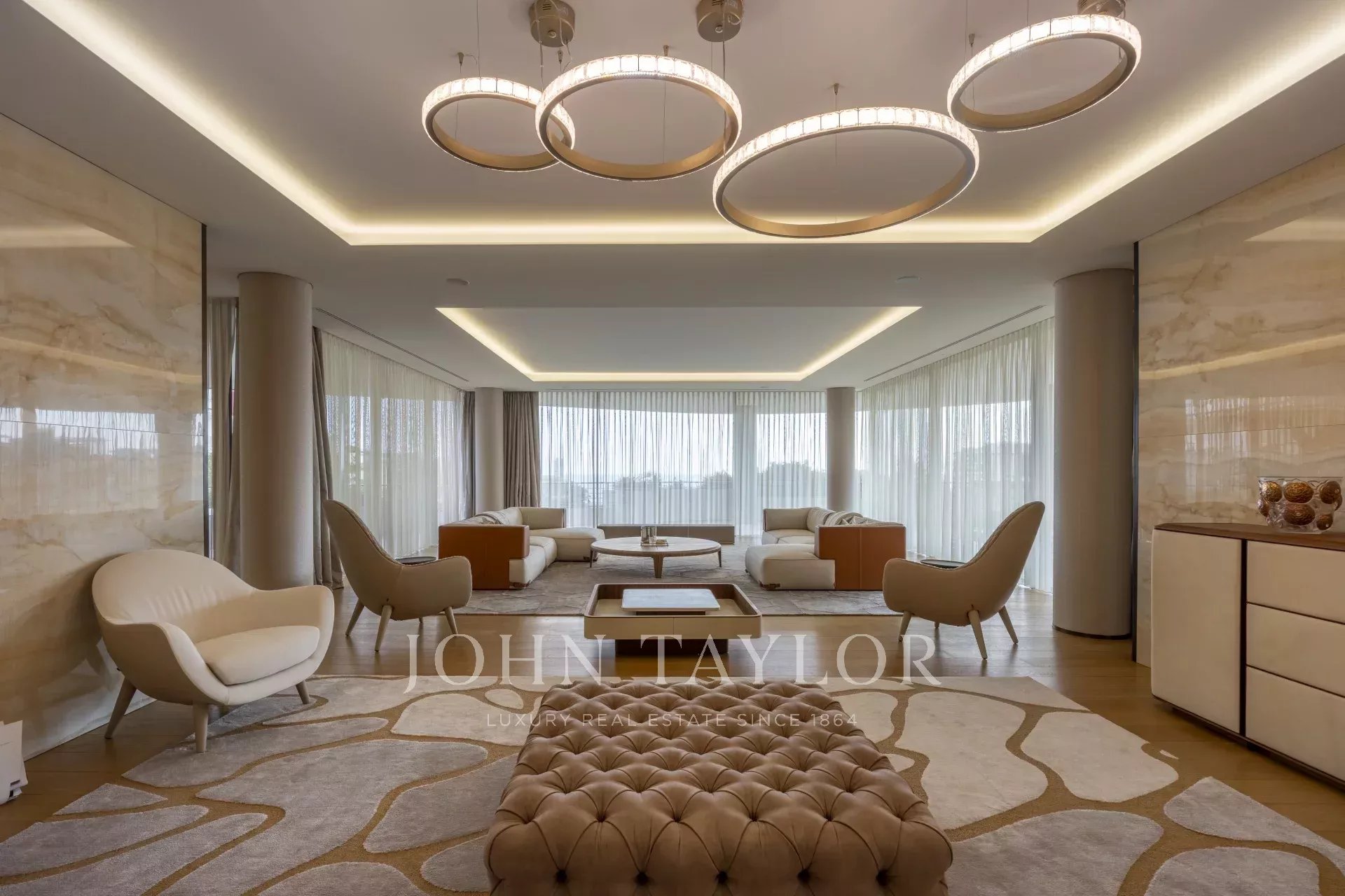 Comprising seven main rooms, the apartment stands out for its spacious terrace, which provides a spectacular perspective over the gardens and surrounding landscape. The result is a harmonious living space where prestige, comfort, and privacy blend seamlessly.