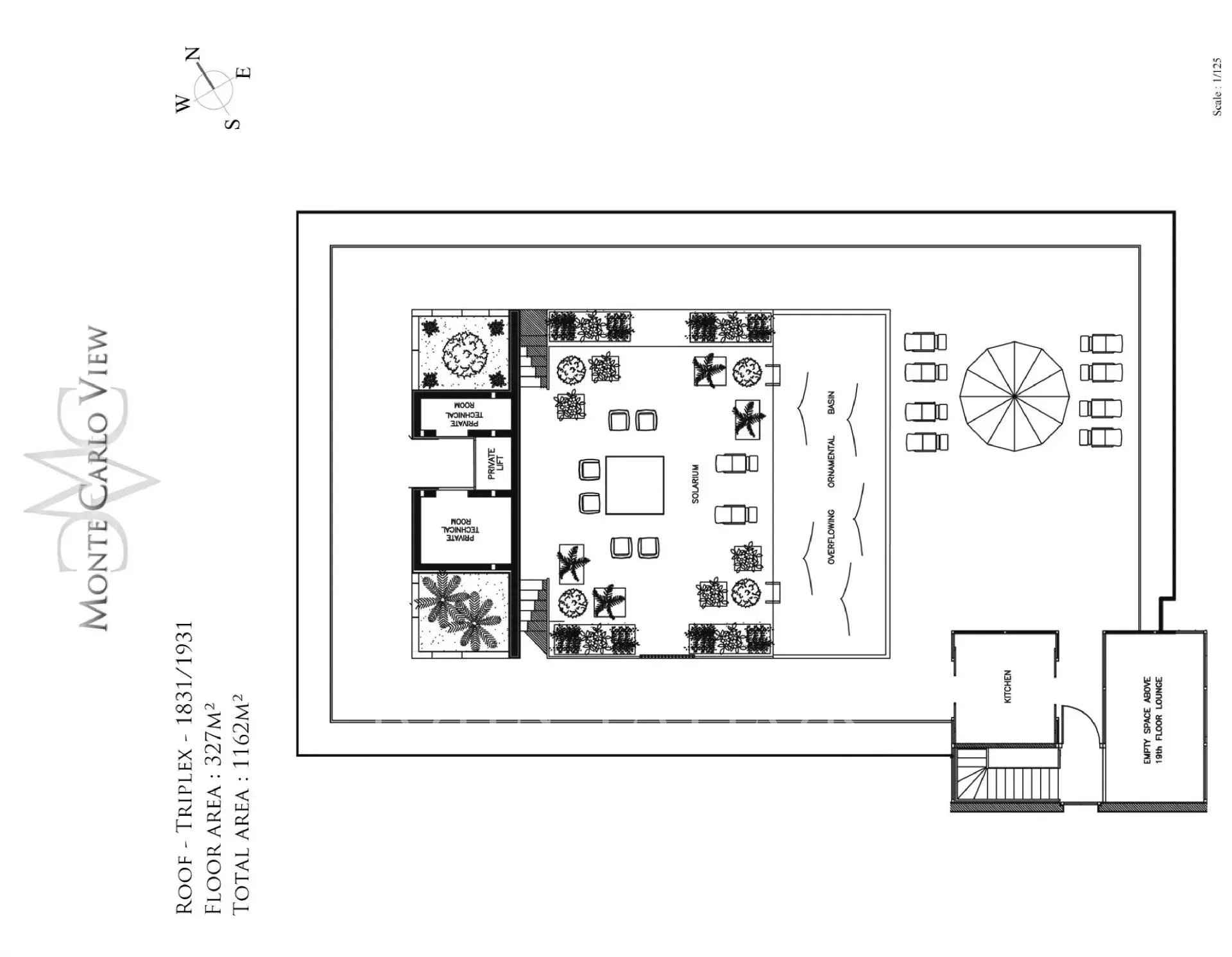 Roof terrace area: 327.76m²