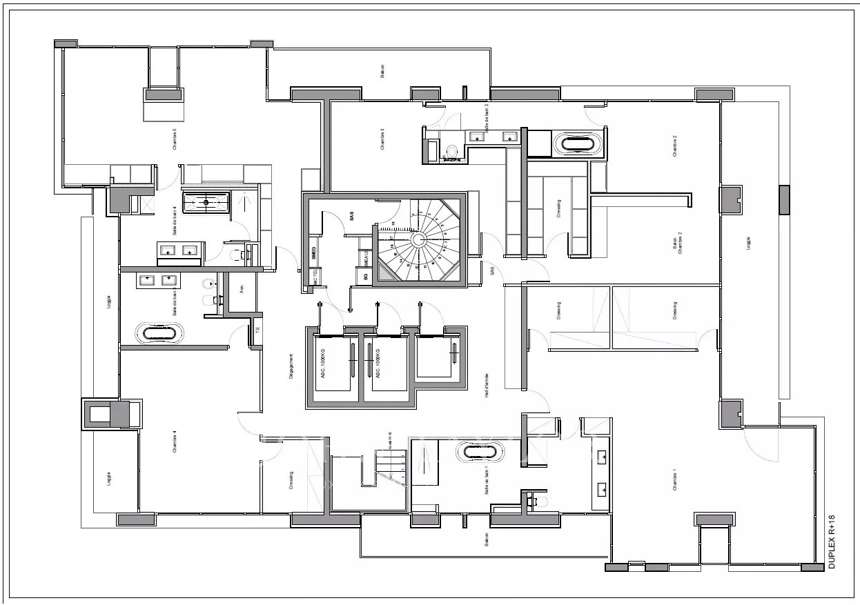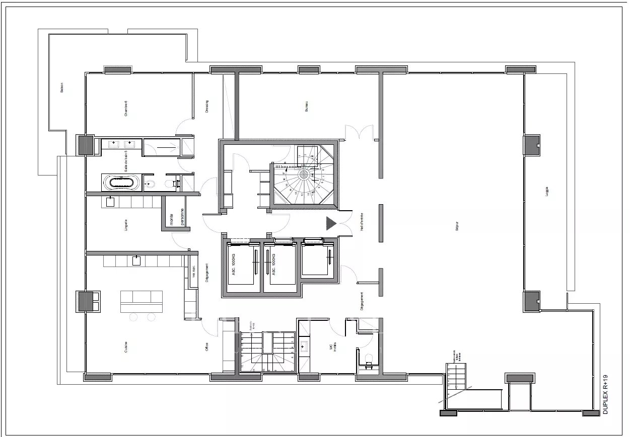 Sumptuous 7-room triplex flat located on the 18th, 19th and 20th floors.