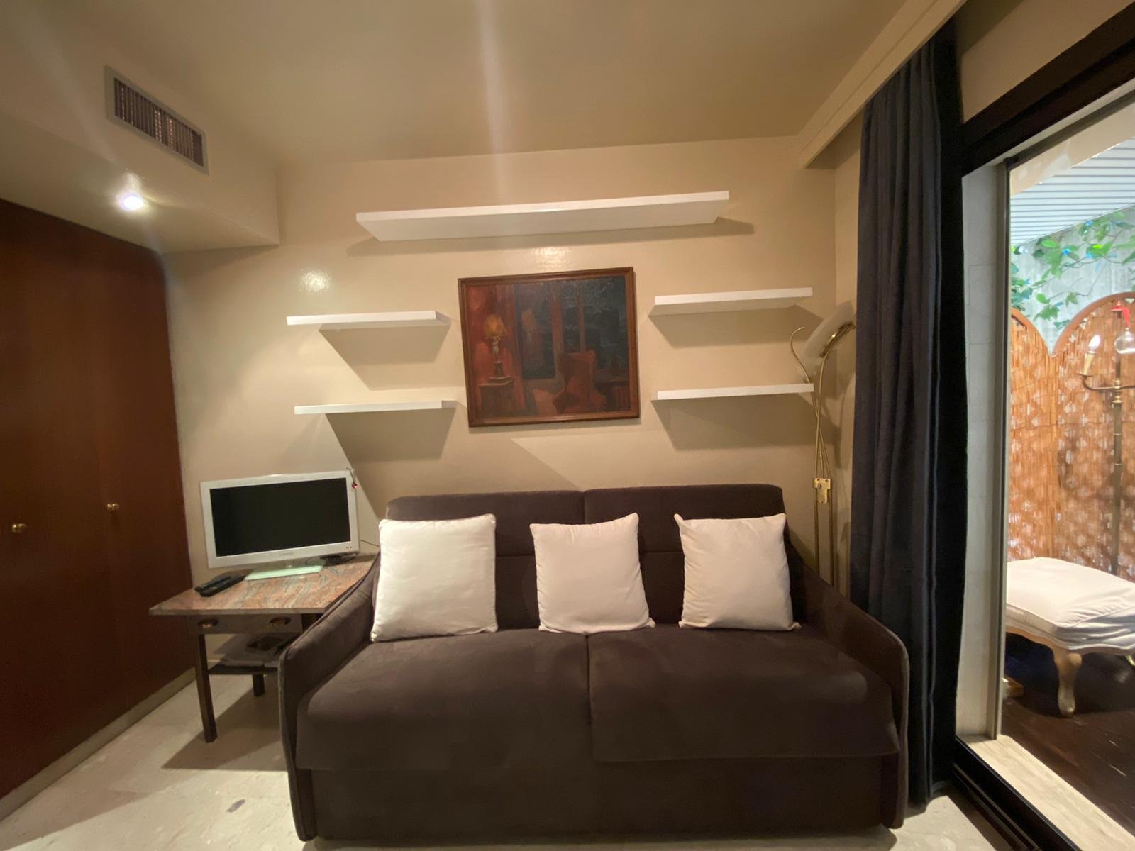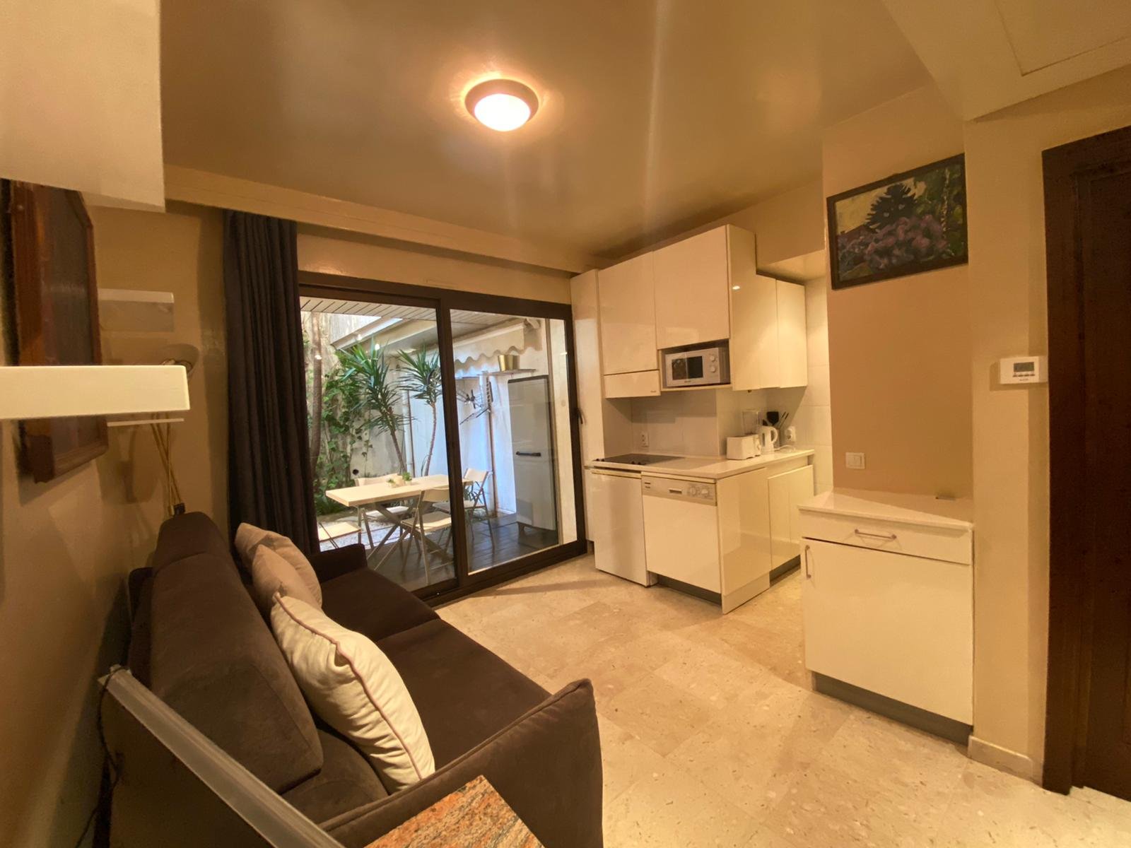For rent in MONACO Moneghetti sector in LE BEVERLY PALACE, block A, luxury residence furnished studio (24 m²) with private fenced garden (17 m²).