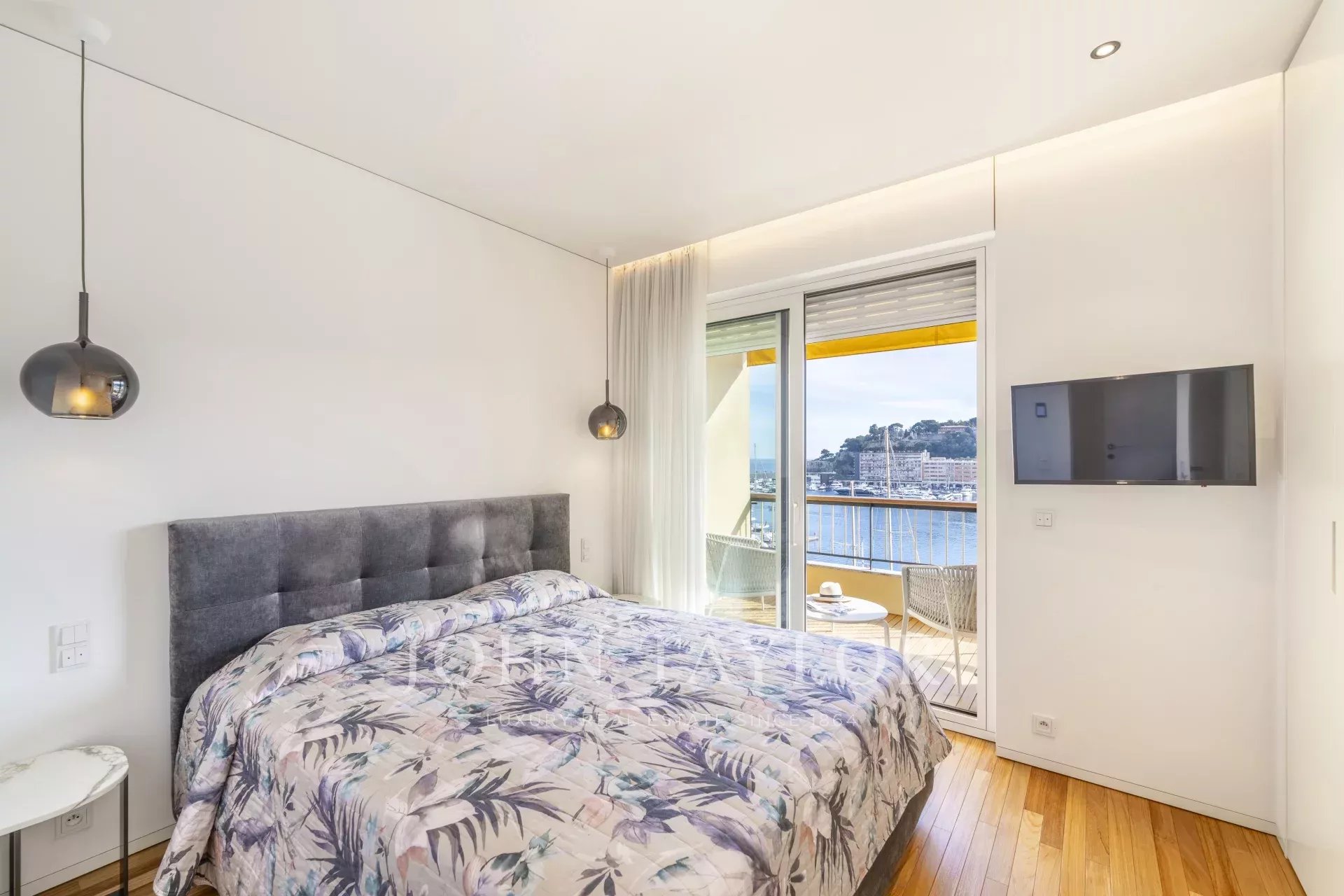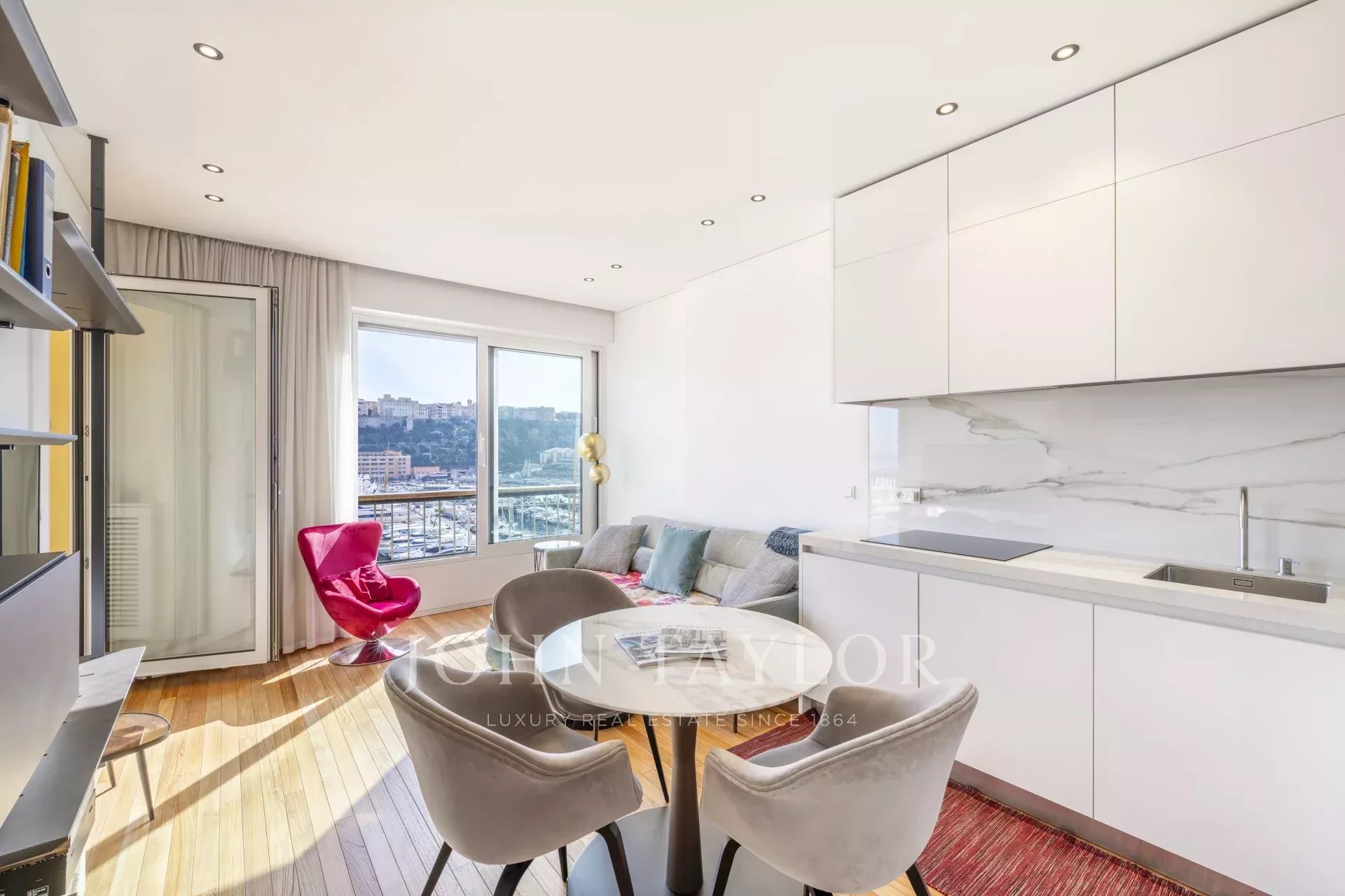 This superb 2-room apartment has been completely renovated and furnished with quality materials, also benefiting from an integrated home automation system. It consists of an entrance with cupboards, a living room with an equipped kitchen opening onto a beautiful loggia offering a panoramic view of Port Hercule, the Formula 1 circuit and the Rock. The sleeping area includes a full shower room, numerous storage spaces and a bedroom opening onto the loggia.