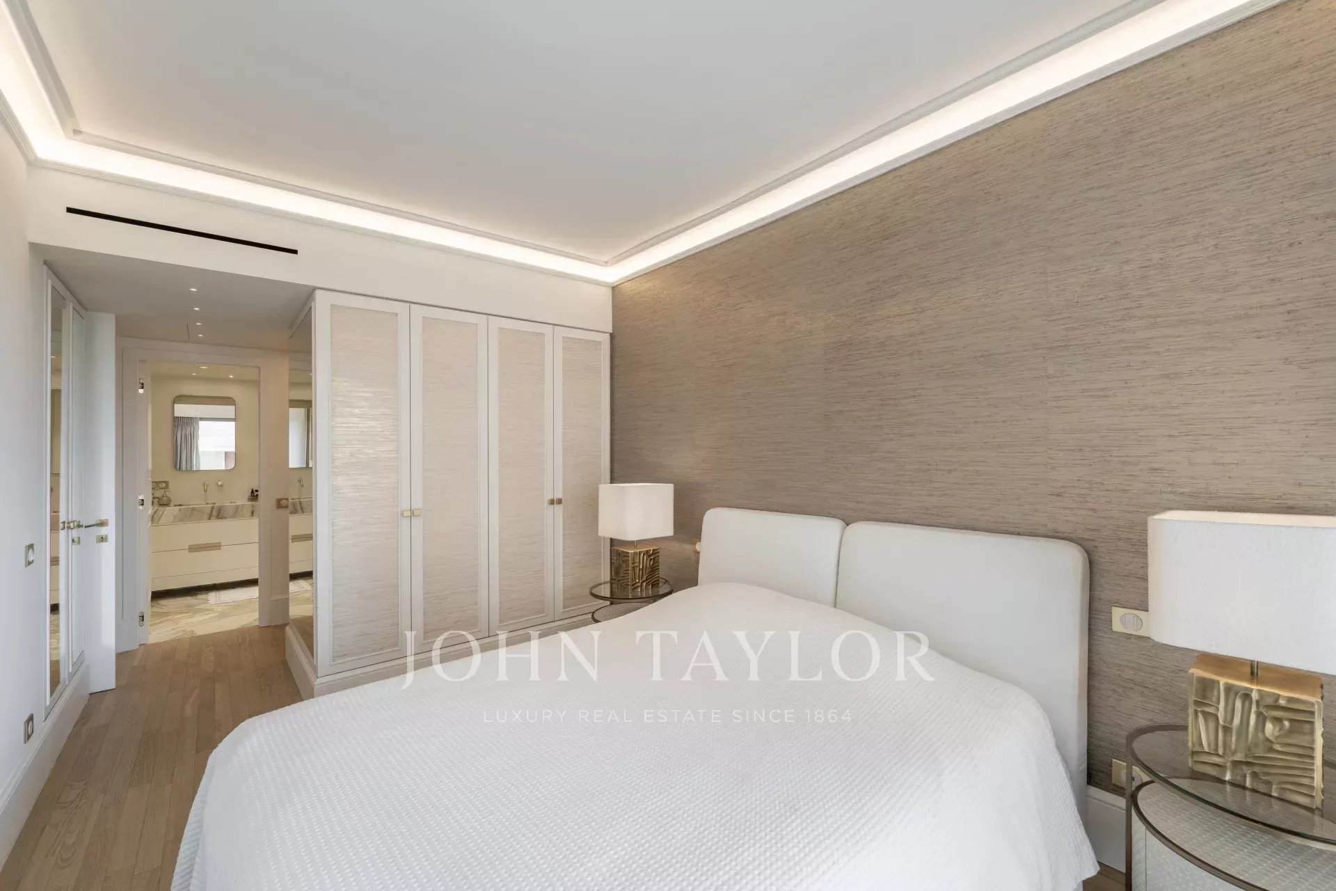 A master bedroom with bathroom and dressing room.