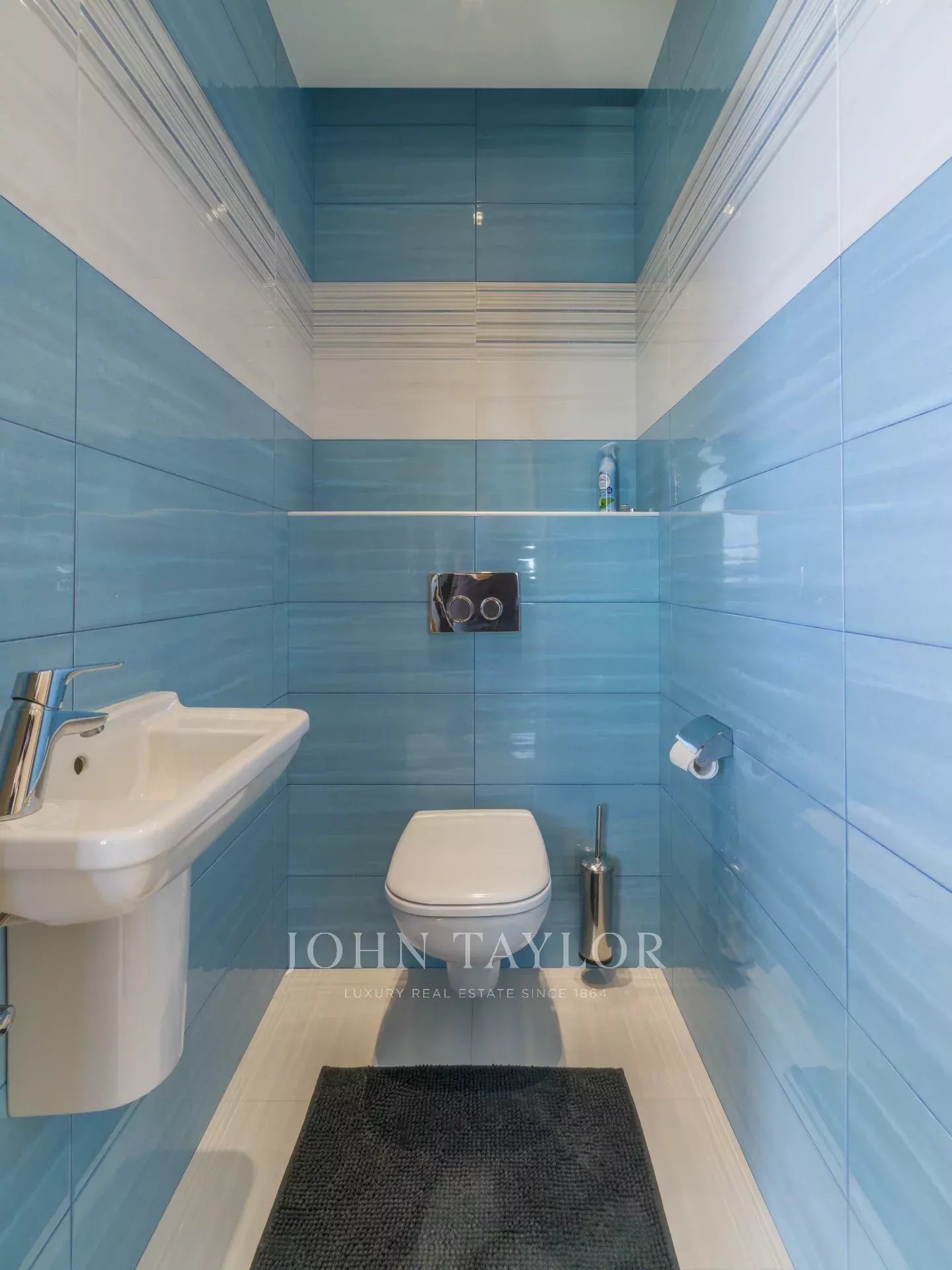 The apartment comprises a kitchen opening onto the living room, a guest toilet and an en suite bedroom.