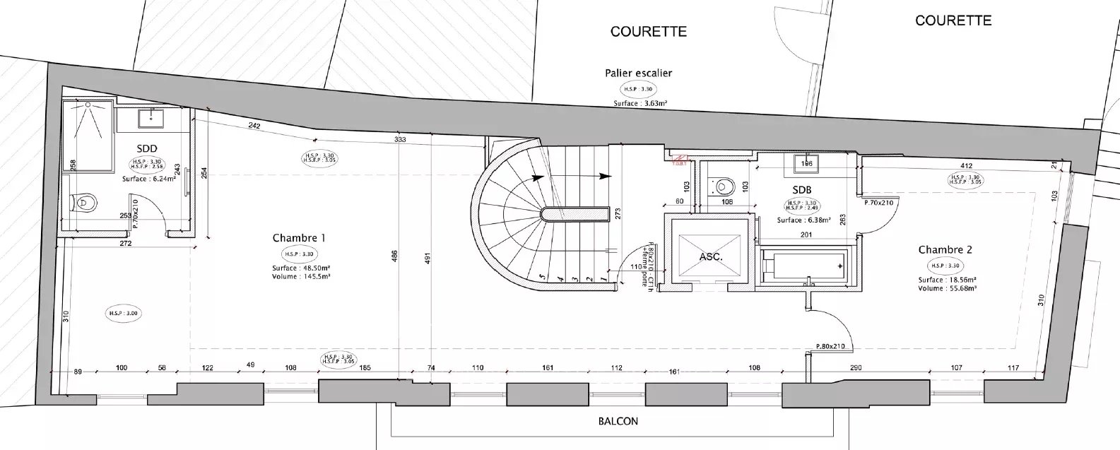 - 3rd floor: large double dressing room, with a room that can be used as a bedroom or an office.