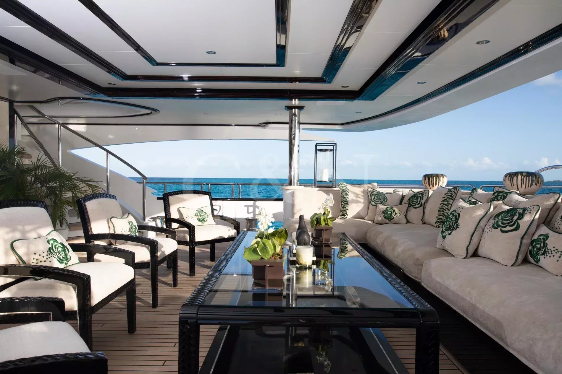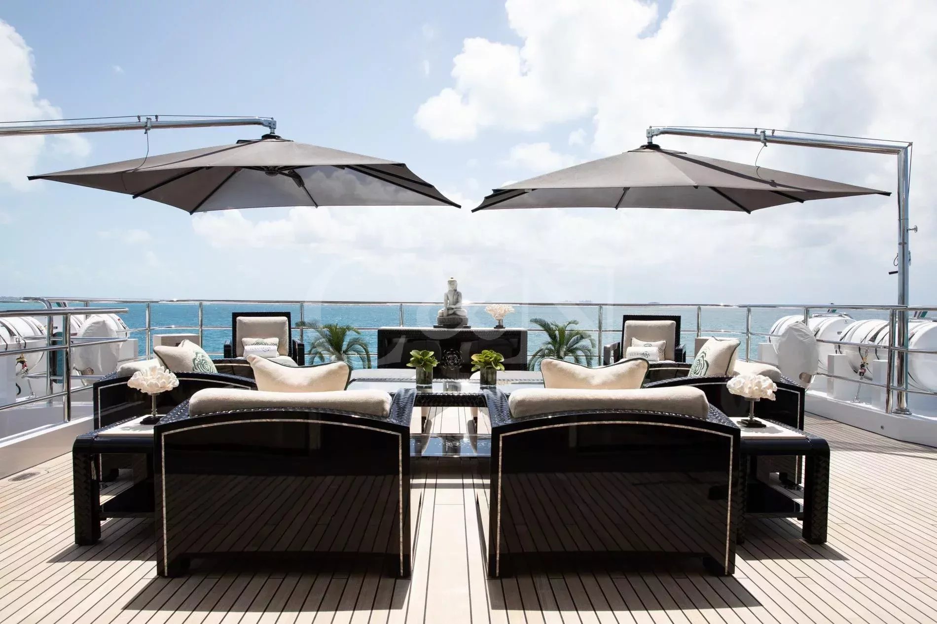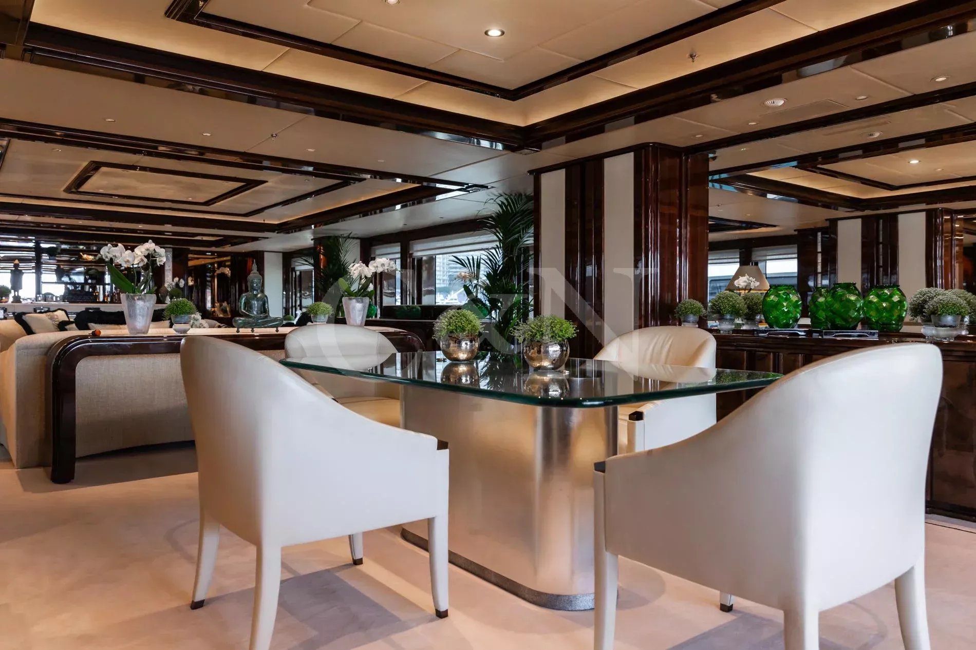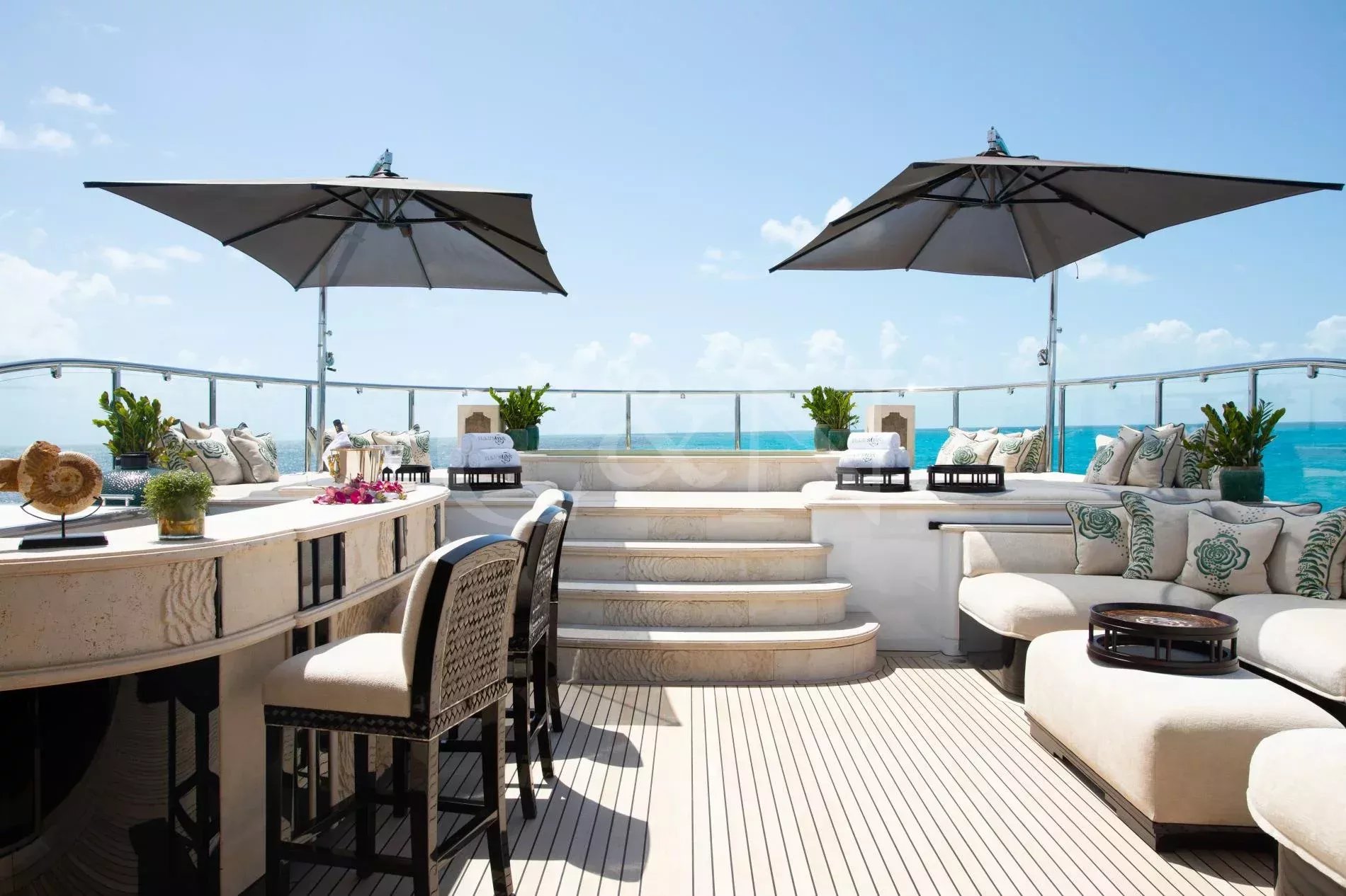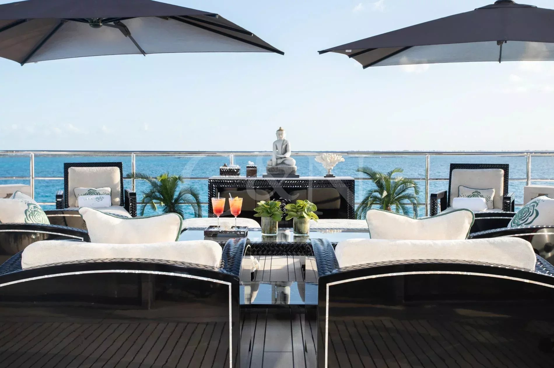Illusion V is elegant and contemporary, a masterpiece from the celebrated design duo Green and Mingarelli and designed to represent the epitome of elegance. Her contemporary interior incorporates exotic materials such as walnut, onyx, Lalique crystal, parchment and silks, all of which create an inviting backdrop to the stunning vistas viewed from the windows.Built by the famous Italian shipyard, Benetti, and launched in 2014, this 58m superyacht is a truly magnificent charter vessel, with many desirable lifestyle features, such as her top deck Jacuzzi which is surrounded by cushioned sunpads.Illusion V can accommodate up to 12 guests across her six suites. The expansive master cabin has its own private cinema room, and there is a full-beam VIP suite, as well as a further four fantastically-appointed guest suites.Illusion V offers an abundance of dining, entertainment and relaxation areas, all capable of delivering a different ambience for social needs. She also has a full bar and beach area on her lower deck and utilises the latest technology in stability and noise reduction.In all areas, Illusion V's spaces have been carefully planned for optimum privacy and comfort. The sundeck is perfectly set up for at-sea entertaining and plays host to a large Jacuzzi, free-standing sun loungers, a bar and a BBQ.With such a long list of artfully crafted features, as well as an incomparable selection of water toys comprising a jetsurf board, snuba and scuba gear, fishing equipment and inflatables, there is no arguing that Illusion V offers the finest in barefoot luxury. Not for charter to US residents while in US waters.