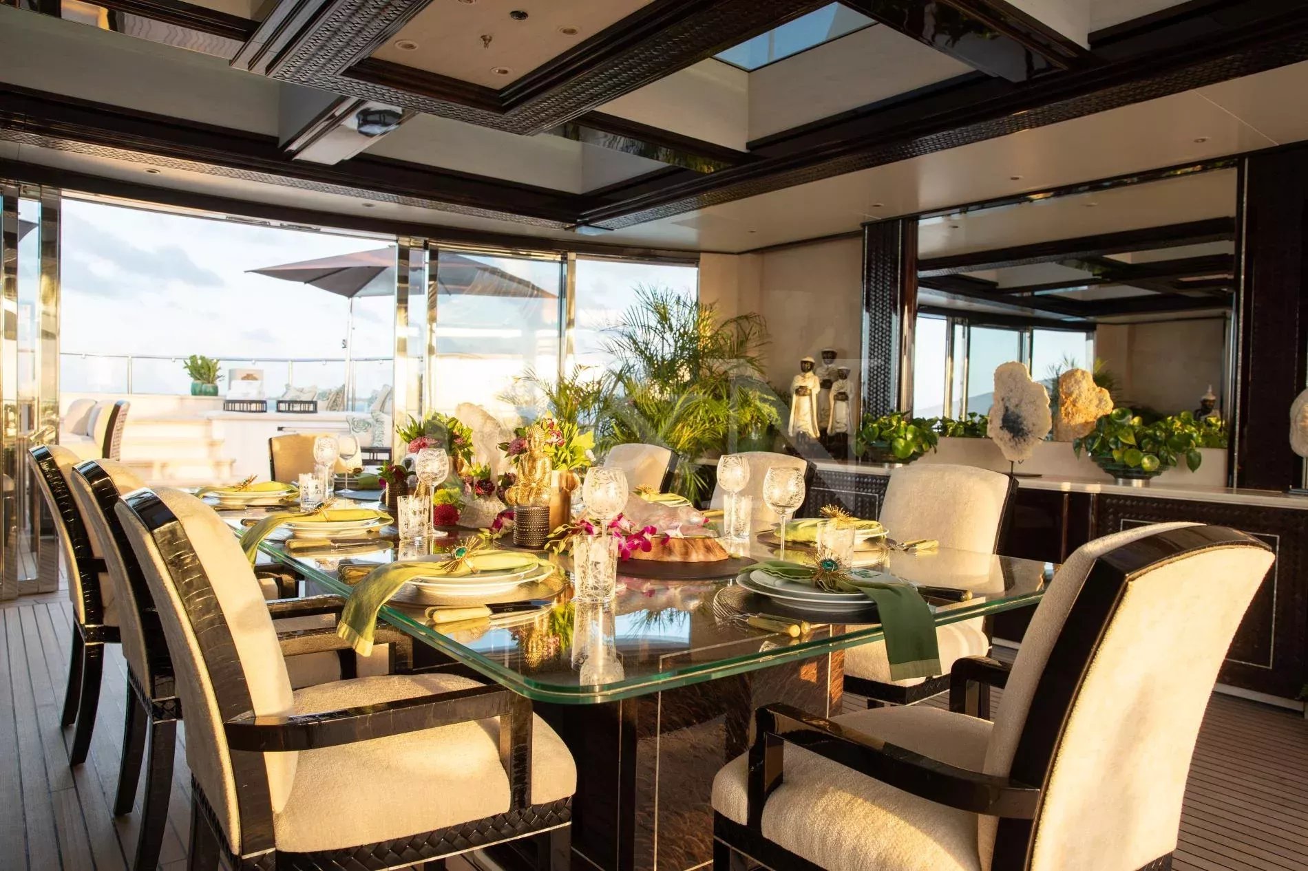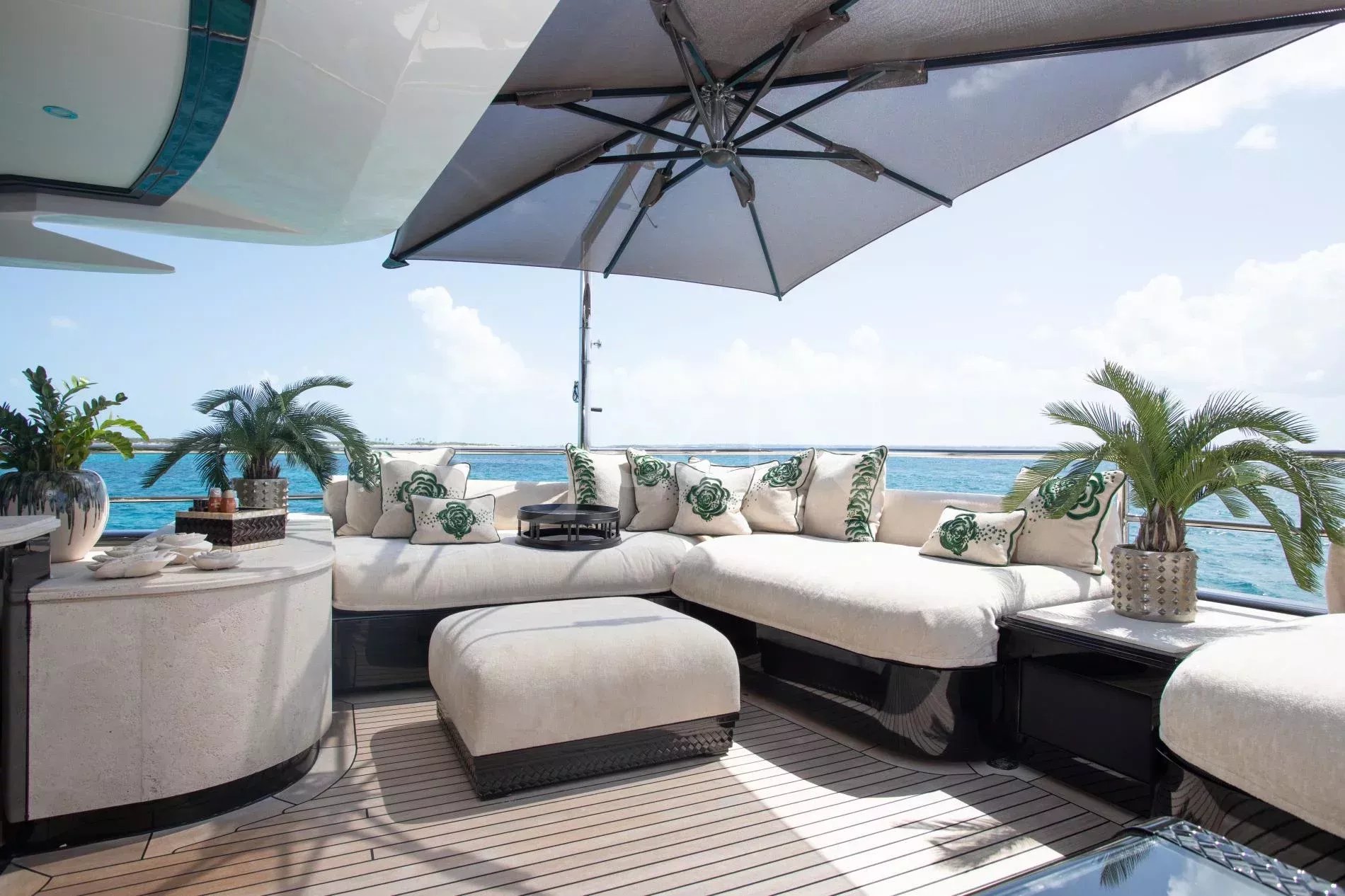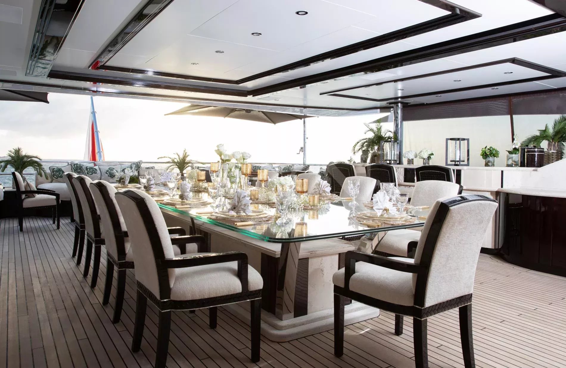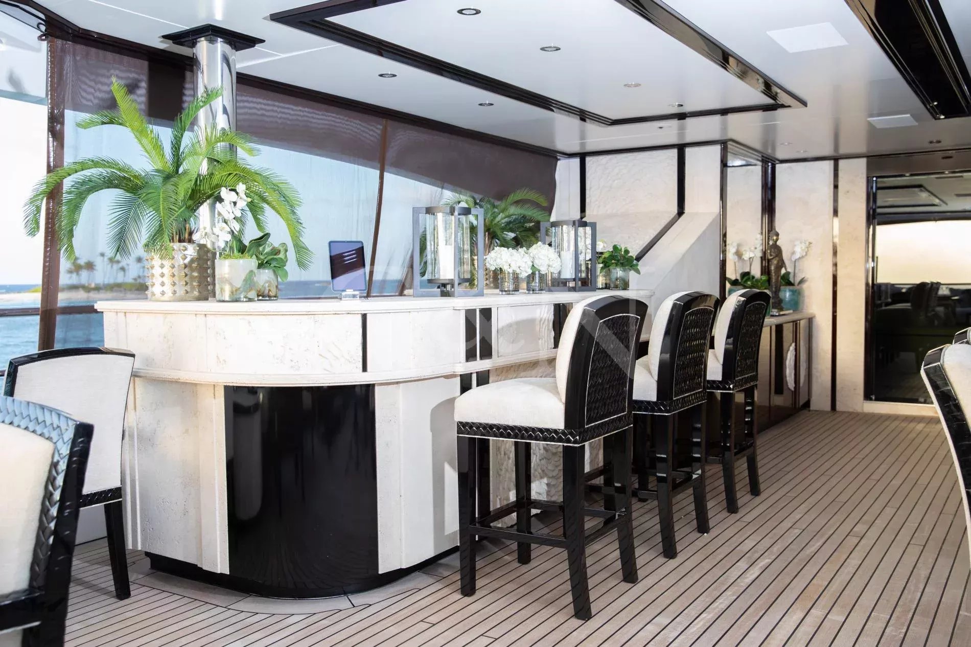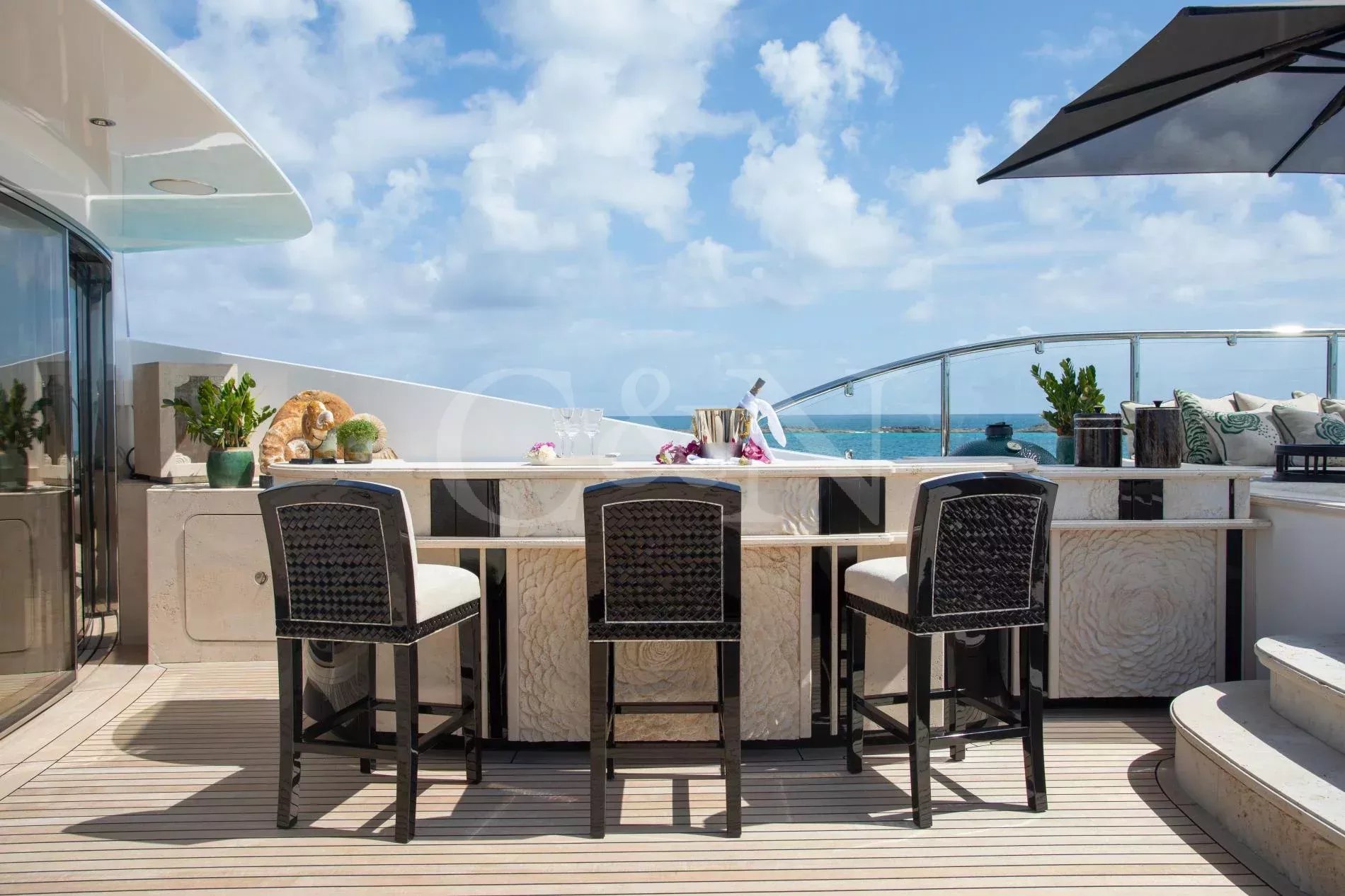 Illusion V is elegant and contemporary, a masterpiece from the celebrated design duo Green and Mingarelli and designed to represent the epitome of elegance. Her contemporary interior incorporates exotic materials such as walnut, onyx, Lalique crystal, parchment and silks, all of which create an inviting backdrop to the stunning vistas viewed from the windows.Built by the famous Italian shipyard, Benetti, and launched in 2014, this 58m superyacht is a truly magnificent charter vessel, with many desirable lifestyle features, such as her top deck Jacuzzi which is surrounded by cushioned sunpads.Illusion V can accommodate up to 12 guests across her six suites. The expansive master cabin has its own private cinema room, and there is a full-beam VIP suite, as well as a further four fantastically-appointed guest suites.Illusion V offers an abundance of dining, entertainment and relaxation areas, all capable of delivering a different ambience for social needs. She also has a full bar and beach area on her lower deck and utilises the latest technology in stability and noise reduction.In all areas, Illusion V's spaces have been carefully planned for optimum privacy and comfort. The sundeck is perfectly set up for at-sea entertaining and plays host to a large Jacuzzi, free-standing sun loungers, a bar and a BBQ.With such a long list of artfully crafted features, as well as an incomparable selection of water toys comprising a jetsurf board, snuba and scuba gear, fishing equipment and inflatables, there is no arguing that Illusion V offers the finest in barefoot luxury. Not for charter to US residents while in US waters.