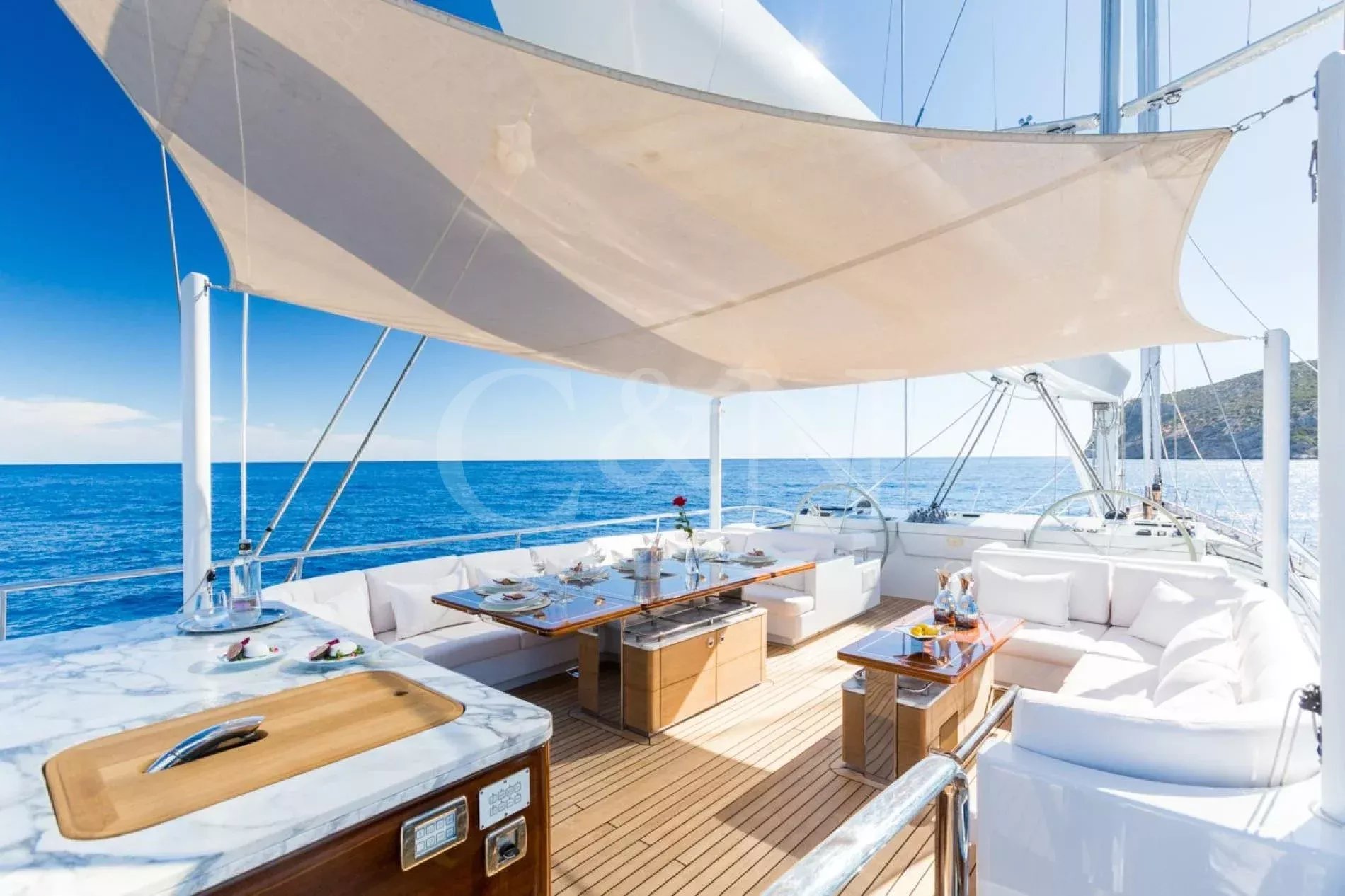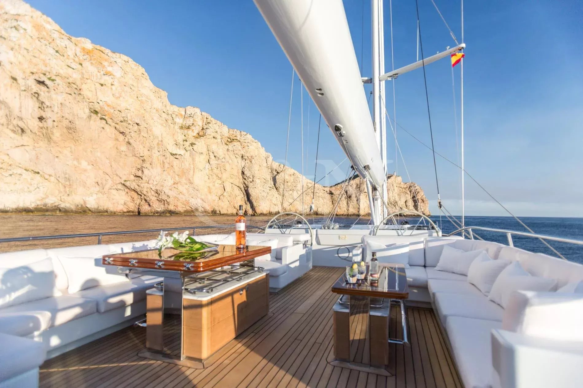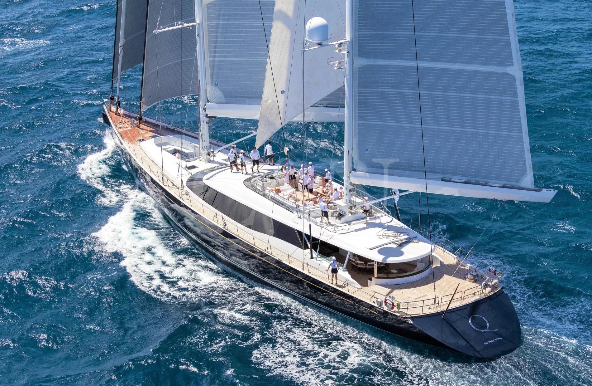 Q is the epitome of a blue-water cruiser, combining award-winning design with exceptional performance and sophistication. This multi-award-winning, ketch-rigged sailing yacht was custom-built by the renowned Alloy Yachts and features stunning Dubois-designed naval architecture. Delivered in 2008 and meticulously refitted in both 2014 and 2016, Q continues to set the standard for luxury sailing.With a 2024 update that includes a striking new teak deck with elegant grey caulking and refreshed interior carpets and marble, Q is ready to impress her guests this charter season. Q delivers the perfect combination of luxury, performance, and versatility, ensuring an unforgettable sailing experience for every guest.The interior of Q blends timeless elegance with a modern flair. Designed by Reymond Langton, the open-plan main salon offers a stylish yet subtle oriental twist, complete with 360-degree panoramic views. Guests will find this space ideal for relaxing, dining, or simply taking in the breath taking scenery.One of the standout features of Q’s design is her spacious, climate-controlled cockpit. Equipped with a spectacular system of fully retractable windows, this area allows guests to enjoy uninterrupted views at the touch of a button, whether cruising in the tropics or under the stars.Below deck, Q offers luxurious accommodations for up to 12 guests in five impeccably designed cabins. These include a full-beam master suite, two beautifully appointed double cabins, and two twin cabins, each with a Pullman berth.Every cabin is crafted for comfort and style, creating an inviting retreat for guests to unwind after a day of sailing or exploring.The exterior spaces aboard Q are thoughtfully designed for both entertainment and relaxation. The expansive flybridge features comfortable seating, a full-length dining table for alfresco meals, and a cinema projector setup on the Mizzen sail for magical movie nights under the stars.At the foredeck, guests can indulge in the large Jacuzzi, surrounded by sumptuous sun pads that offer the perfect place to relax while enjoying the stunning views.For those seeking adventure, Q boasts an extensive selection of water toys, including kayaks, water skis, stand-up paddleboards, and an inflatable trampoline. Whether entertaining friends or enjoying a tranquil day at sea, Q has everything you need for an unforgettable experience.What's on board?Tenders:1 x 19' Castoldi Jet tender (180 hp)1 x inflatable dinghy with outboard, ideal for beach trips (Milpro-type, seats 6 passengers)Toys:2 x Laser dinghies2 x Seabob F5s4 x Stand-up paddleboardsWater skis, wakeboards, wake-skate, and wake surf equipmentSnorkelling and fishing gearA variety of inflatable and towable toys, including a banana, donut, sofa, and moreInflatable trampoline