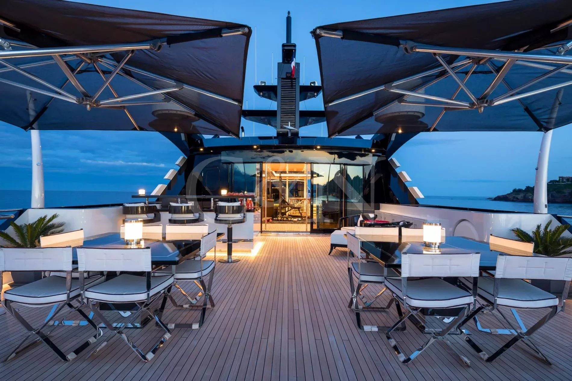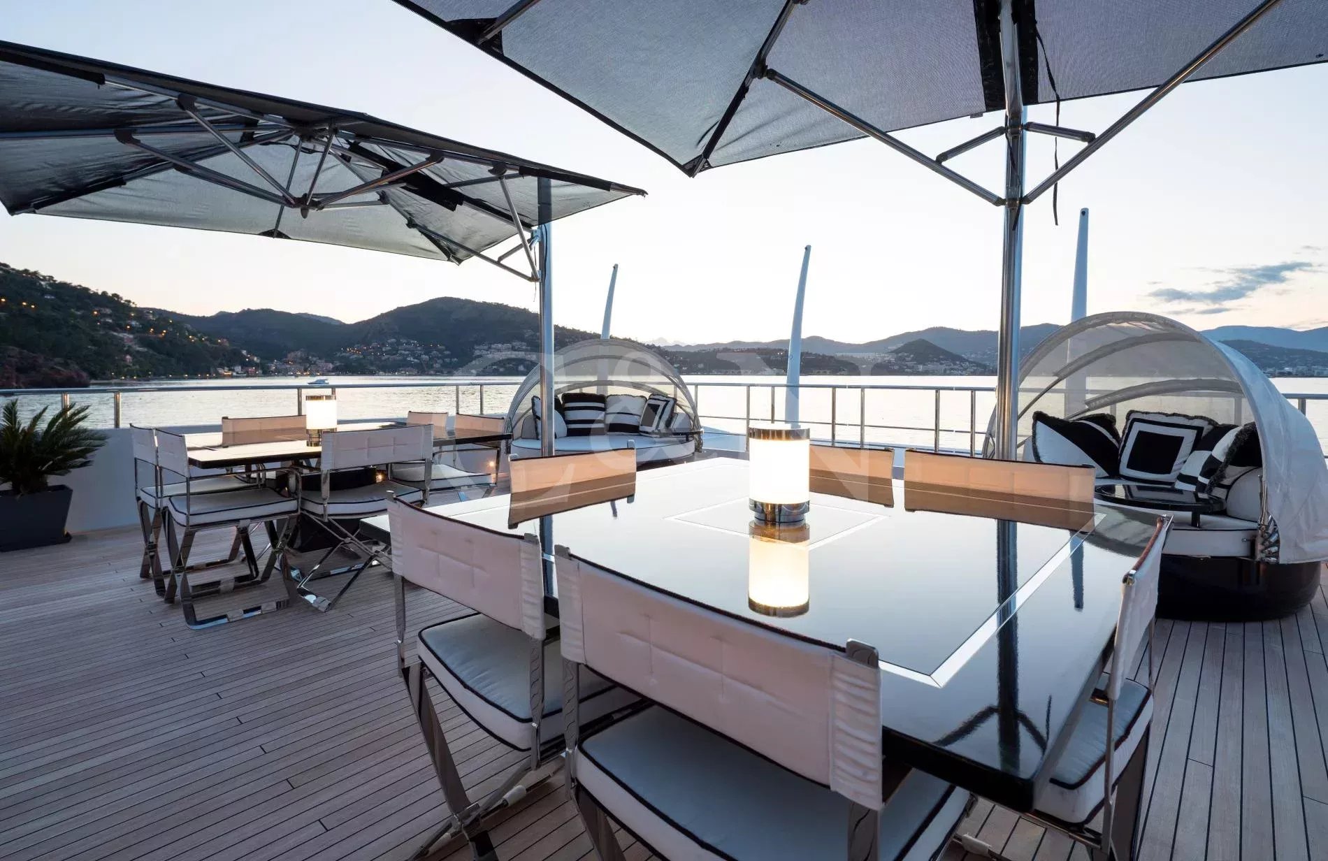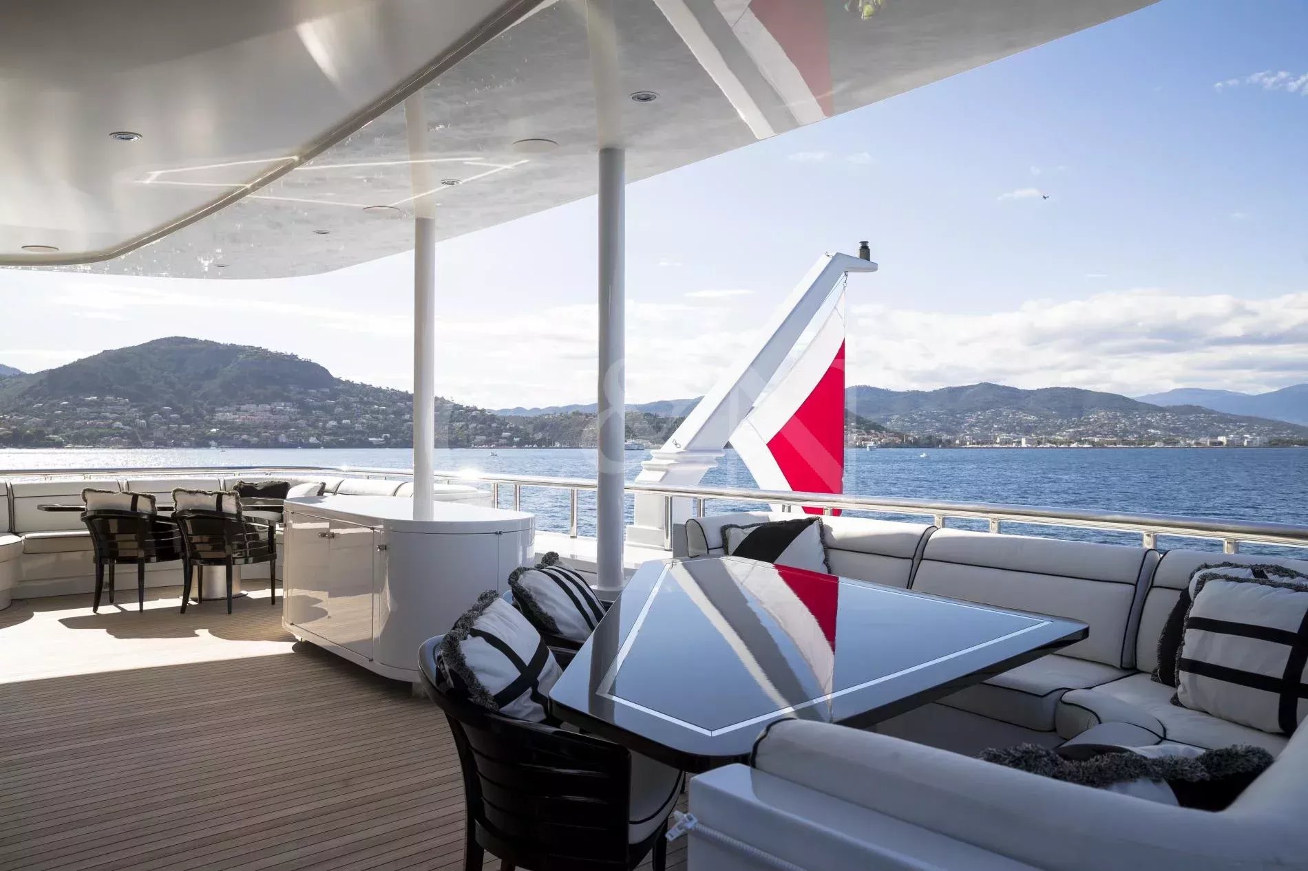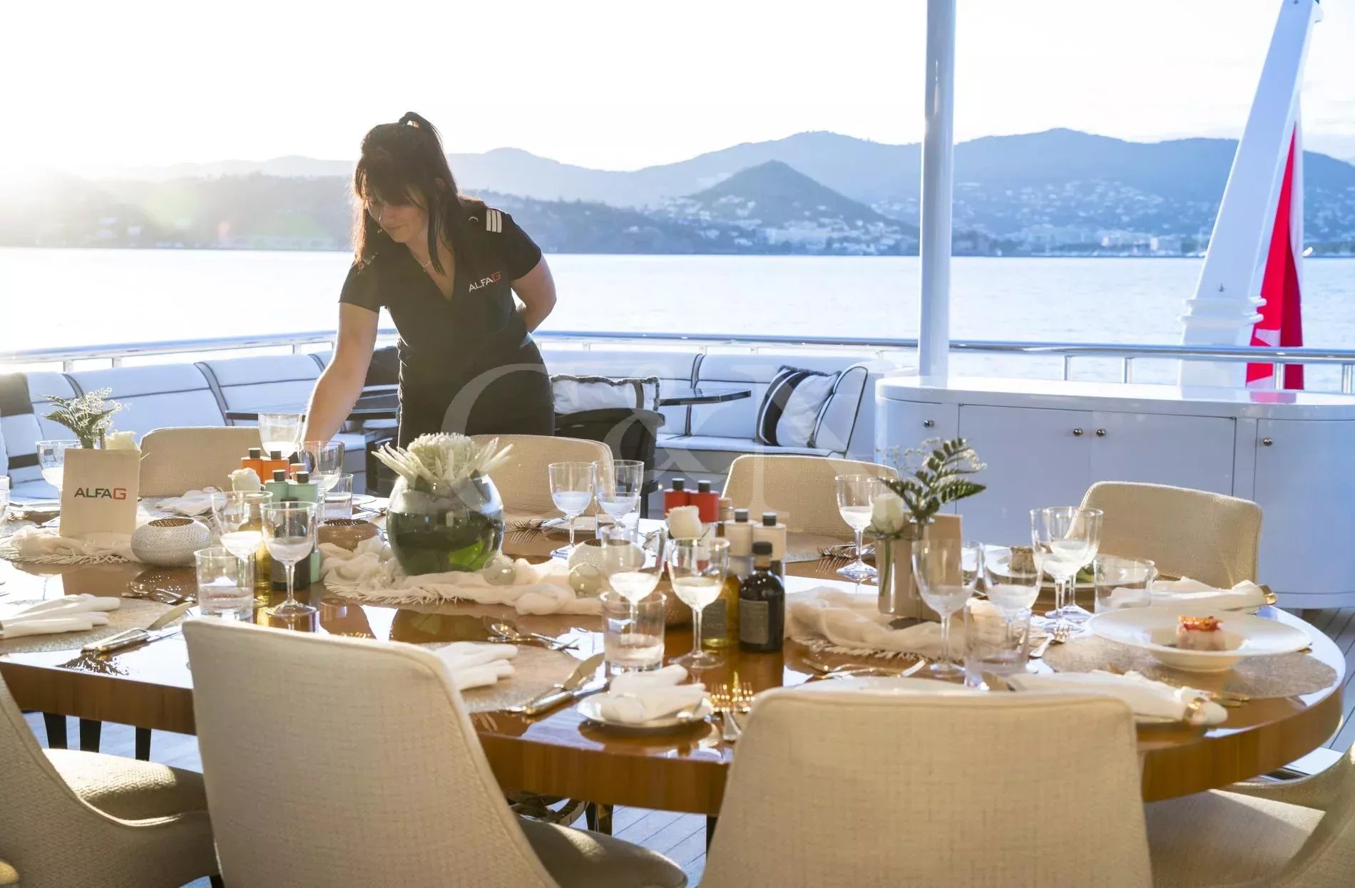 The award-winning 60-metre superyacht Alfa G is a shining example of luxurious craftsmanship and top-tier performance. Built by the renowned Dutch shipyard Oceanco, Alfa G showcases a magnificent interior design and the impeccable engineering standards of Oceanco. Alfa G is fully-custom and in immaculate condition, having undergone an extensive interior and exterior refit in 2024. She brings together timeless elegance, modern amenities, and powerful performance.With a first-class crew led by experienced charter captains, every detail on Alfa G is curated to deliver the ultimate luxury getaway, from gourmet dining to personalised activities. Whether you seek adventure or pure relaxation, Alfa G offers an unparalleled yachting experience.Alfa G’s interior is the epitome of modern elegance, perfectly balancing luxury with entertainment. Following her 2024 refit, the yacht features opulent materials, bespoke furnishings, and thoughtful design. From the glamorous main salon to the intimate observation lounge, every corner has been refreshed to create an atmosphere of serene comfort.The upper salon is a flexible relaxation space that can become a cinema room. Guests on board Alfa G can make use of the dedicated hair salon, cinema space and indulgent cabins, all designed to offer the highest level of relaxation.The sleek and sophisticated exterior of Alfa G has been meticulously designed to blend Oceanco’s craftsmanship with modern yachting traditions. Her newly upgraded decks offer expansive areas for entertainment and relaxation.The sundeck features a swimming pool with a contra-current training system, and a spacious lounging area. Guests can dine alfresco on the aft terrace with panoramic ocean views or sip cocktails at the outdoor bar. Additional exterior features include large spaces to relax and sunbathe, Portuguese bridge with seating, and a beach club for easy access to water sports.Alfa G accommodates up to 12 guests across seven cabins. The master suite, with its 180-degree panoramic views and private deck access, is a standout highlight. The master suite is located on the main deck and features his & hers walk-in wardrobes and a private observation lounge. Within the observation lounge, the sofa can be converted into a double bed, creating an extra cabin.The full-beam VIP suite on the lower deck offers a king-size bed and additional pullman bed, while the remaining guest cabins feature flexible layouts.With accommodations for 16 dedicated crew members, Alfa G promises impeccable service, ensuring that every need is met with precision and care.Alfa G offers a host of amenities designed for adventure and relaxation. Her upgraded selection of water toys and equipment includes:7.60m Craft guest tender2 x F5S SeaBobs2 x Fliteboard E-foil2 x Two-seated rigid kayaks1x Seadoo waker pro & Spark Jet skisInflatable SUPs, wakeboards, water skis and Jobe towable toysA floating dock, scuba diving equipment, and snorkelling gearNot for charter to US residents while in US waters.