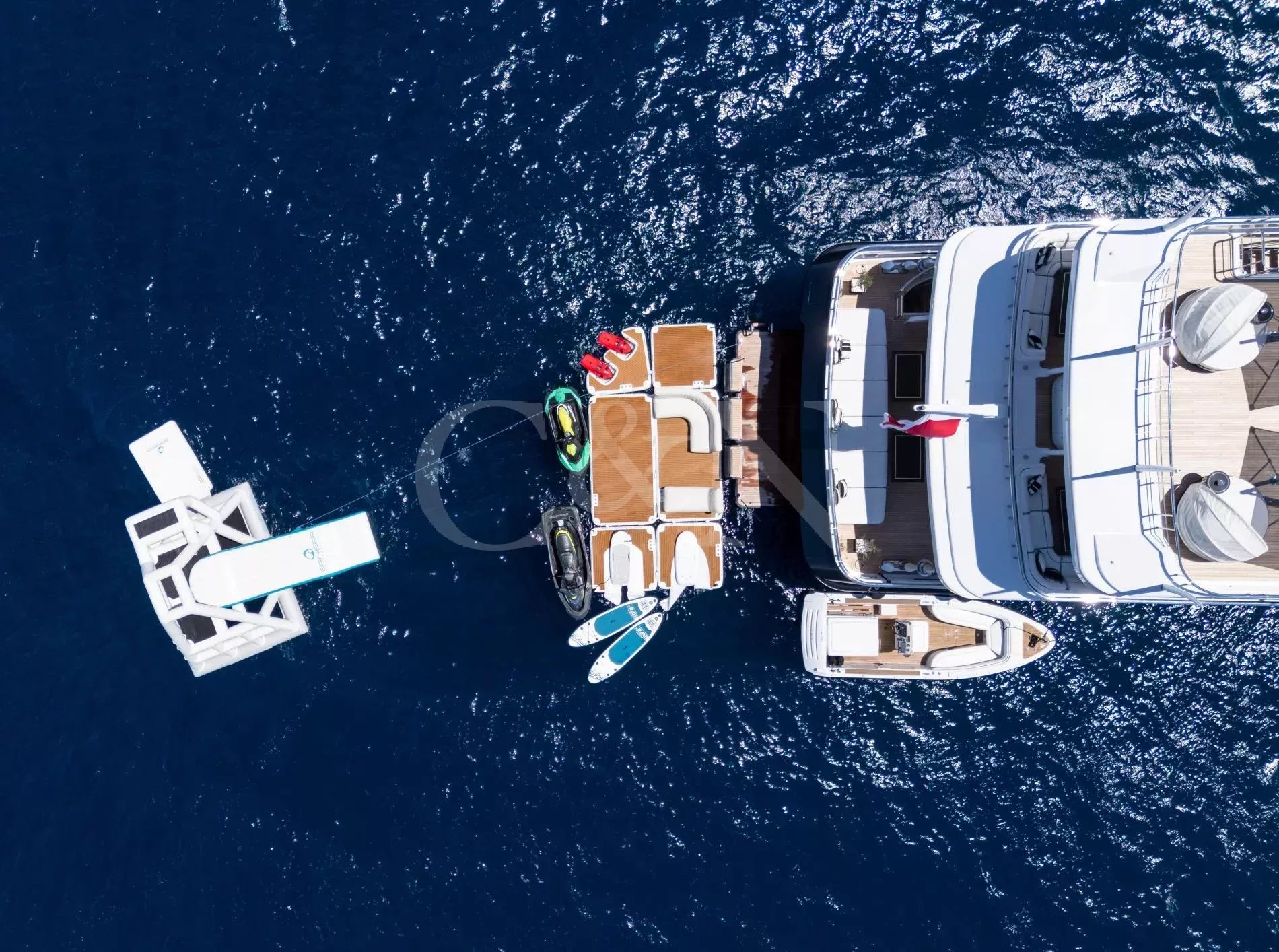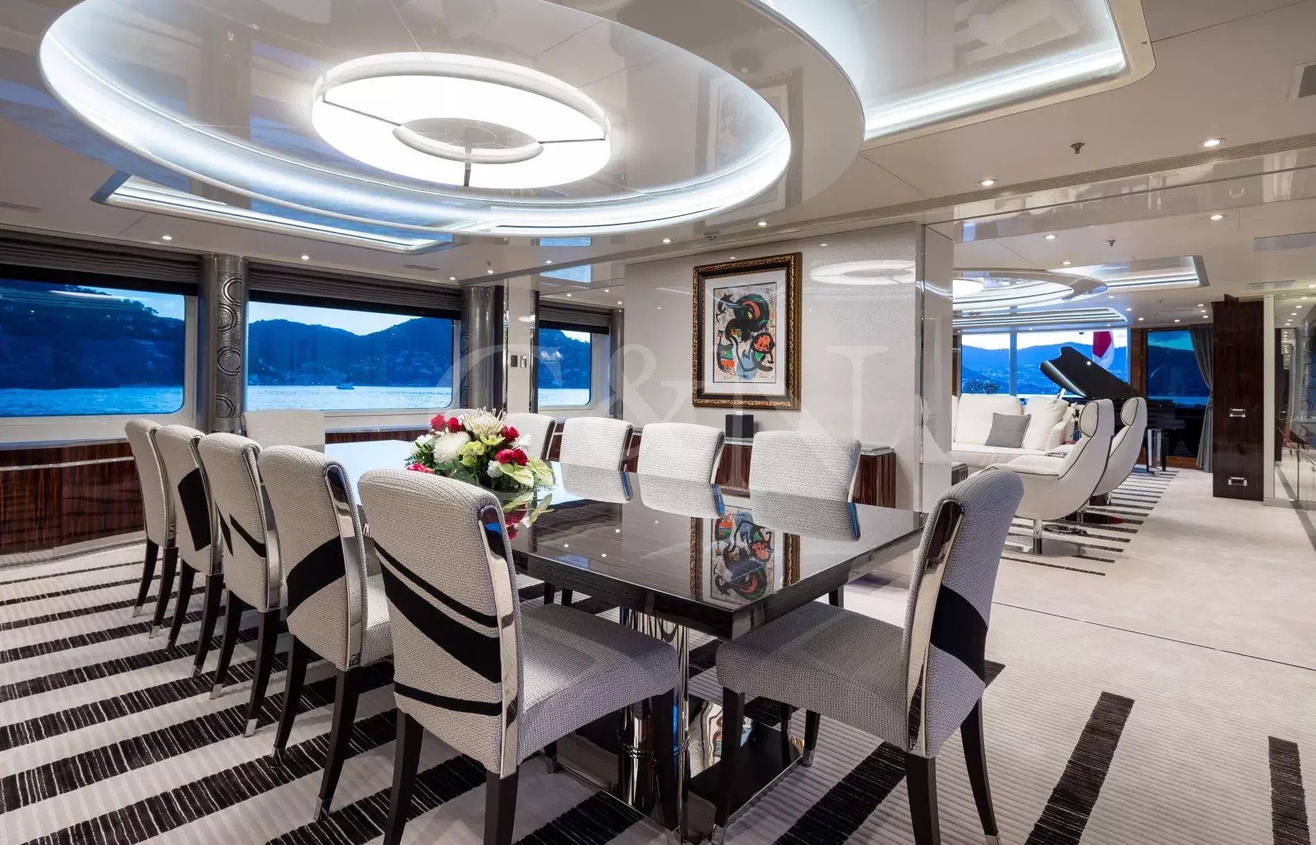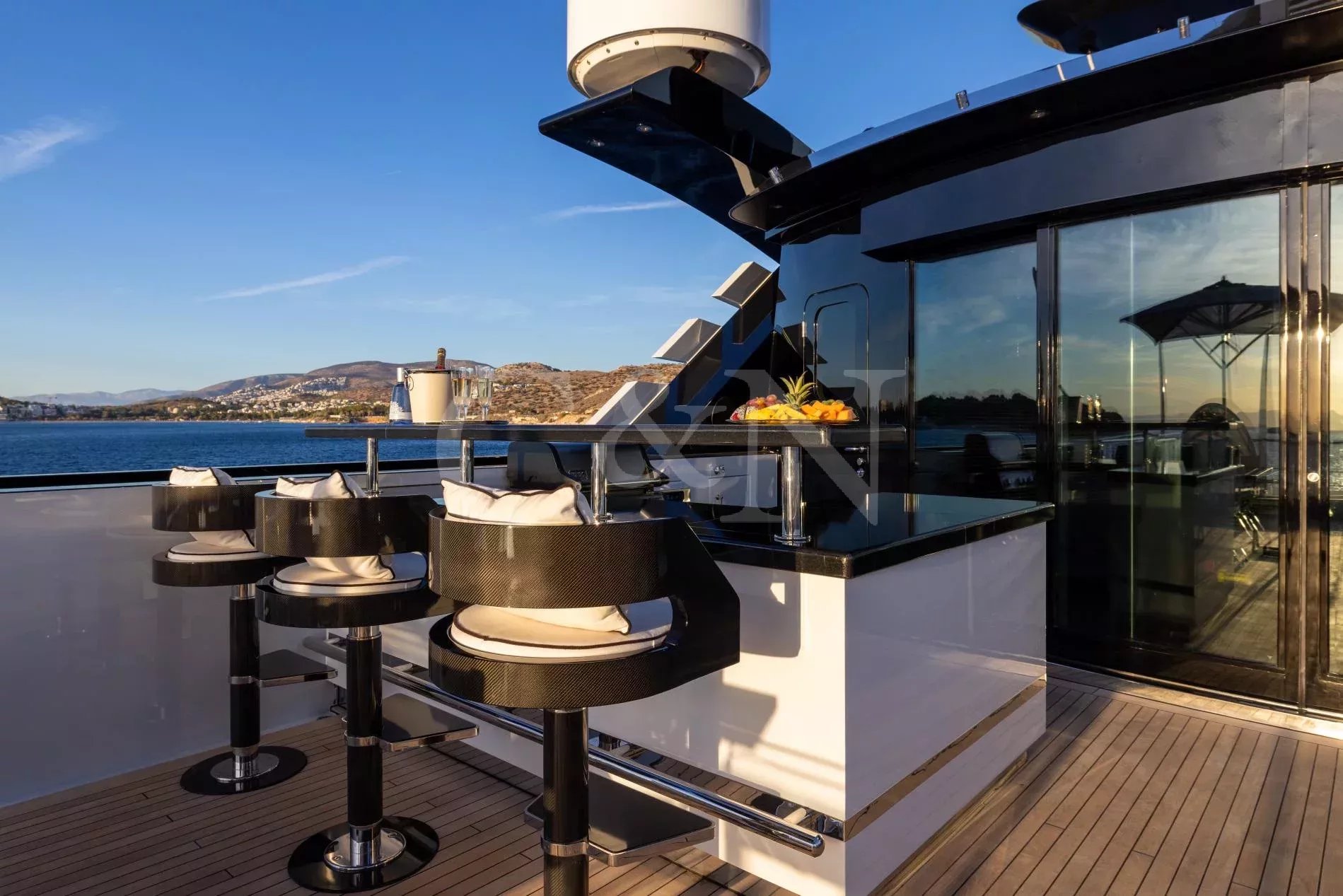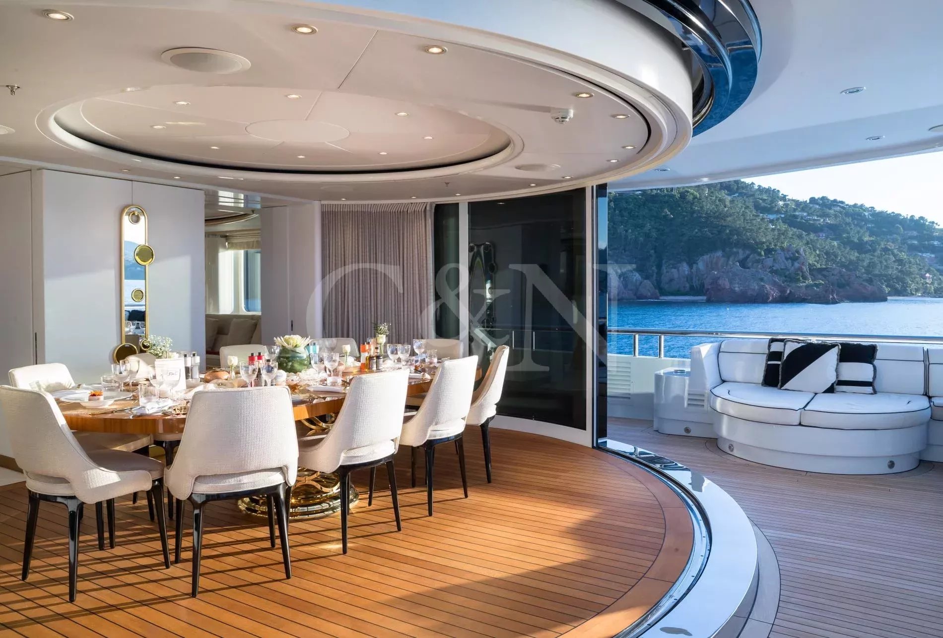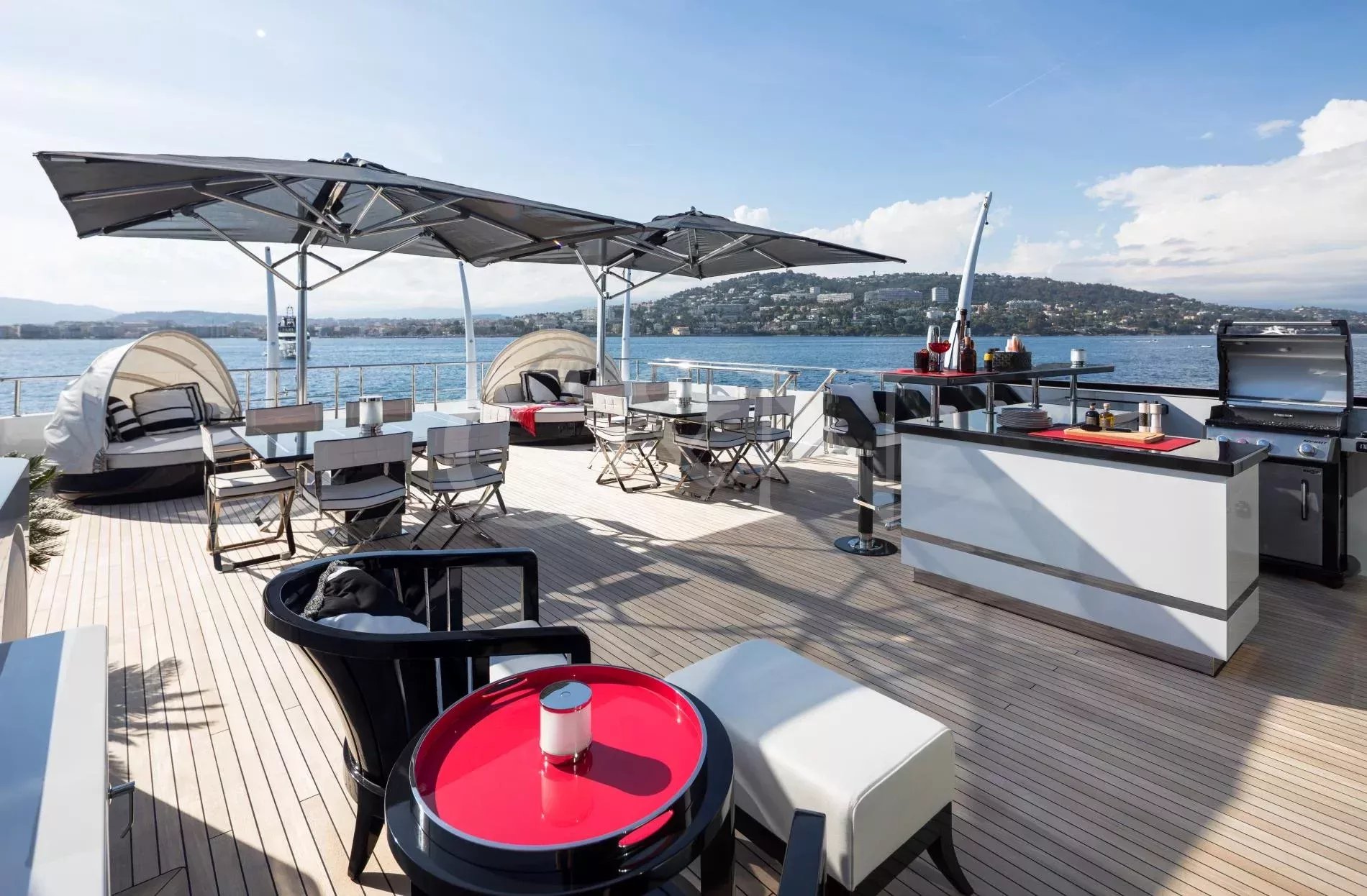 The award-winning 60-metre superyacht Alfa G is a shining example of luxurious craftsmanship and top-tier performance. Built by the renowned Dutch shipyard Oceanco, Alfa G showcases a magnificent interior design and the impeccable engineering standards of Oceanco. Alfa G is fully-custom and in immaculate condition, having undergone an extensive interior and exterior refit in 2024. She brings together timeless elegance, modern amenities, and powerful performance.With a first-class crew led by experienced charter captains, every detail on Alfa G is curated to deliver the ultimate luxury getaway, from gourmet dining to personalised activities. Whether you seek adventure or pure relaxation, Alfa G offers an unparalleled yachting experience.Alfa G’s interior is the epitome of modern elegance, perfectly balancing luxury with entertainment. Following her 2024 refit, the yacht features opulent materials, bespoke furnishings, and thoughtful design. From the glamorous main salon to the intimate observation lounge, every corner has been refreshed to create an atmosphere of serene comfort.The upper salon is a flexible relaxation space that can become a cinema room. Guests on board Alfa G can make use of the dedicated hair salon, cinema space and indulgent cabins, all designed to offer the highest level of relaxation.The sleek and sophisticated exterior of Alfa G has been meticulously designed to blend Oceanco’s craftsmanship with modern yachting traditions. Her newly upgraded decks offer expansive areas for entertainment and relaxation.The sundeck features a swimming pool with a contra-current training system, and a spacious lounging area. Guests can dine alfresco on the aft terrace with panoramic ocean views or sip cocktails at the outdoor bar. Additional exterior features include large spaces to relax and sunbathe, Portuguese bridge with seating, and a beach club for easy access to water sports.Alfa G accommodates up to 12 guests across seven cabins. The master suite, with its 180-degree panoramic views and private deck access, is a standout highlight. The master suite is located on the main deck and features his & hers walk-in wardrobes and a private observation lounge. Within the observation lounge, the sofa can be converted into a double bed, creating an extra cabin.The full-beam VIP suite on the lower deck offers a king-size bed and additional pullman bed, while the remaining guest cabins feature flexible layouts.With accommodations for 16 dedicated crew members, Alfa G promises impeccable service, ensuring that every need is met with precision and care.Alfa G offers a host of amenities designed for adventure and relaxation. Her upgraded selection of water toys and equipment includes:7.60m Craft guest tender2 x F5S SeaBobs2 x Fliteboard E-foil2 x Two-seated rigid kayaks1x Seadoo waker pro & Spark Jet skisInflatable SUPs, wakeboards, water skis and Jobe towable toysA floating dock, scuba diving equipment, and snorkelling gearNot for charter to US residents while in US waters.