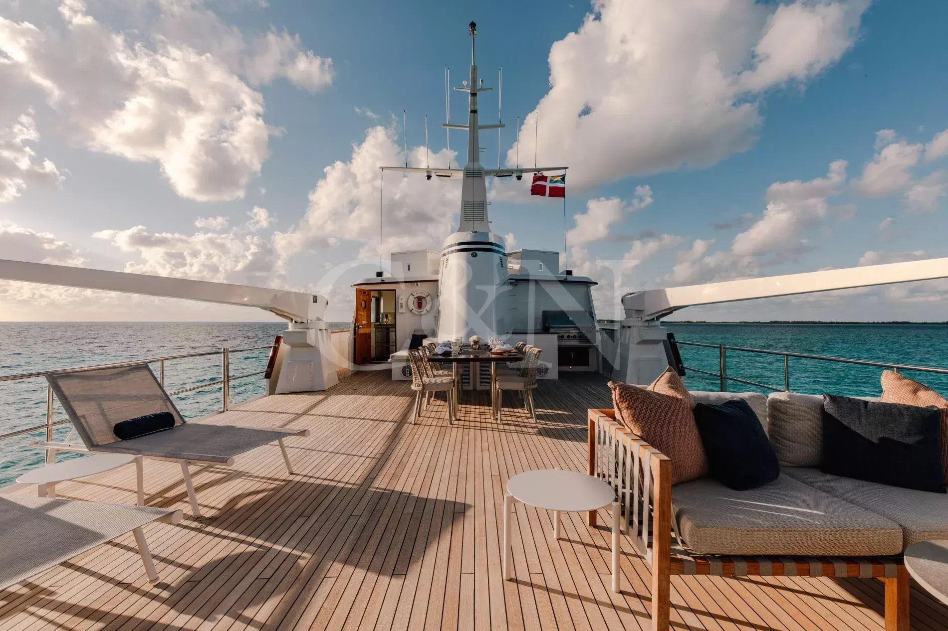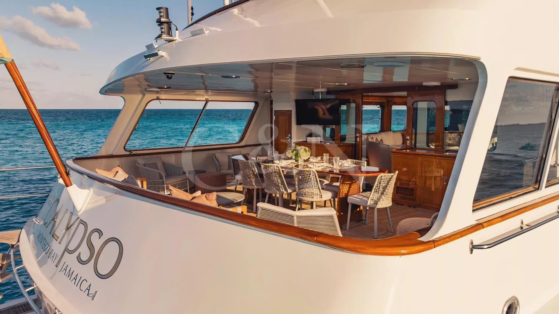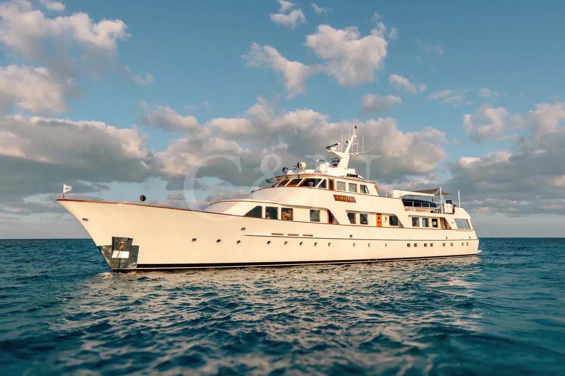 Calypso is a custom-built Feadship with a seductive mix of classic yachting and 21st-century allure. Part of the Feadship Heritage Fleet, discerning yacht enthusiasts will be drawn to her timeless elegance, carefully enhanced with modern upgrades.Calypso was designed as the ultimate venue for entertaining clients and hosting lavish parties. Once owned by Malcolm Forbes, who hosted many high-profile events and famous faces onboard, including royalty and Hollywood icons such as Prince Charles, Elizabeth Taylor, and Henry Kissinger, today Calypso is a family-owned yacht that as well as providing fantastic charter experiences, works closely with National Geographic to conduct scientific research in remote locations.There is accommodation for 11 guests across five cabins, including two master suites, two double cabins with queen beds, and a cabin with twin beds plus a Pullman berth.Throughout Calypso’s interior, classic teak panelling is partnered with modern furnishings. The atmosphere is inviting and open with ample space between the main salon and dining area.Entertain your friends and family in stylish luxury. Calypso’s huge upper deck is perfect for outdoor fun with its Jacuzzi, barbecue, sun loungers, 12-seat alfresco dining table, and a 120-inch cinema screen. Whether sipping cocktails and dancing under the moonlight, lounging in the sun, or seeking shade underneath the removable awnings, guests can enjoy panoramic views day or night. Calypso's state-of-the-art audiovisual system ensures entertainment flows seamlessly from interior to exterior spaces, elevating every moment onboard.Calypso is for charter with a crew of 8. For unforgettable memories on the high seas, this sophisticated superyacht is a standout option.