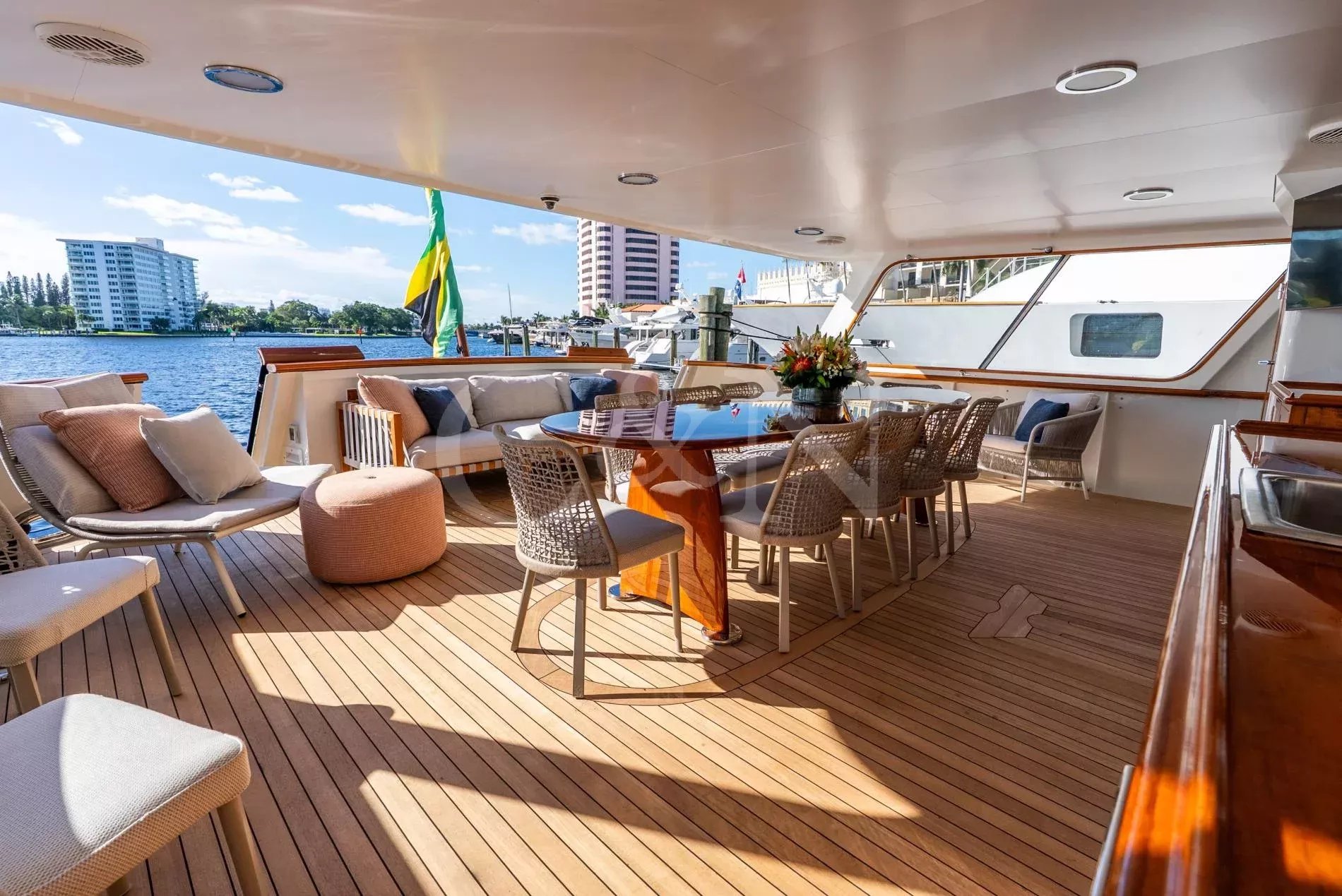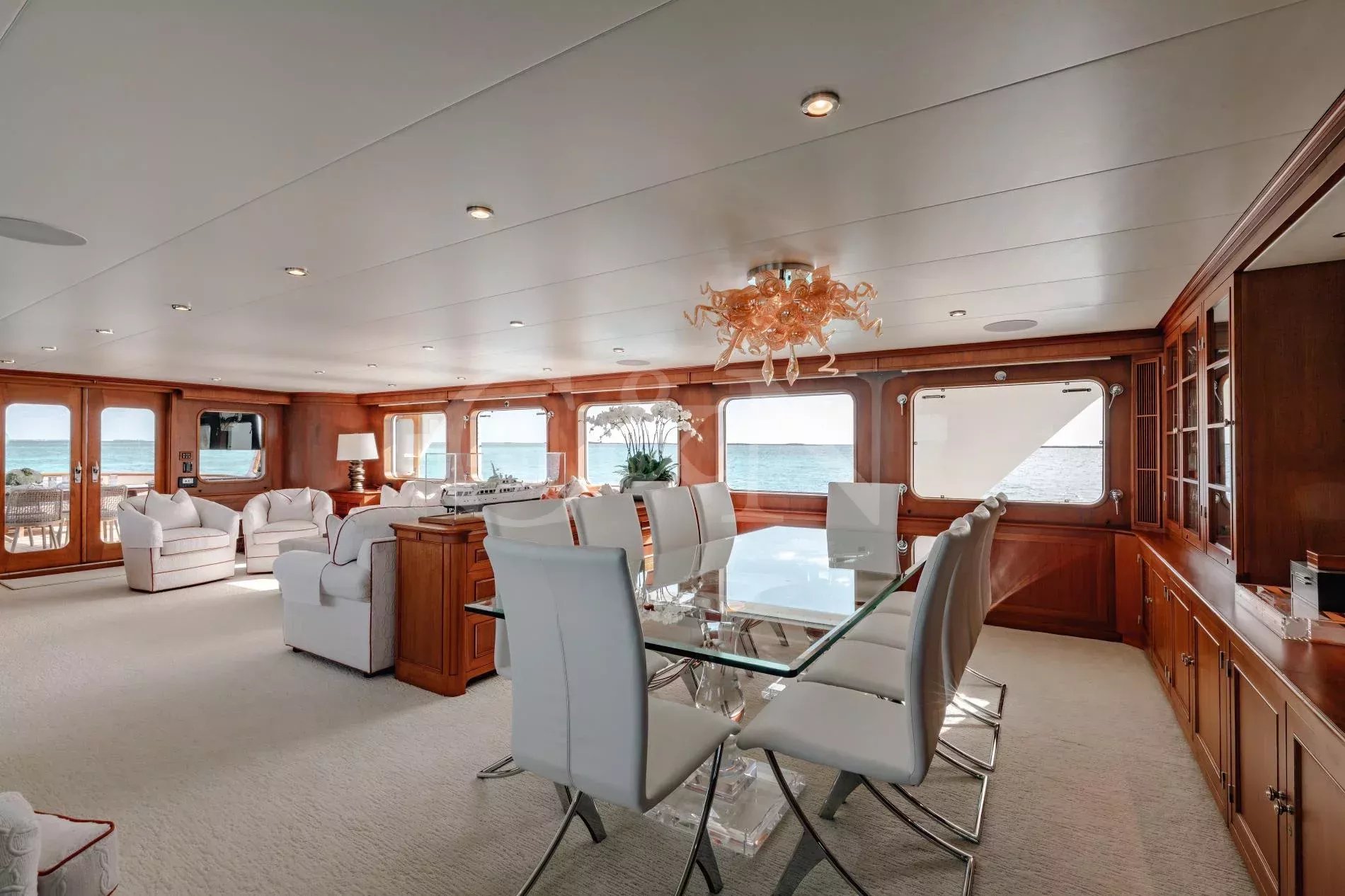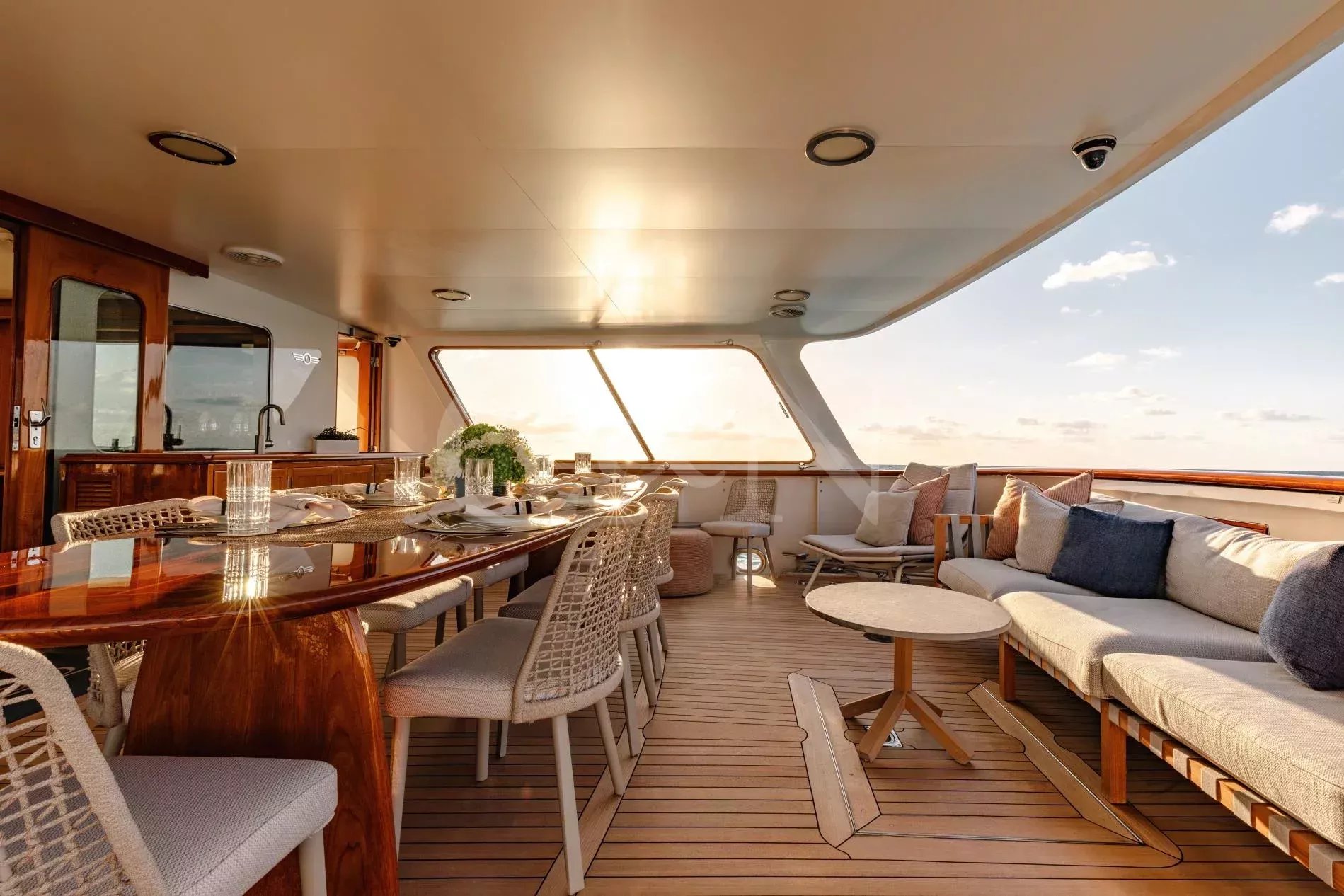Calypso is a custom-built Feadship with a seductive mix of classic yachting and 21st-century allure. Part of the Feadship Heritage Fleet, discerning yacht enthusiasts will be drawn to her timeless elegance, carefully enhanced with modern upgrades.Calypso was designed as the ultimate venue for entertaining clients and hosting lavish parties. Once owned by Malcolm Forbes, who hosted many high-profile events and famous faces onboard, including royalty and Hollywood icons such as Prince Charles, Elizabeth Taylor, and Henry Kissinger, today Calypso is a family-owned yacht that as well as providing fantastic charter experiences, works closely with National Geographic to conduct scientific research in remote locations.There is accommodation for 11 guests across five cabins, including two master suites, two double cabins with queen beds, and a cabin with twin beds plus a Pullman berth.Throughout Calypso’s interior, classic teak panelling is partnered with modern furnishings. The atmosphere is inviting and open with ample space between the main salon and dining area.Entertain your friends and family in stylish luxury. Calypso’s huge upper deck is perfect for outdoor fun with its Jacuzzi, barbecue, sun loungers, 12-seat alfresco dining table, and a 120-inch cinema screen. Whether sipping cocktails and dancing under the moonlight, lounging in the sun, or seeking shade underneath the removable awnings, guests can enjoy panoramic views day or night. Calypso's state-of-the-art audiovisual system ensures entertainment flows seamlessly from interior to exterior spaces, elevating every moment onboard.Calypso is for charter with a crew of 8. For unforgettable memories on the high seas, this sophisticated superyacht is a standout option.