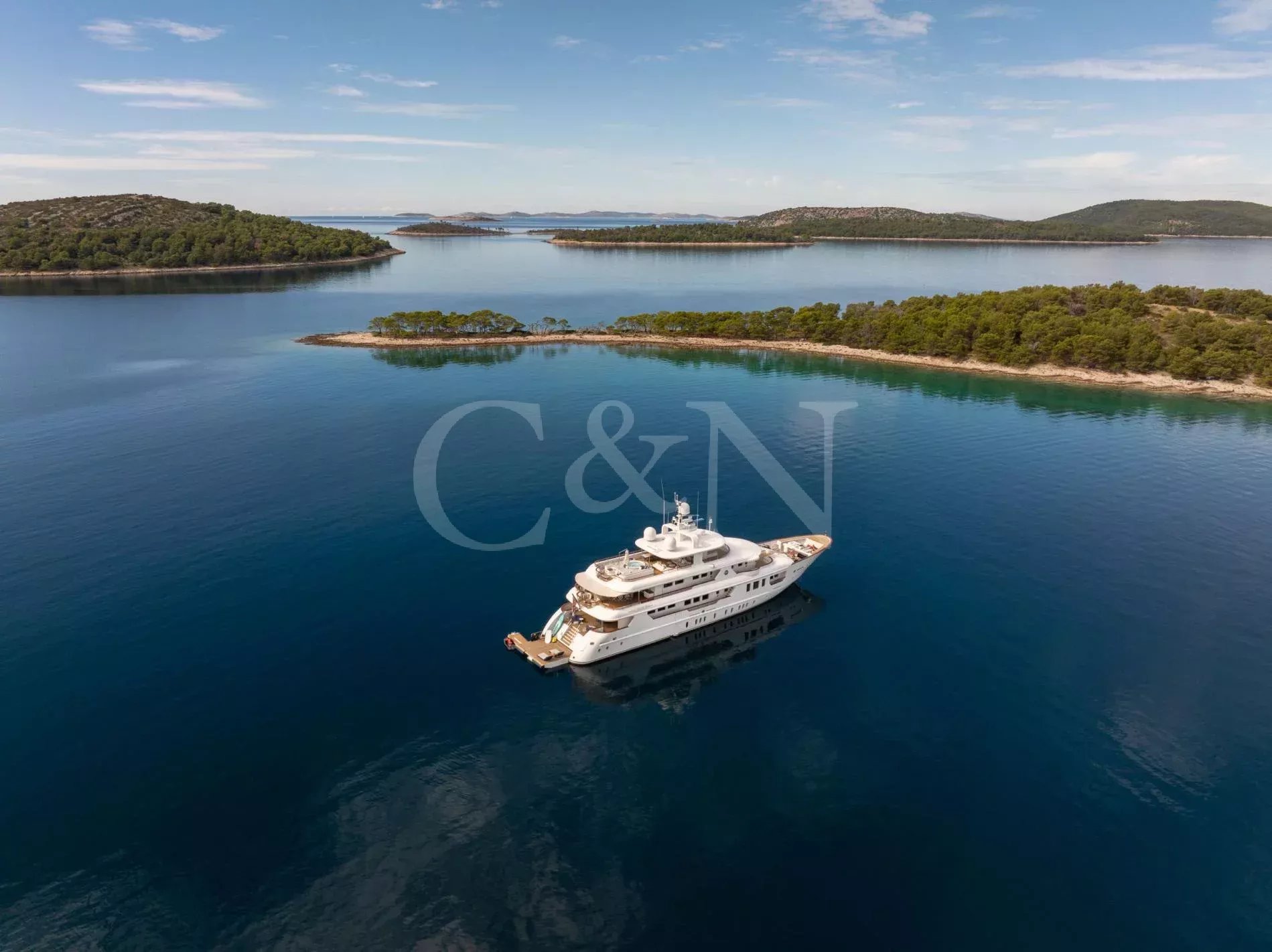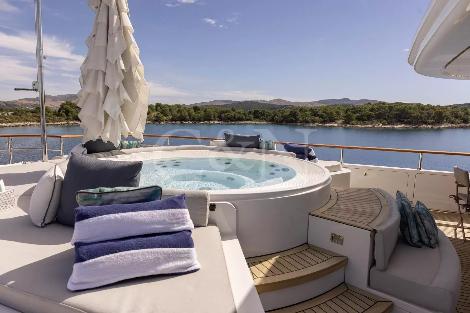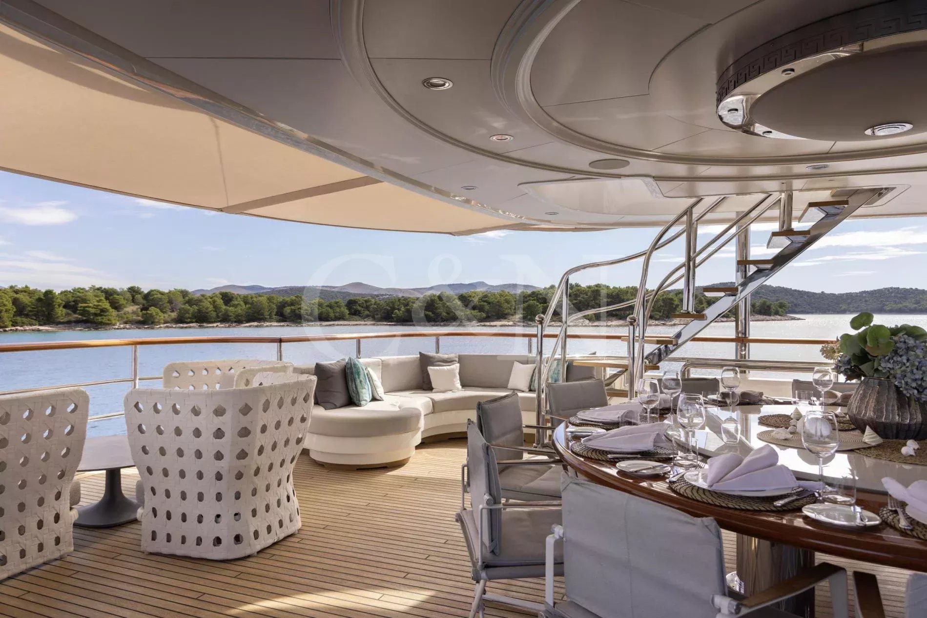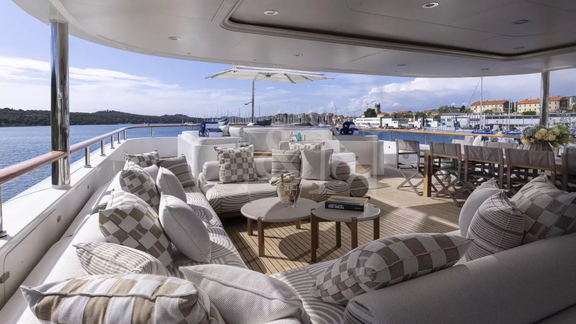 INCAL is a 44.8m Viudes/Mondomarine motor yacht, that offers an unparalleled blend of elegance and adventure, making it the perfect vessel for unforgettable family charters and group getaways. With its spacious interior, expansive open decks, and numerous dining, entertainment, and relaxation areas, INCAL is designed to create lasting memories.Maximizing exceptional volume and fostering a seamless connection with the ocean, the aft of the main deck opens to the extended swim platform, transforming into a serene waterside retreat. Guests can bask in the sun on one of the sun loungers, dive into the crystal-clear waters or enjoy the water toys available on board.Accommodating up to 12 guests in six cabins, INCAL ensures every guest enjoys comfort and privacy. The lavish master suite located on the main deck boasts a large office area, two private balconies, and a stunning ensuite with a Jacuzzi bath, providing a haven of relaxation. The lower deck boasts a full-beam VIP with lounge area and walk-in wardrobe, two elegant doubles, and two twin cabins.The main saloon exudes sophistication with its light and spacious lounge area, formal dining space, and statement bar. The neutral soft furnishings perfectly complement the dark wood panelling, creating an ambience of refined elegance.Alfresco dining can be enjoyed on the bridge deck aft which boasts a central circular dining table and a luxurious seating area, providing the perfect space for entertaining. The side decks lead to the foredeck, where additional lounge and sunbathing spaces provide a tranquil haven with expansive views over the bow.INCAL’s 115 m² open-plan sundeck showcases the essence of outdoor living. It features a Jacuzzi, full bar, BBQ grill, dining table, and ample lounge seating. It’s an idyllic setting for sun-soaked days and star-lit nights where you can relish every moment in ultimate comfort.One of INCAL’s standout features is the gym on the bridge deck, equipped with an exercise bike, rowing machine, and a Technogym Kinesis, perfect for those active guests wanting to stay fit whilst on board.
