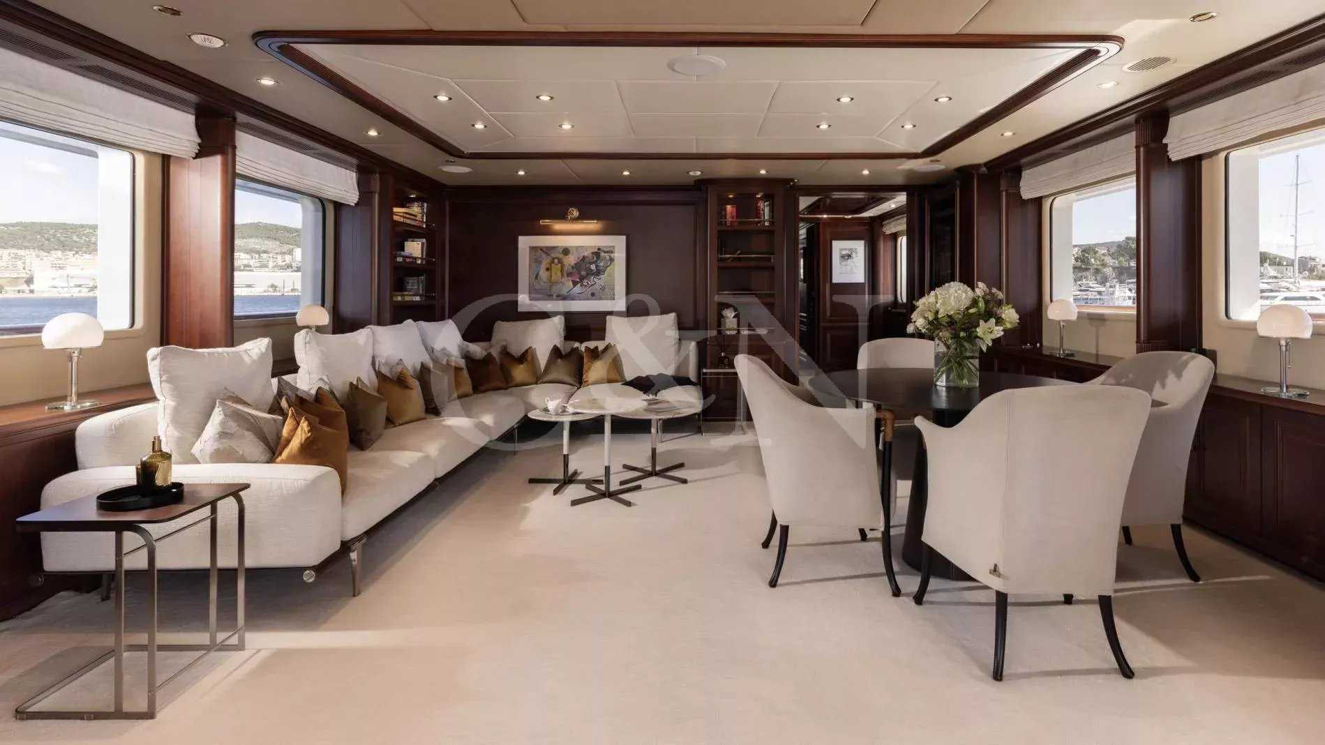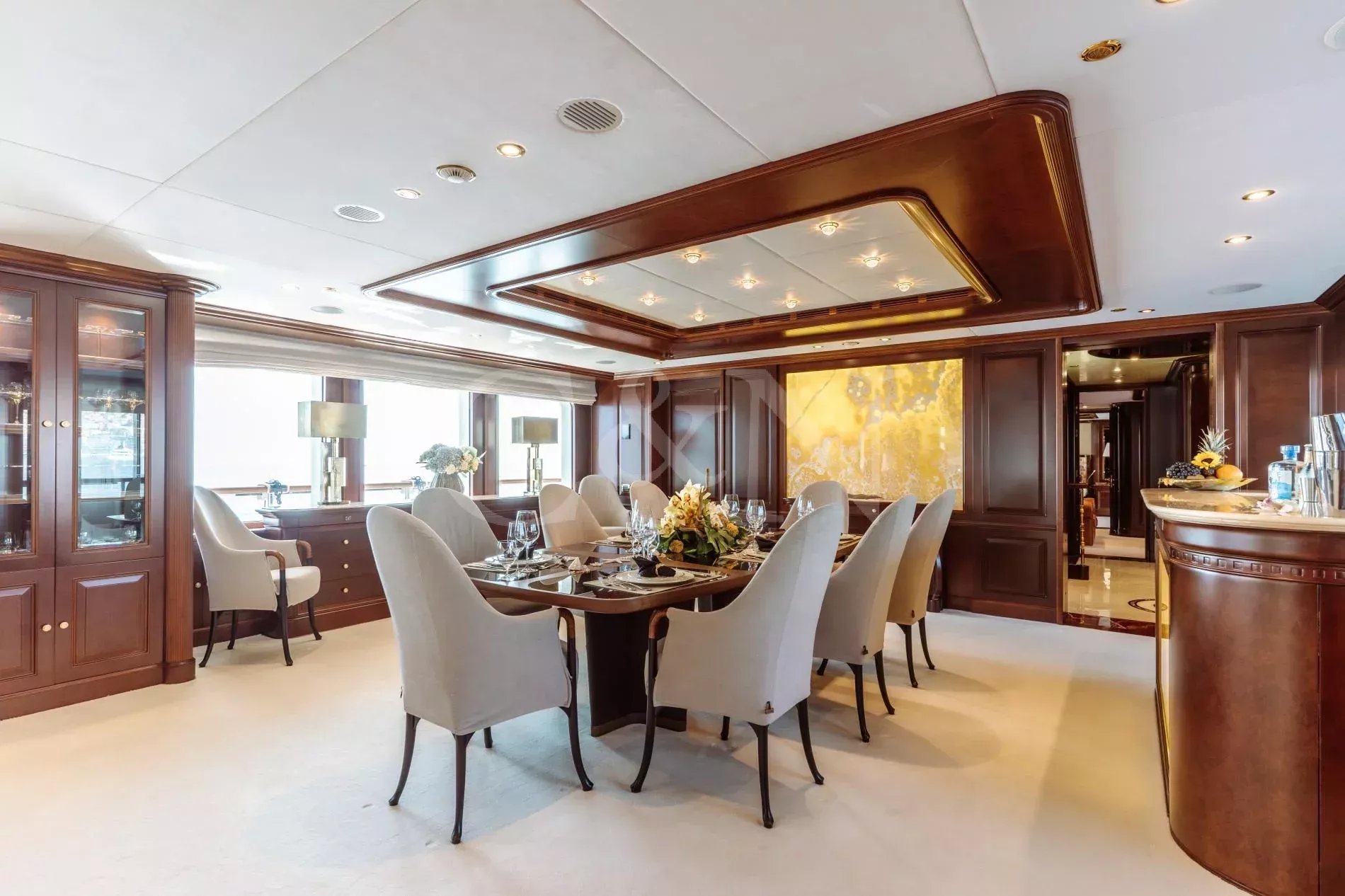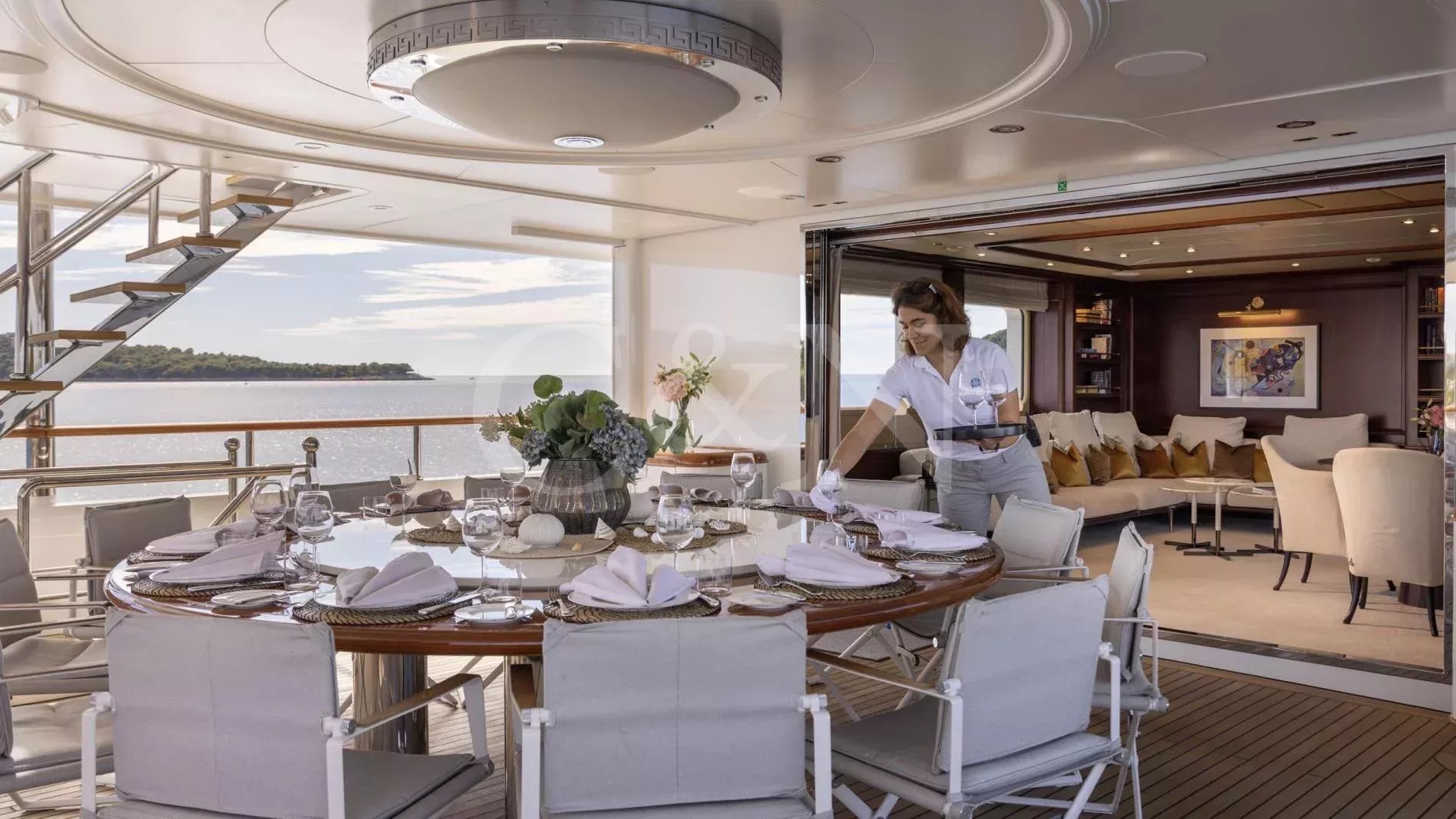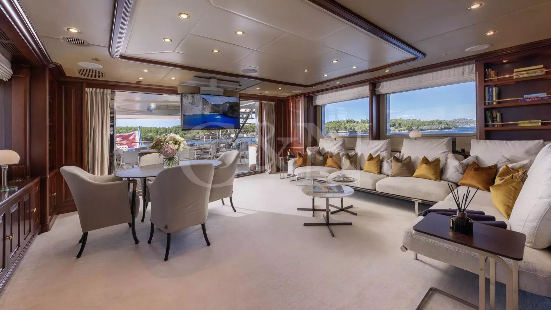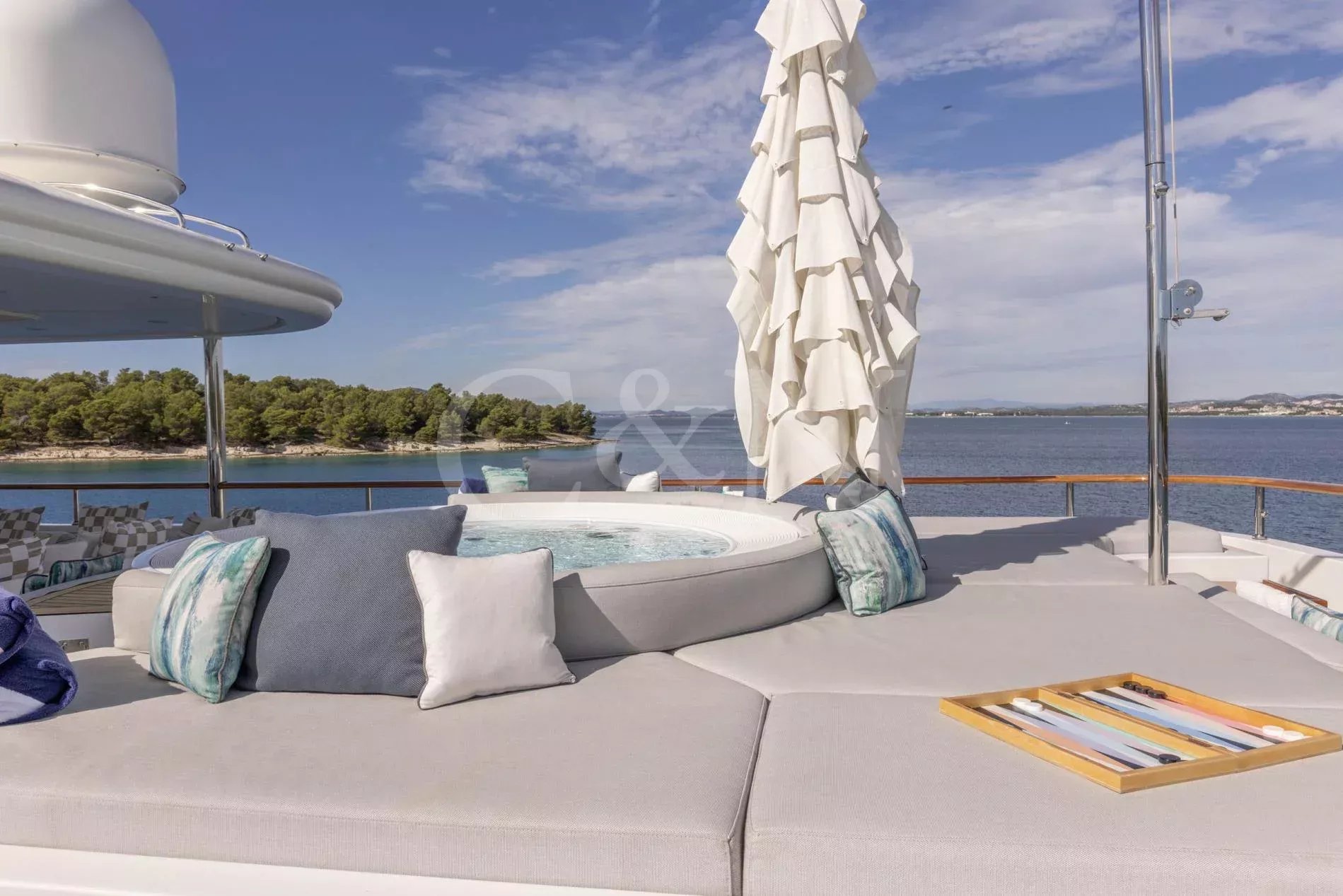 INCAL is a 44.8m Viudes/Mondomarine motor yacht, that offers an unparalleled blend of elegance and adventure, making it the perfect vessel for unforgettable family charters and group getaways. With its spacious interior, expansive open decks, and numerous dining, entertainment, and relaxation areas, INCAL is designed to create lasting memories.Maximizing exceptional volume and fostering a seamless connection with the ocean, the aft of the main deck opens to the extended swim platform, transforming into a serene waterside retreat. Guests can bask in the sun on one of the sun loungers, dive into the crystal-clear waters or enjoy the water toys available on board.Accommodating up to 12 guests in six cabins, INCAL ensures every guest enjoys comfort and privacy. The lavish master suite located on the main deck boasts a large office area, two private balconies, and a stunning ensuite with a Jacuzzi bath, providing a haven of relaxation. The lower deck boasts a full-beam VIP with lounge area and walk-in wardrobe, two elegant doubles, and two twin cabins.The main saloon exudes sophistication with its light and spacious lounge area, formal dining space, and statement bar. The neutral soft furnishings perfectly complement the dark wood panelling, creating an ambience of refined elegance.Alfresco dining can be enjoyed on the bridge deck aft which boasts a central circular dining table and a luxurious seating area, providing the perfect space for entertaining. The side decks lead to the foredeck, where additional lounge and sunbathing spaces provide a tranquil haven with expansive views over the bow.INCAL’s 115 m² open-plan sundeck showcases the essence of outdoor living. It features a Jacuzzi, full bar, BBQ grill, dining table, and ample lounge seating. It’s an idyllic setting for sun-soaked days and star-lit nights where you can relish every moment in ultimate comfort.One of INCAL’s standout features is the gym on the bridge deck, equipped with an exercise bike, rowing machine, and a Technogym Kinesis, perfect for those active guests wanting to stay fit whilst on board.