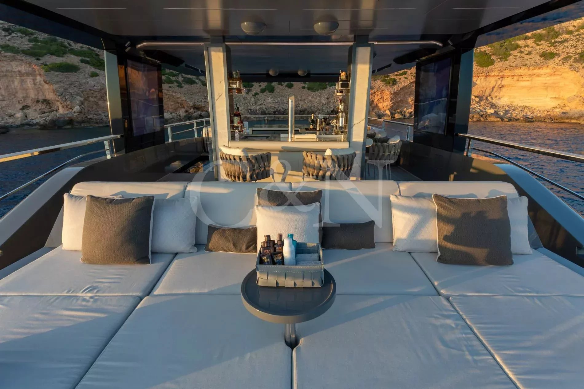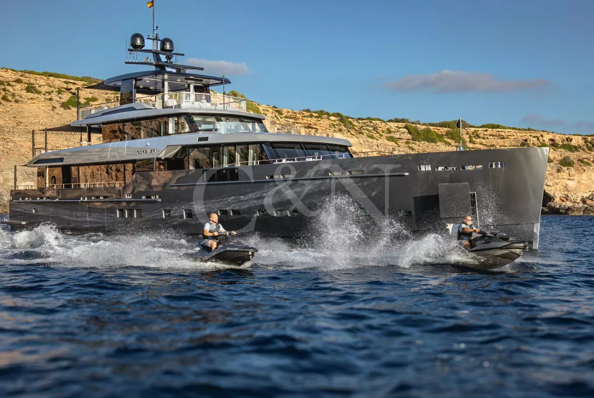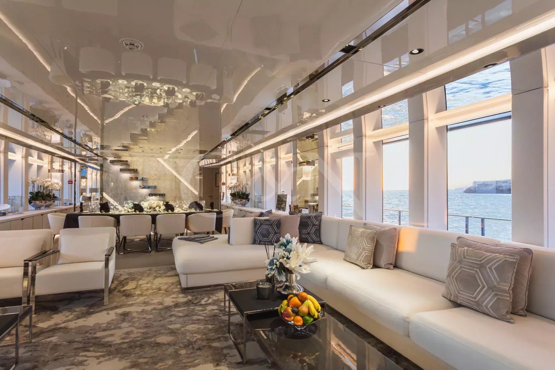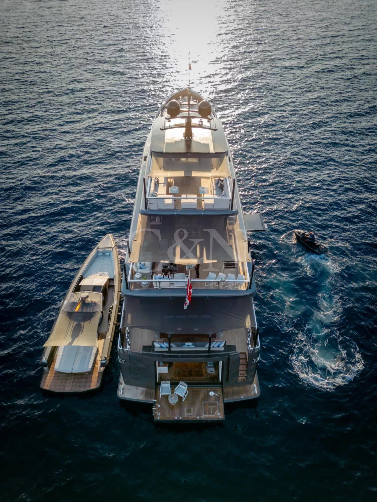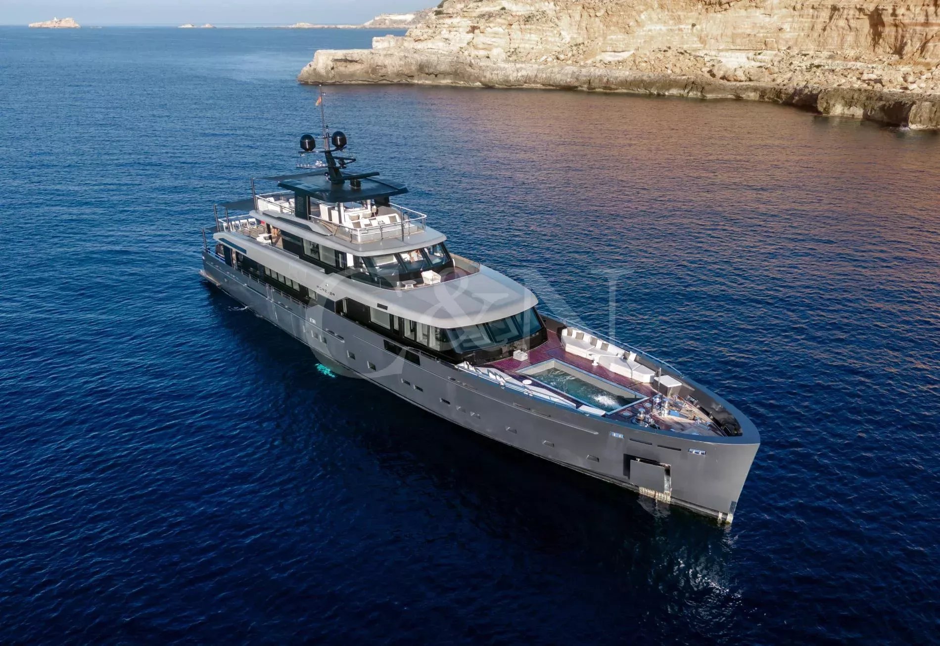 Forever is a 44.81m tri-deck luxury motor yacht built by Logica Yachts. This sleek and stylish motor yacht has a striking aesthetic and a dynamic profile with a stylish use of glass and a dark grey hull. Forever is in immaculate condition; she underwent an interior refit in 2018 as well as an exterior refit with additional modifications in 2022/2023, which included an extension to the upper deck, a new flybridge, and a repaint of the superstructure.Forever is an excellent yacht for entertaining guests and boasts many lifestyle amenities and large yacht features, including an impressive 5.5-metre foredeck pool with Jacuzzi and jet system, spacious decks with optional shade and multiple areas for al fresco dining, and a flybridge with statement bar counter. She is also home to state of the art lightning and music equipment, a beach club with gym equipment and adjacent steam room. Forever has immense charter compatibility and guarantees modern luxury at every turn.Forever’s spectacular modern interior adopts a Miami beach style, with brushed marble and Loro Piana lined walls throughout. Her interior tones are characterised by greys, whites and creams, with pops of fun decor and patterns giving her a cool yet vibrant ambience.On her main deck, Forever’s large open-plan main salon is reminiscent of a penthouse apartment. The space features a spacious and sumptuous seating area which flows through to a formal interior dining setup. The main salon is characterised by the extensive use of glass and a high-gloss deckhead. Her main deck also features the capacious master cabin, which boasts an en suite bathtub, a forward facing bed and large windows offering ocean views.Forever’s upper deck features a stylish skylounge ideal for relaxation and taking in the beautiful surroundings, complete with large windows and a backlit sit-up bar. Forever can accommodate 12 guests across six cabins, with the Owner’s suite located on the main deck boasting an en suite bathtub and forward facing bed, with large windows offering ocean views.Separate quarters are provided for up to ten crew.Forever boasts expansive deck spaces dotted with spectacular large yacht features. The perfect entertainment platform, the motor yacht boasts many lifestyle amenities. Forever sports partially new teak decks across her exterior.The main deck aft features a comfortable seating and casual dining space. On the upper deck, guests can enjoy the formal al fresco dining area and seating arrangement that offers immaculate ocean views. Forever’s sundeck is also a highlight, with designated relaxation and social areas and a statement bar counter.Forever’s foredeck is home to an impressive 5.5m pool with Jacuzzi and jet system, perfect for taking a dip while underway or relaxing in the sun.Forever is accompanied by a 45ft Wally chaseboat, and has ample stowage space for a wide selection of water toys and a midships tender garage. She has a trans-Atlantic range and at-anchor stabilisers. This Logica 147 is a standout superyacht with enormous charter appeal.