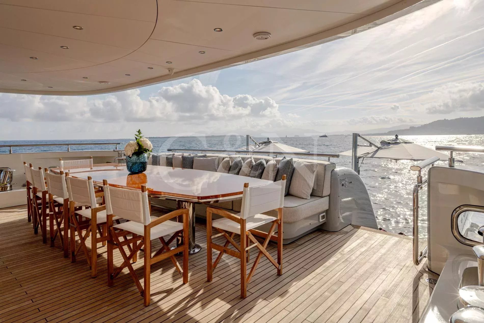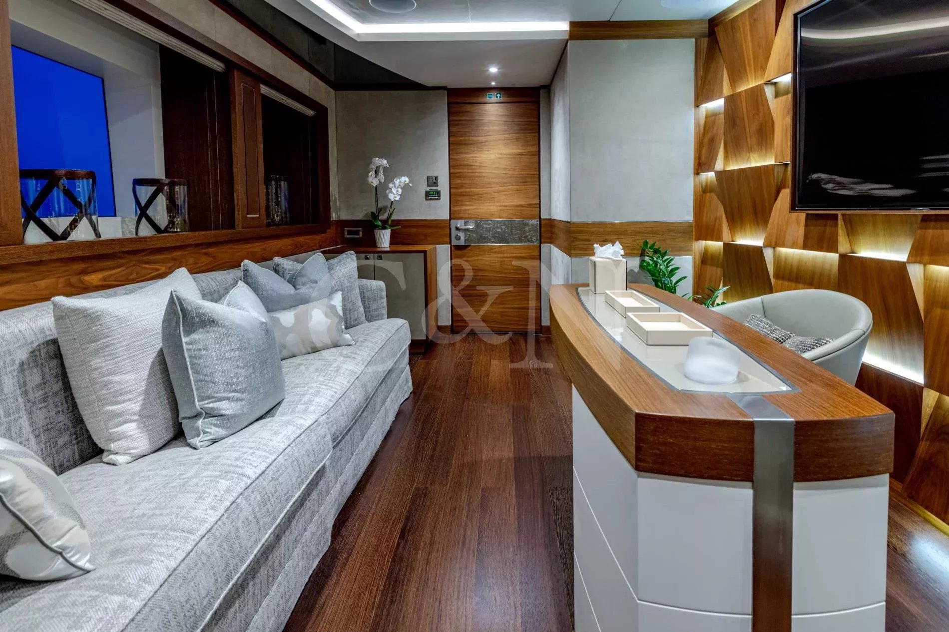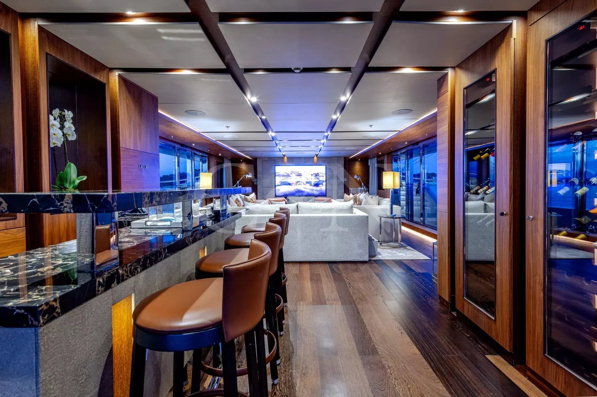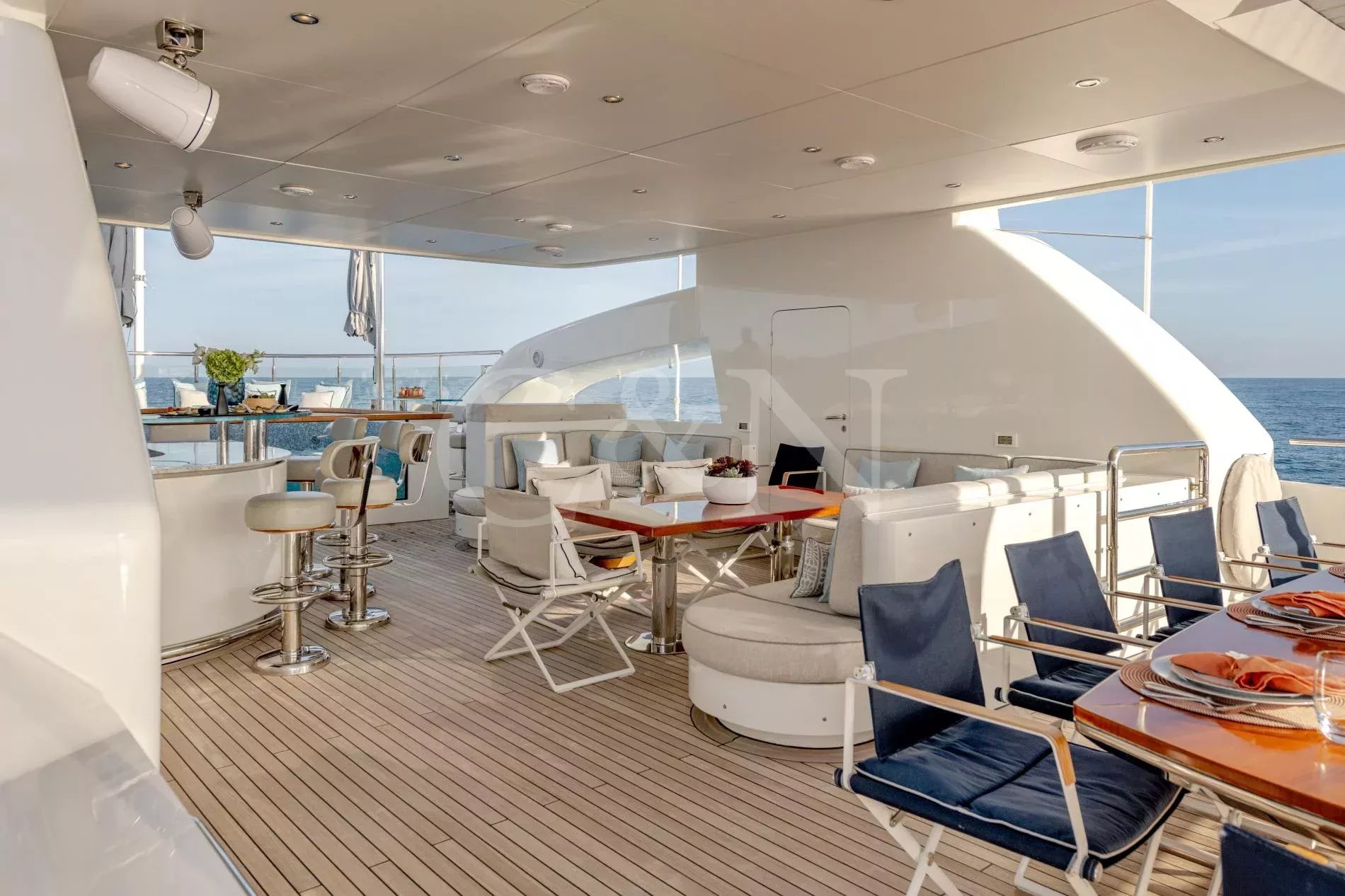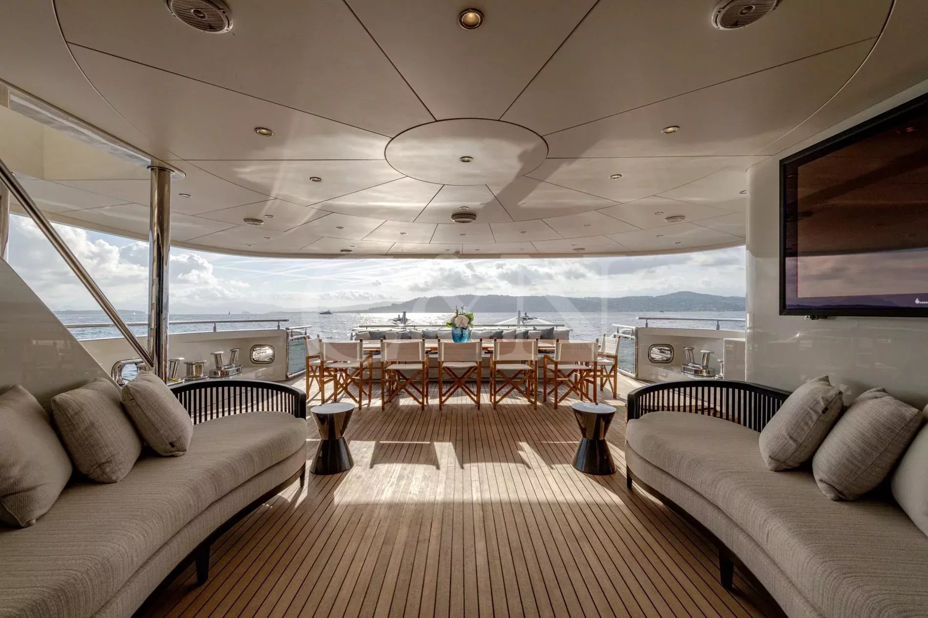 Quasar is a 46.8m Bilgin Yachts superyacht, brand new to the charter market. Quasar was launched in 2016 and specifically designed for multiple family use with flexible accommodation and fantastic entertainment features.Quasar’s innovative layout comprises two master suites. The first suite is on the main deck and benefits from a private office. The second suite is on the lower deck, and this full beam cabin also enjoys a private lounge. In total, Quasar has accommodation for up to 12 guests in 6 cabins.The main deck hosts a comfortable lounge with cinema screen for relaxing, whilst the upper saloon is more of an entertainment space with a seamless connection to the aft deck and outdoor dining area. The aft deck furnishings are modular and can be rearranged to suit – the crew can arrange the deck as a dedicated lounge area for younger guests. With unobstructed view from fore to aft, you can recline on a sunbed and still keep an eye on the large TV in the saloon.The sundeck is the ultimate socialising space with a top-spec entertainment system. A glass-fronted spa pool is situated forward, surrounded by sunbeds, while a shaded bar and lounge area is located amidships with an al fresco dining table and sun loungers aft.There is a well-appointed beach club aboard this luxury tri-deck motor yacht and Quasar carries a great selection of water toys.
