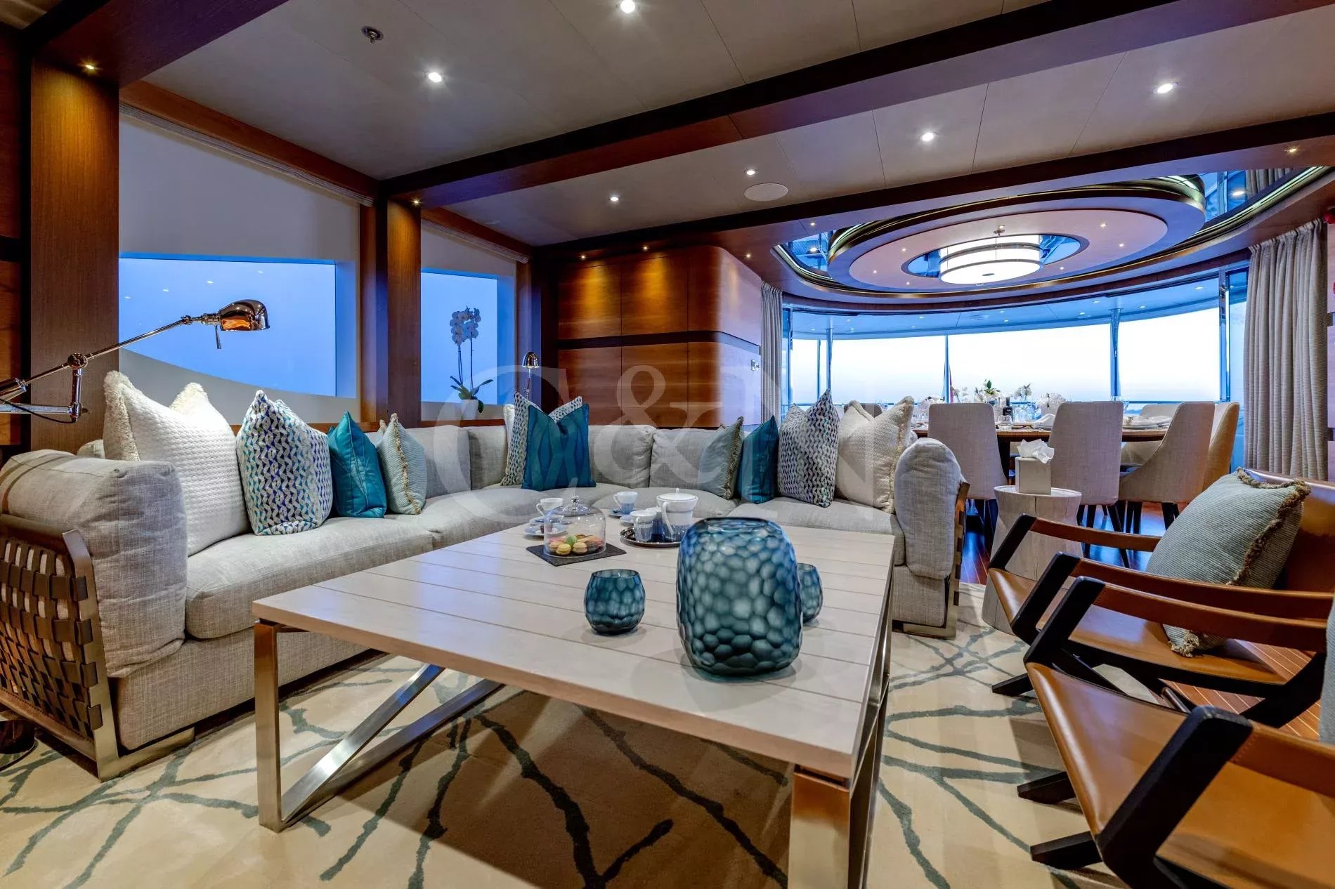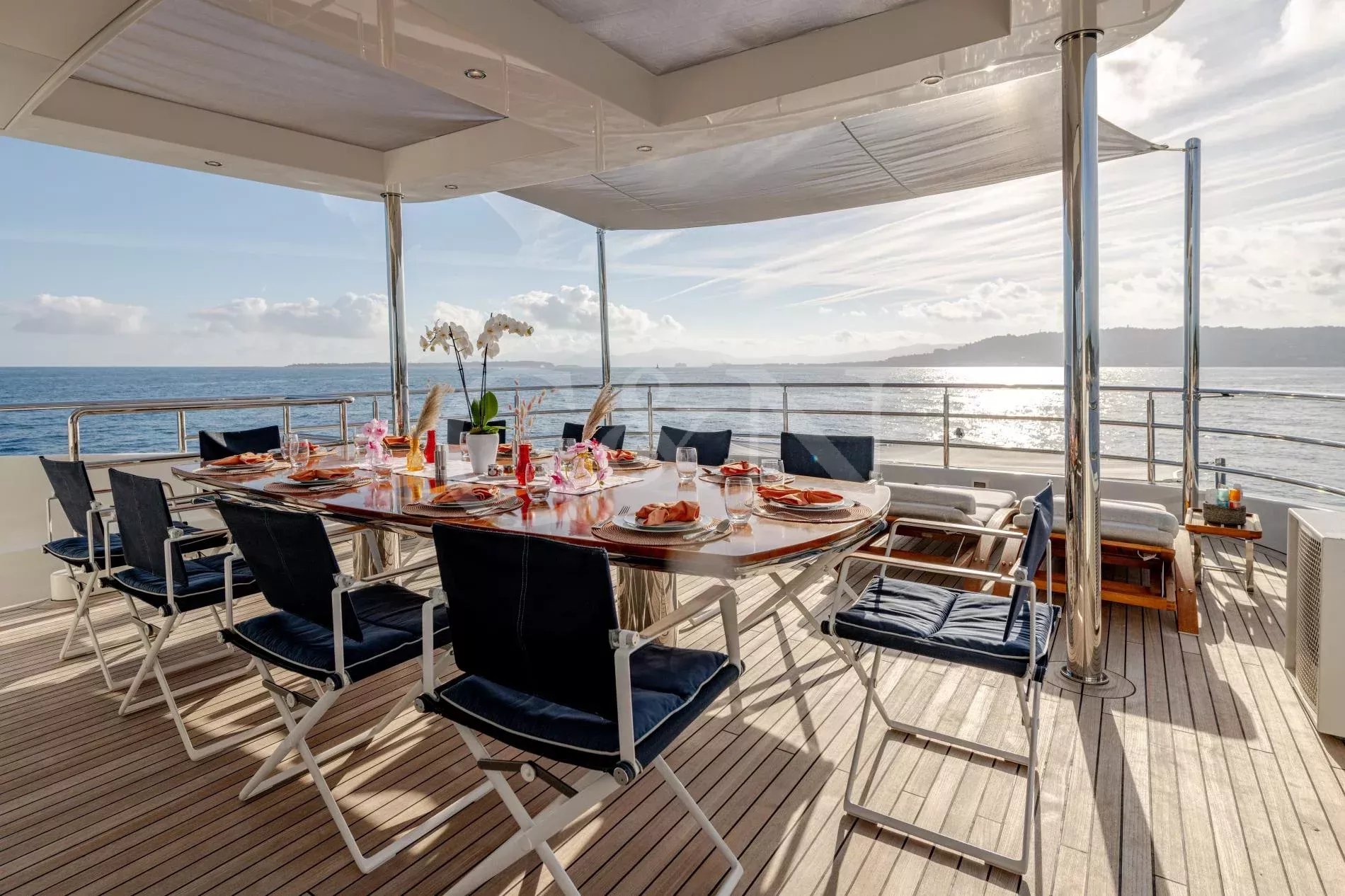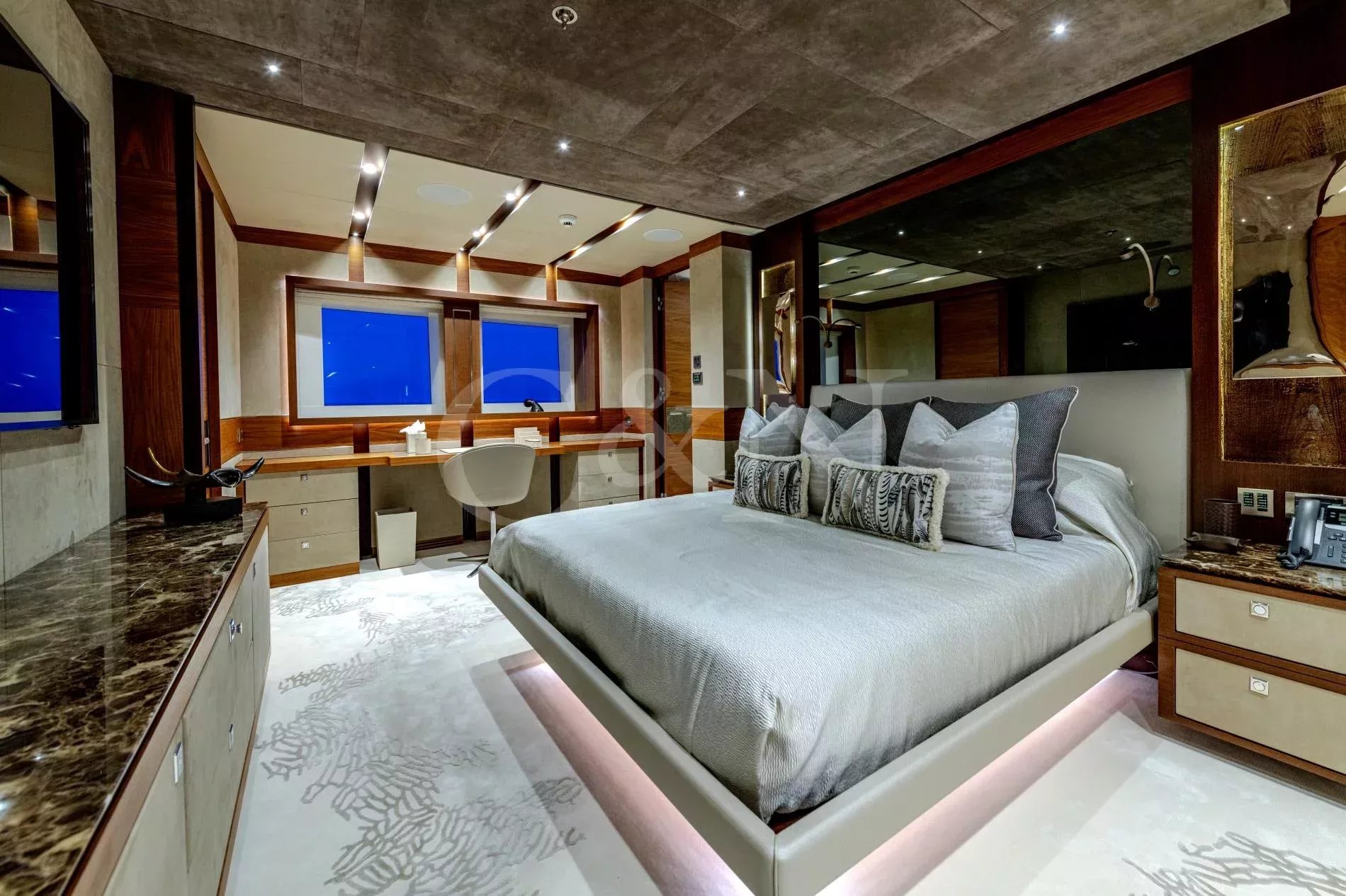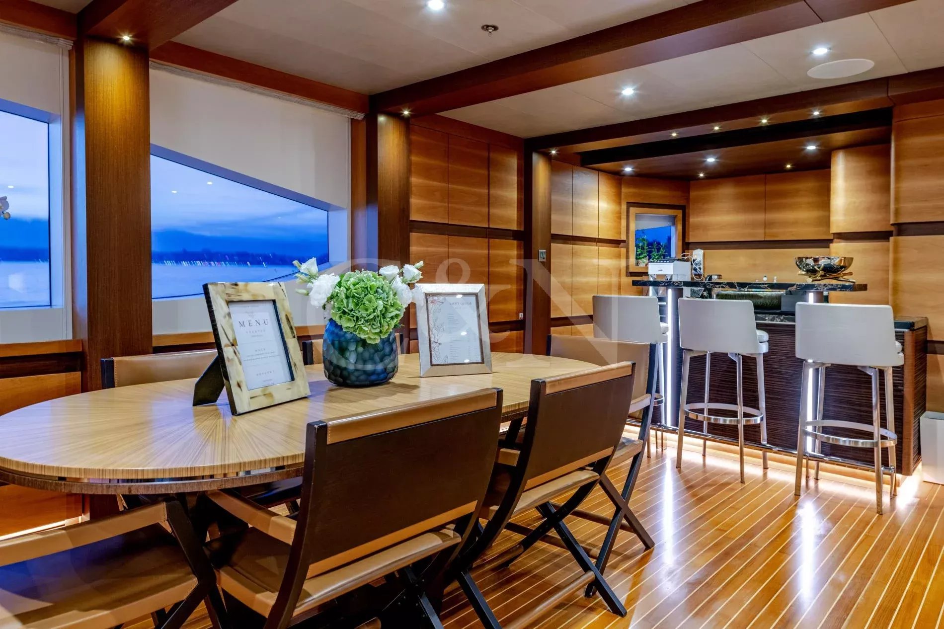 Quasar is a 46.8m Bilgin Yachts superyacht, brand new to the charter market. Quasar was launched in 2016 and specifically designed for multiple family use with flexible accommodation and fantastic entertainment features.Quasar’s innovative layout comprises two master suites. The first suite is on the main deck and benefits from a private office. The second suite is on the lower deck, and this full beam cabin also enjoys a private lounge. In total, Quasar has accommodation for up to 12 guests in 6 cabins.The main deck hosts a comfortable lounge with cinema screen for relaxing, whilst the upper saloon is more of an entertainment space with a seamless connection to the aft deck and outdoor dining area. The aft deck furnishings are modular and can be rearranged to suit – the crew can arrange the deck as a dedicated lounge area for younger guests. With unobstructed view from fore to aft, you can recline on a sunbed and still keep an eye on the large TV in the saloon.The sundeck is the ultimate socialising space with a top-spec entertainment system. A glass-fronted spa pool is situated forward, surrounded by sunbeds, while a shaded bar and lounge area is located amidships with an al fresco dining table and sun loungers aft.There is a well-appointed beach club aboard this luxury tri-deck motor yacht and Quasar carries a great selection of water toys.