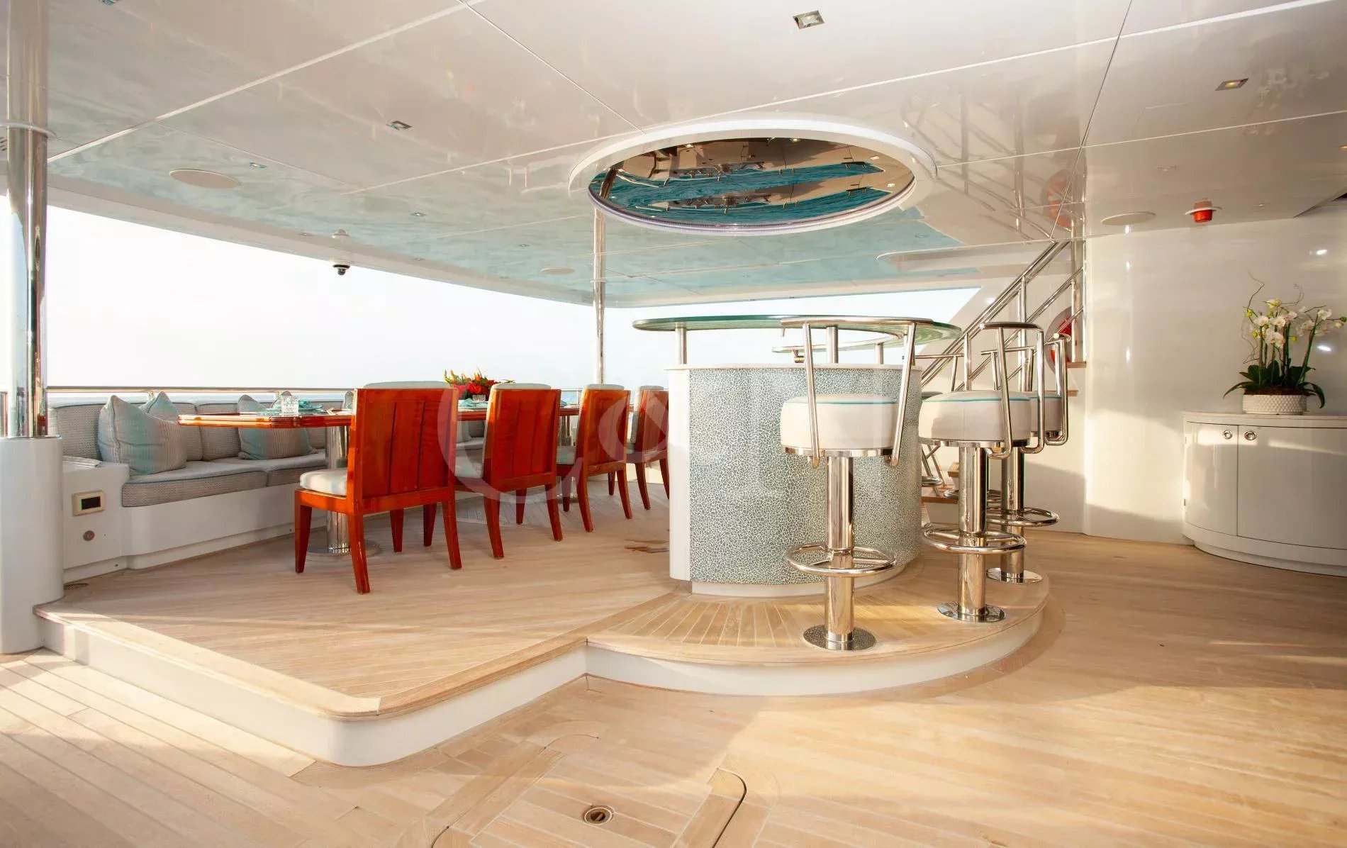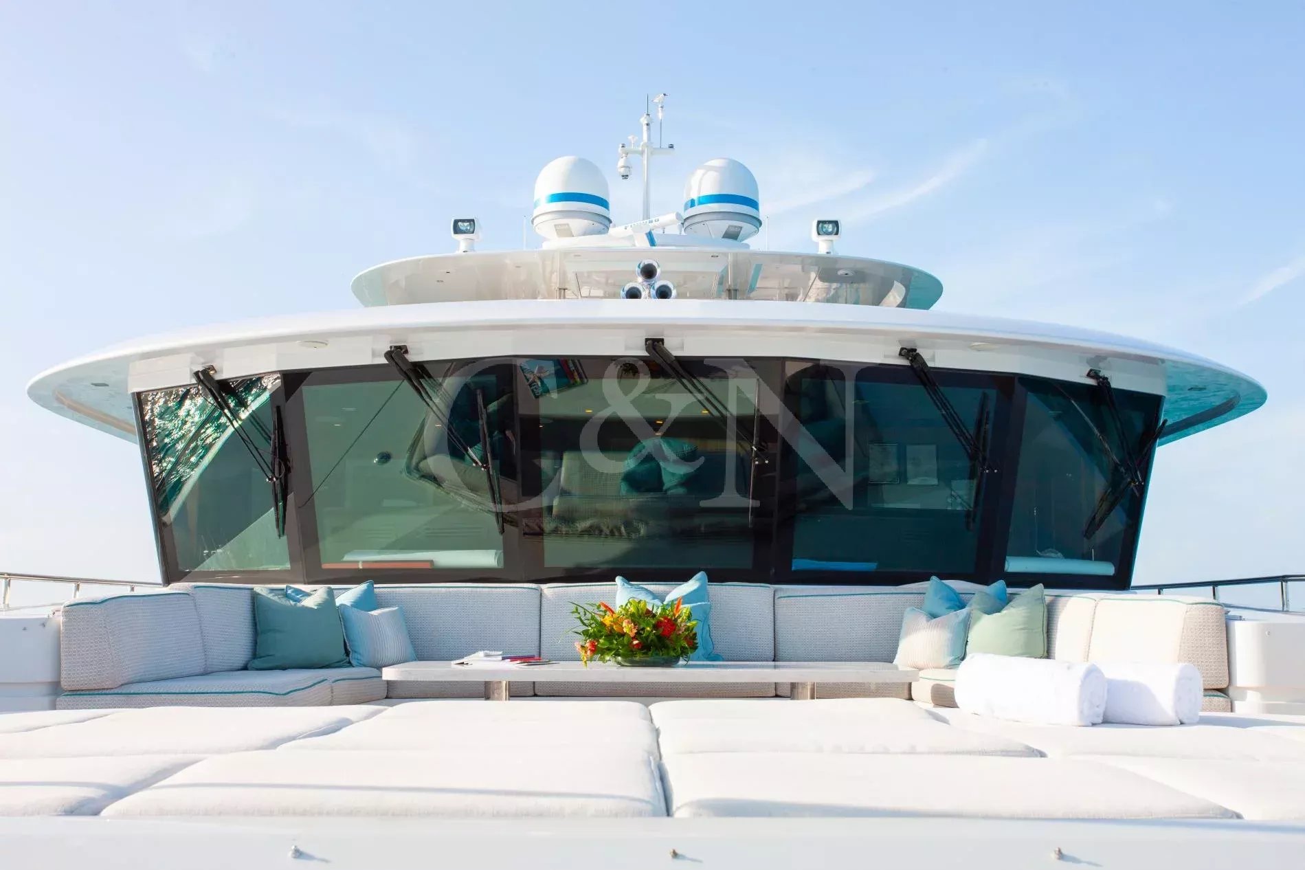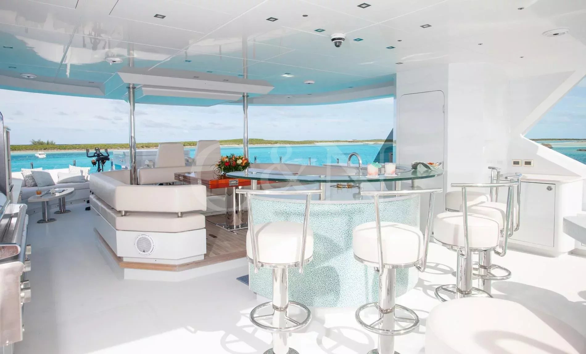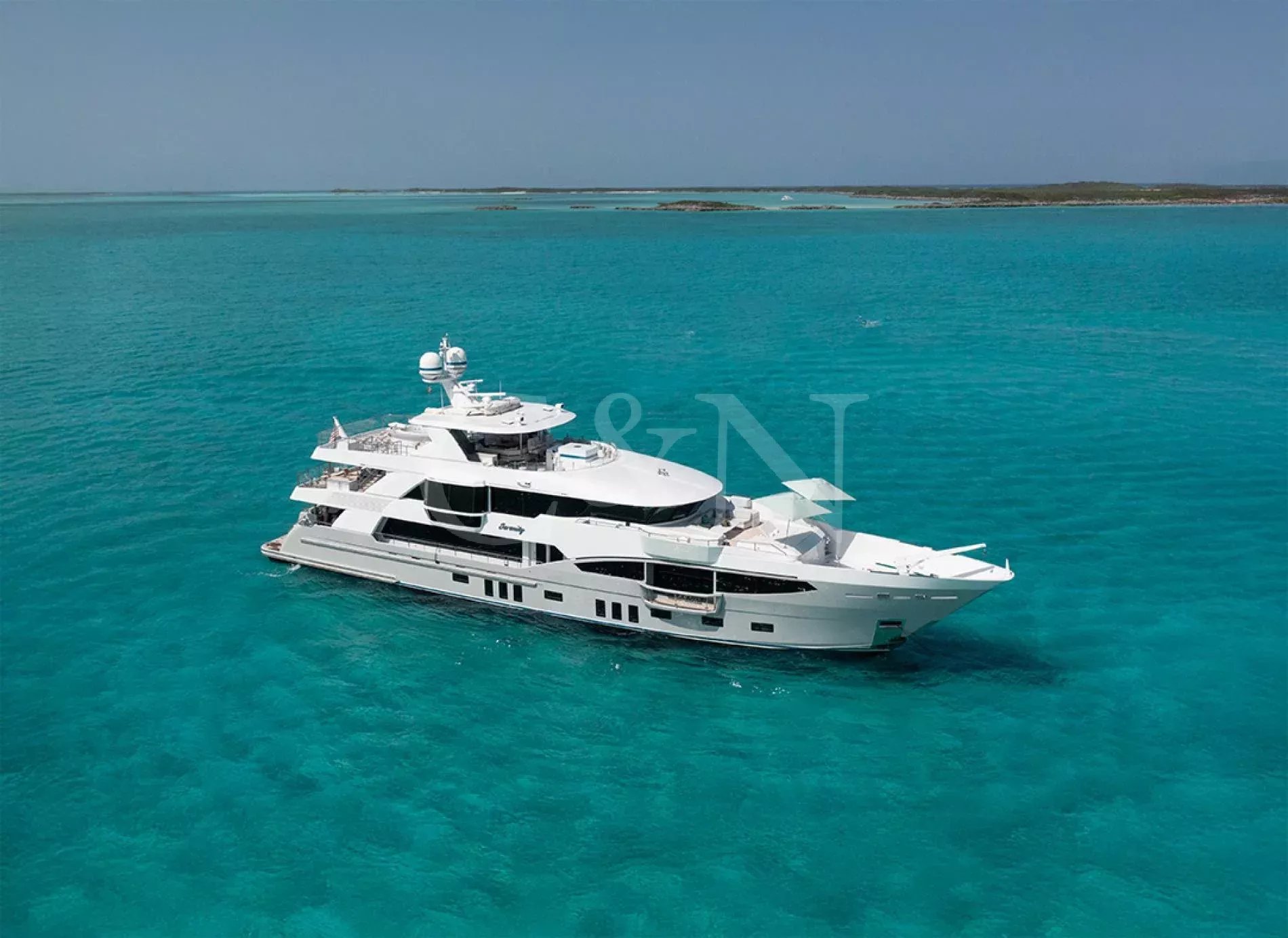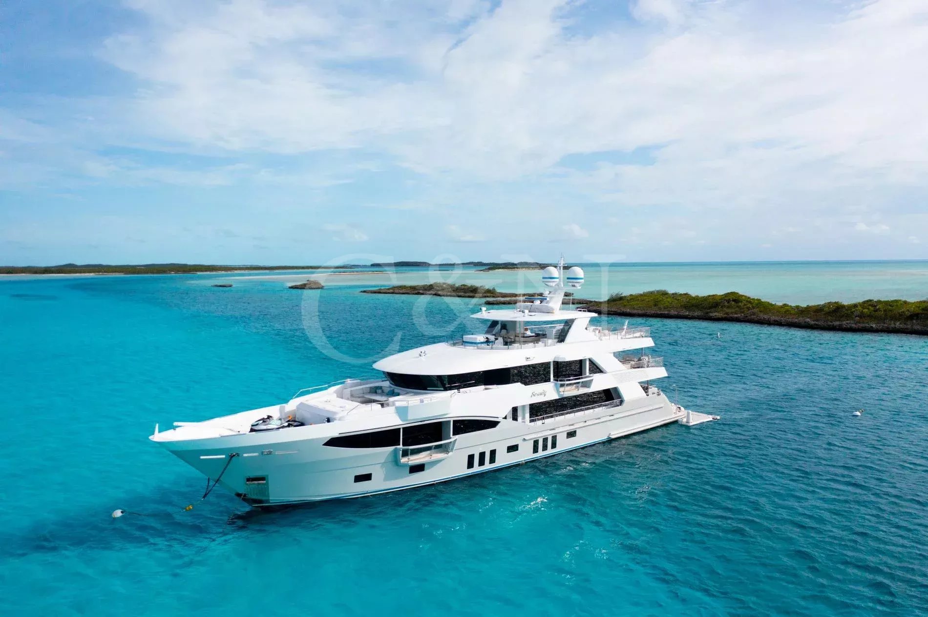 Step aboard Serenity for a luxurious charter experience that prioritizes on-the-water fun and quality time with family and friends. Serenity is a 40.54m motor yacht equipped with all the amenities for a fantastic superyacht vacation.Serenity has accommodation for 12 guests in a cabin arrangement that comprises five doubles and one which is convertible between twin or double setup. The master suite resides on the main deck and benefits from his-and-hers ensuites as well as two private balconies, and there’s a generously sized VIP suite on the upper deck. All cabins have independent climate control and an audiovisual entertainment system.Sporting new interior furnishings and artwork following a 2023 refit, Serenity’s interior offers versatile spaces for relaxing and socialising with ambient lighting able to set any tone. The main saloon is open plan to the formal dining table, and doors lead to an inviting aft deck with statement bar counter. Ascending to the deck above, a second skylounge features a large L-shape sofa, coffee table and cocktail bar. On the sun deck, a Jacuzzi with waterfall feature takes pride of place and the space aft of this can be flooded and turned into a safe splash pool for young children. The sun deck also plays host to another bar counter and a dining area, which is situated beneath the fixed roof shade.Further sunbathing space is found on the bow, where an expanse of cushioned sun pads awaits.Serenity carries a huge array of water toys and accessories, and the selection offers something to entertain guests of all ages. There are Sea Doos and Sea Scooters, two SeaBobs, kayaks, snorkelling sets, wakeboards and body boards, various towable inflatables, fishing tackle, and a waterslide.A 34ft Custom Edge Water tender facilitates high-speed transfers between superyacht and shore, and day-long excursions along the coast. Other onboard amenities include high-speed Starlink internet, a selection of exercise equipment, and even a putting green.At Serenity’s stern, the swim platform incorporates a hydraulic section that can be raised to form a diving platform or lowered into the water for easier access to the ocean as required.Serenity has a 17-knot top speed and cruises comfortably at 12 knots. Serenity operates with a crew of seven.