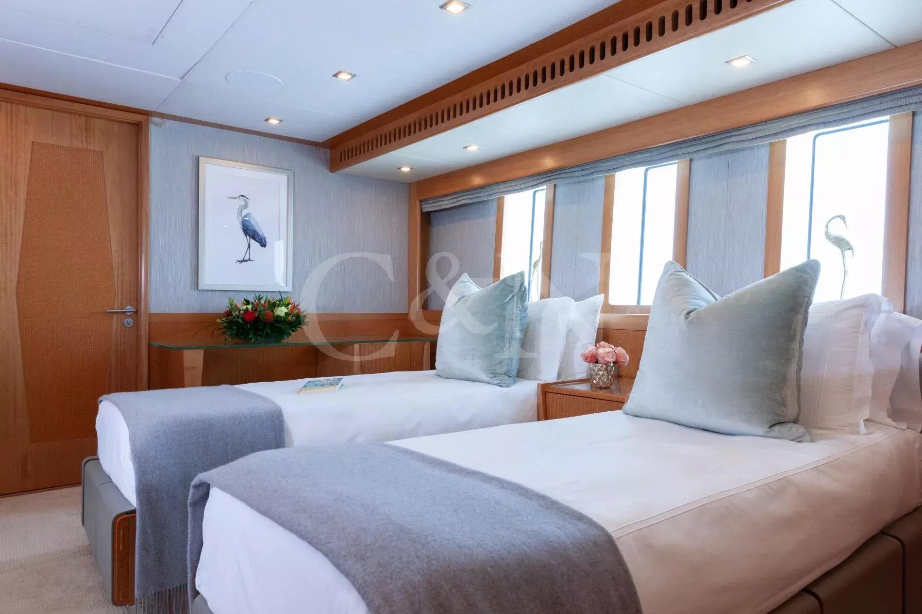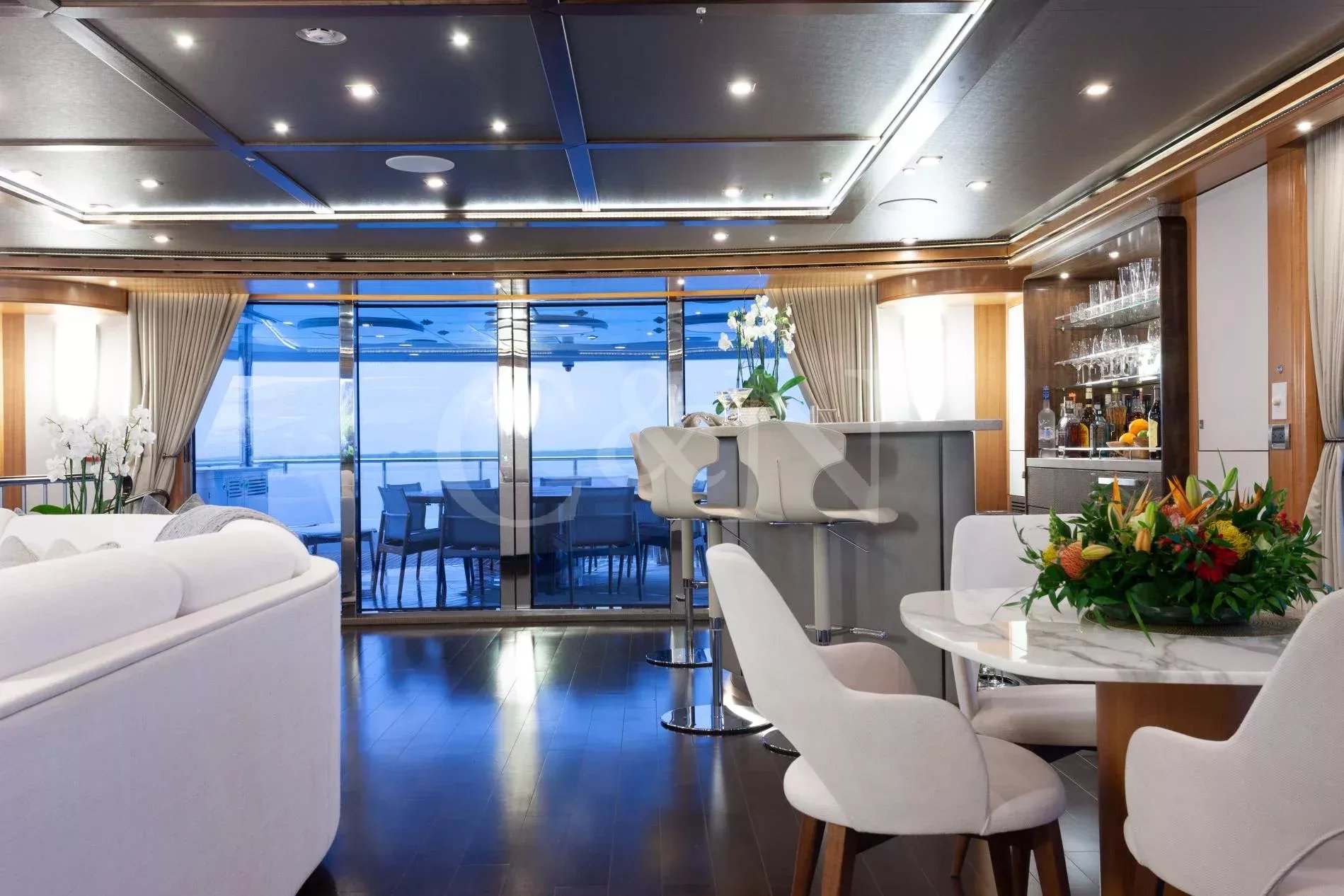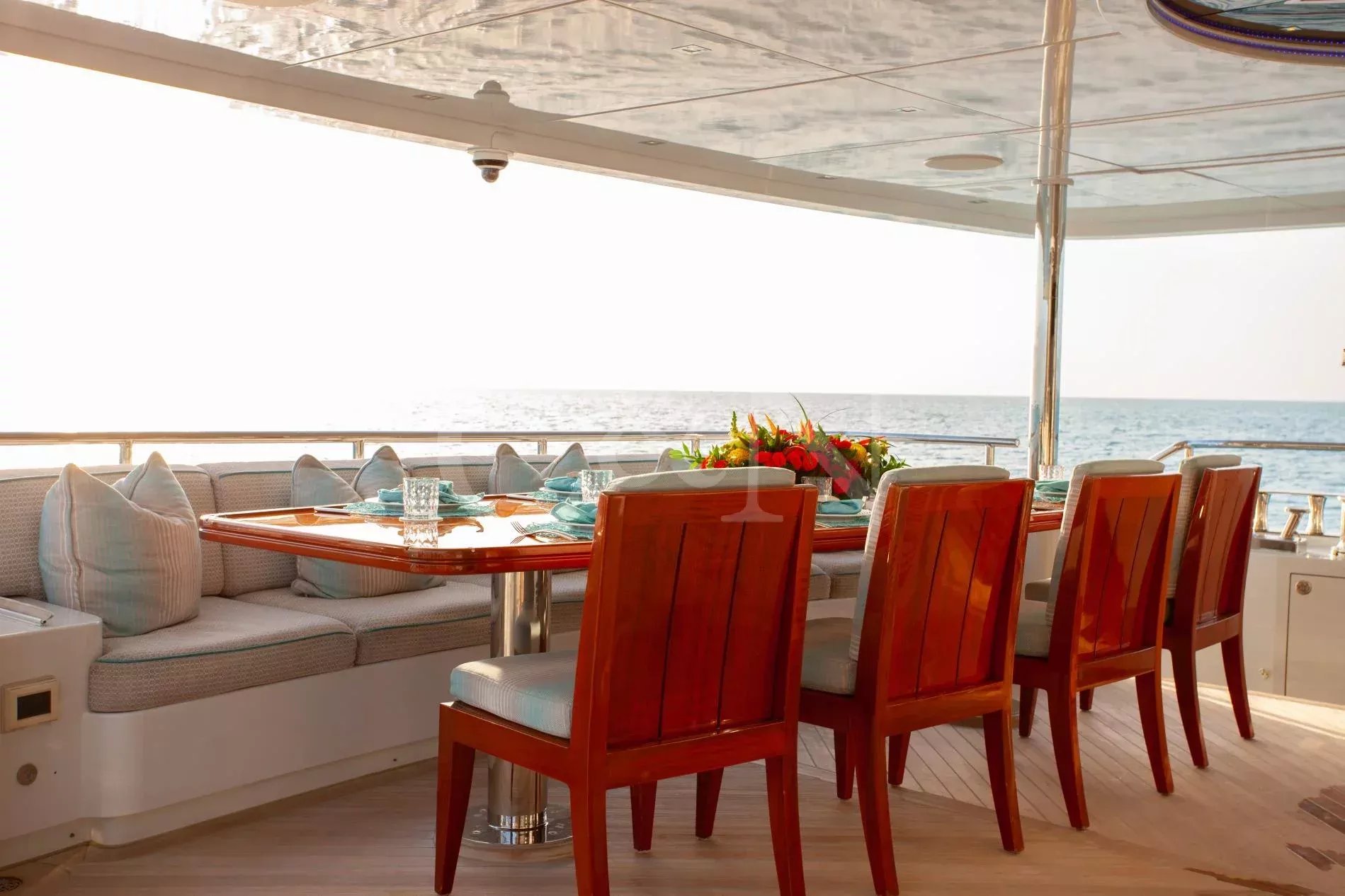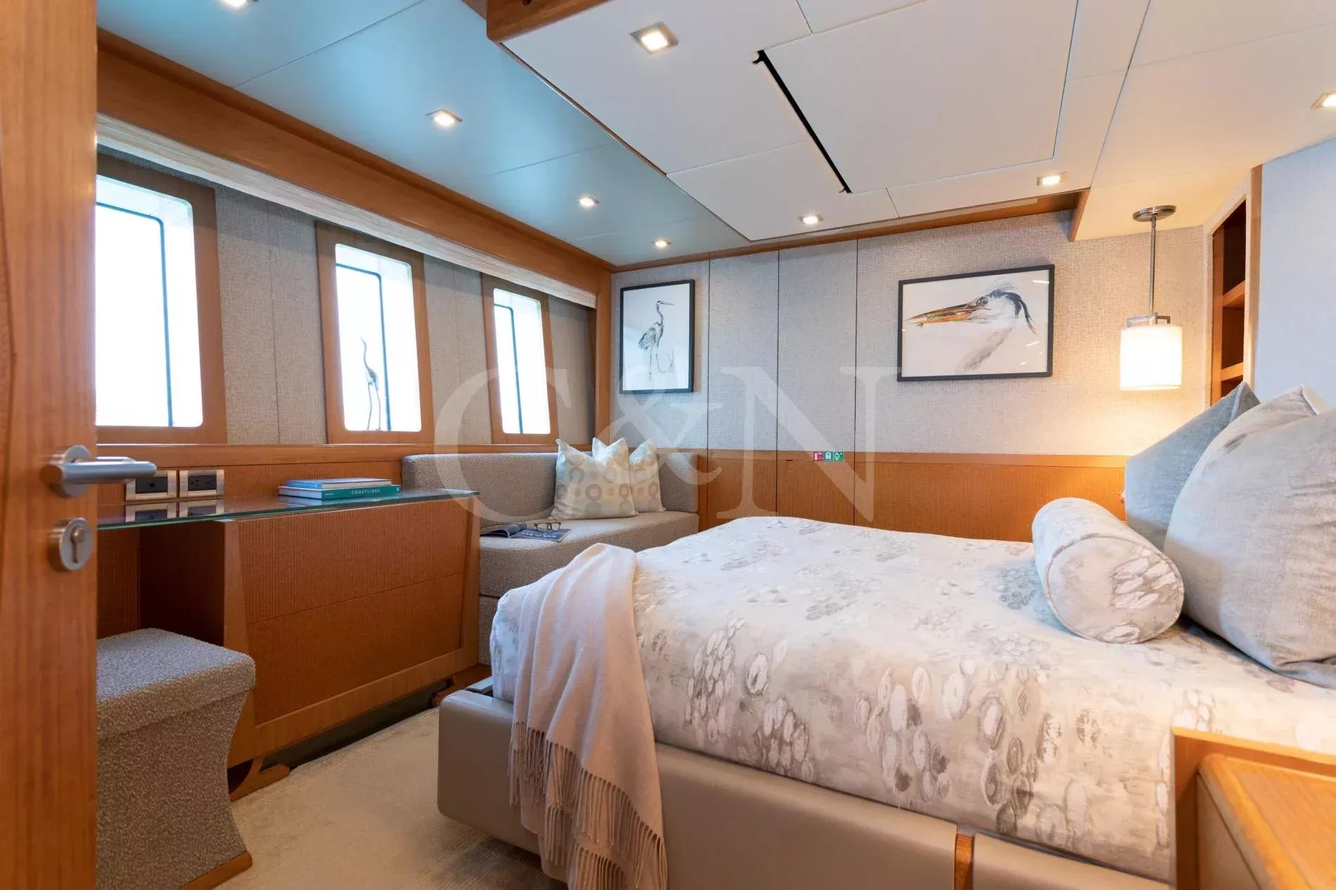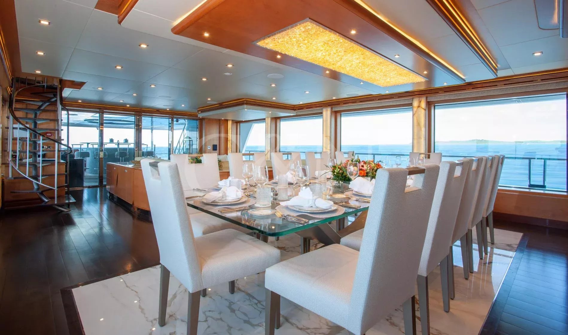 Step aboard Serenity for a luxurious charter experience that prioritizes on-the-water fun and quality time with family and friends. Serenity is a 40.54m motor yacht equipped with all the amenities for a fantastic superyacht vacation.Serenity has accommodation for 12 guests in a cabin arrangement that comprises five doubles and one which is convertible between twin or double setup. The master suite resides on the main deck and benefits from his-and-hers ensuites as well as two private balconies, and there’s a generously sized VIP suite on the upper deck. All cabins have independent climate control and an audiovisual entertainment system.Sporting new interior furnishings and artwork following a 2023 refit, Serenity’s interior offers versatile spaces for relaxing and socialising with ambient lighting able to set any tone. The main saloon is open plan to the formal dining table, and doors lead to an inviting aft deck with statement bar counter. Ascending to the deck above, a second skylounge features a large L-shape sofa, coffee table and cocktail bar. On the sun deck, a Jacuzzi with waterfall feature takes pride of place and the space aft of this can be flooded and turned into a safe splash pool for young children. The sun deck also plays host to another bar counter and a dining area, which is situated beneath the fixed roof shade.Further sunbathing space is found on the bow, where an expanse of cushioned sun pads awaits.Serenity carries a huge array of water toys and accessories, and the selection offers something to entertain guests of all ages. There are Sea Doos and Sea Scooters, two SeaBobs, kayaks, snorkelling sets, wakeboards and body boards, various towable inflatables, fishing tackle, and a waterslide.A 34ft Custom Edge Water tender facilitates high-speed transfers between superyacht and shore, and day-long excursions along the coast. Other onboard amenities include high-speed Starlink internet, a selection of exercise equipment, and even a putting green.At Serenity’s stern, the swim platform incorporates a hydraulic section that can be raised to form a diving platform or lowered into the water for easier access to the ocean as required.Serenity has a 17-knot top speed and cruises comfortably at 12 knots. Serenity operates with a crew of seven.