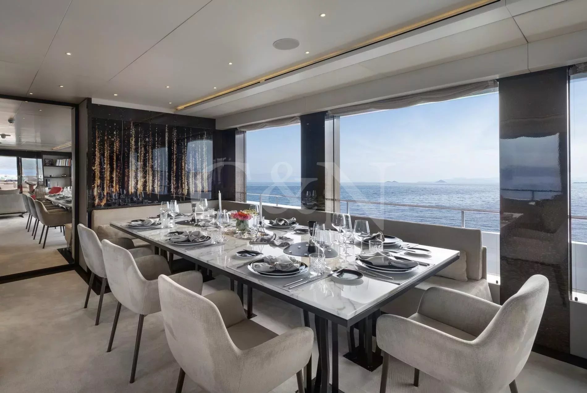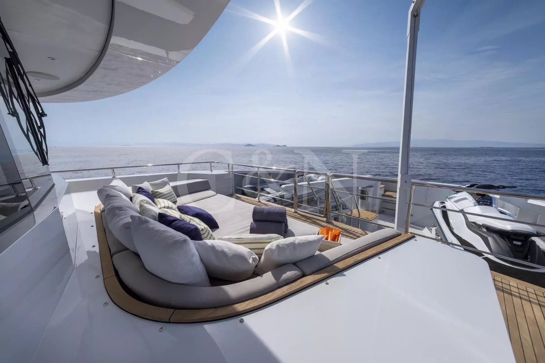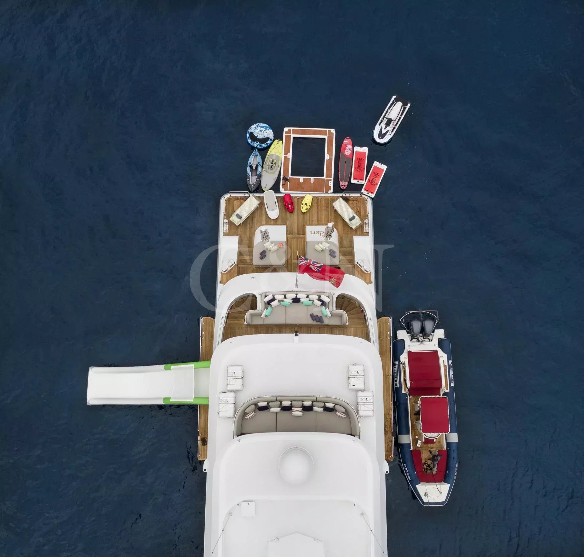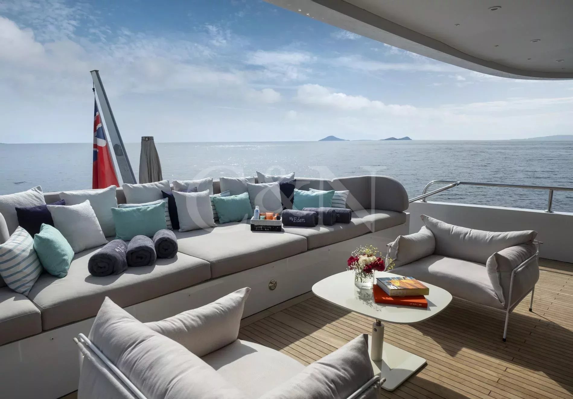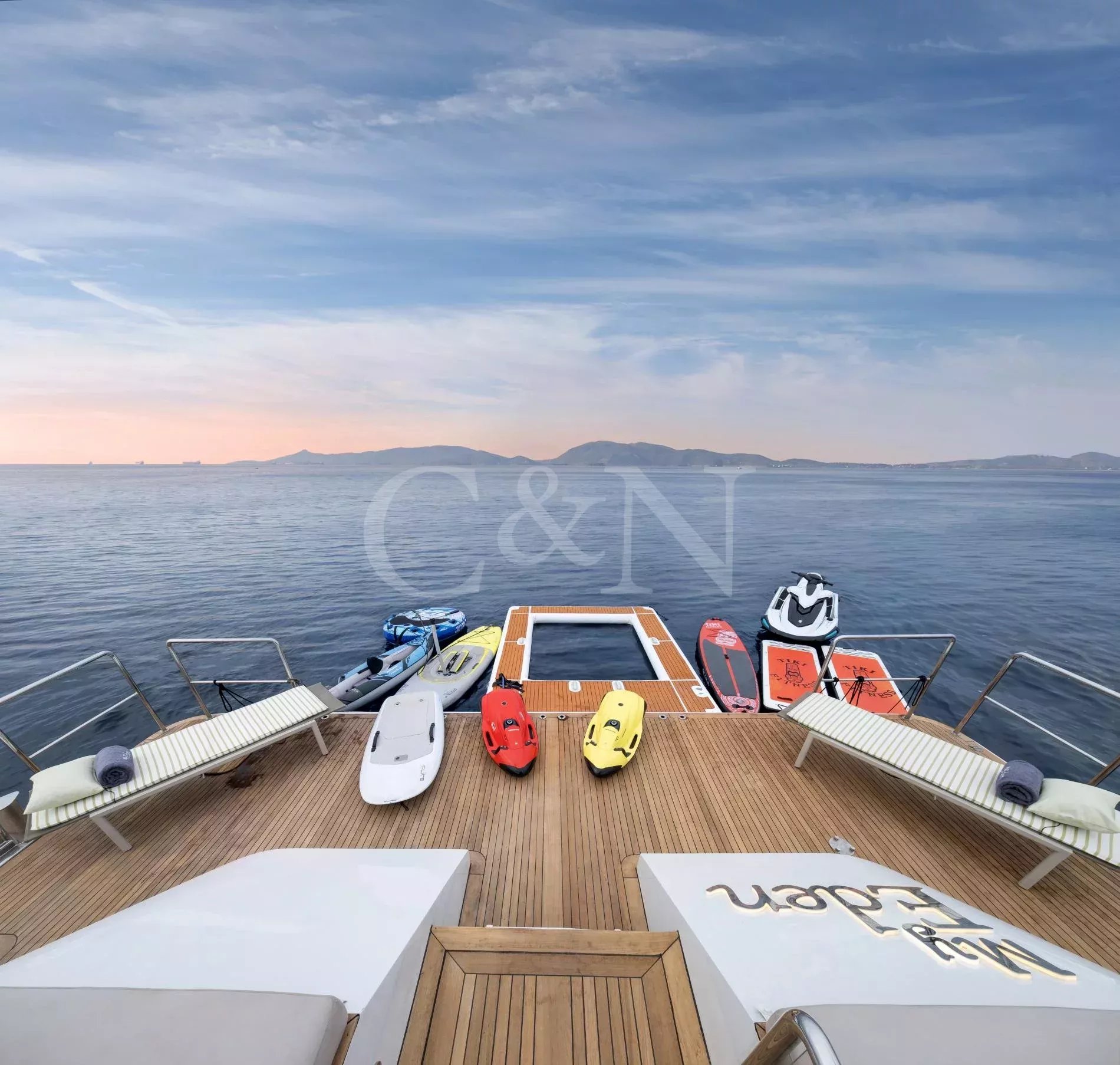 Step aboard My Eden, a stunning 45.42-metre motor yacht built by the renowned Greek shipyard Golden Yachts. Designed with elegance and comfort in mind, My Eden features exquisite interior styling by Ira Petromanolaki - Yacht Design, creating an atmosphere of sophistication and tranquillity.Accommodating up to 12 guests in six luxurious cabins, My Eden offers a platform for fun, led run by a highly experienced Captain and crew. Eden is a gateway to an unforgettable charter, whether guests seek adventure, relaxation, or a seamless blend of both.The interior of My Eden is a sanctuary of style and comfort. Her main salon is a modern space where dining and socialising take centre stage, seamlessly blending sophistication and warmth and decorated with a complementary combination of soft, light colours and marble.Large, floor-to-ceiling windows line the perimeter of the main salon and open up the connection to the water. A luxurious seating area provides an inviting zen retreat for guests, while the interior dining setup is perfect for cosy evening meals. Exterior: Ultimate Outdoor LivingMy Eden is a platform for adventure and fun. The yacht’s expansive deck spaces are perfect for lounging in the sun, enjoying alfresco dining, or simply taking in breath taking ocean views.On the upper deck, a Jacuzzi offers elevated and uninterrupted ocean views, the perfect spot to unwind and relax. For fitness enthusiasts, the main deck can transform into a fully equipped gym, complete with weights, TRX bands, Pilates mats, and a treadmill.My Eden’s large aft deck is a highlight, offering seamless access to the water and a great space to set up her various water toys. A large window connects the spacious aft deck to the galley, allowing for extra interaction between guests and crew.With accommodation for up to 12 guests in six beautifully appointed and thoughtfully designed cabins, My Eden offers unparalleled comfort and flexibility. The master suite features panoramic views, a private exterior deck, and a luxurious hot tub, creating a true oasis at sea.The VIP Suite includes a comfortable double bed and an additional pullman berth for added versatility. Two spacious and refined double cabins provide elegant sleeping arrangements, while two twin cabins can be easily converted into double beds to suit the specific needs of the charter clients.My Eden is fully equipped to deliver an unforgettable experience on the water, with an extensive collection of toys and amenities for every type of guest:Chase Boat: Pirelli 9m with twin 225hp Yamaha engines for coastal exploration.Water Toys: 1 Flite board2 Sea Bobs F52 Stand-up paddleboards2 Paddleboard steppers3 Canoe kayaks3 WakeboardsWater skis equipment2 Tubes and 1 sofa tubeYacht slideBrand new 1 Yamaha VX Commercial Jet SkiOnboard gym equipment for staying active at sea.
